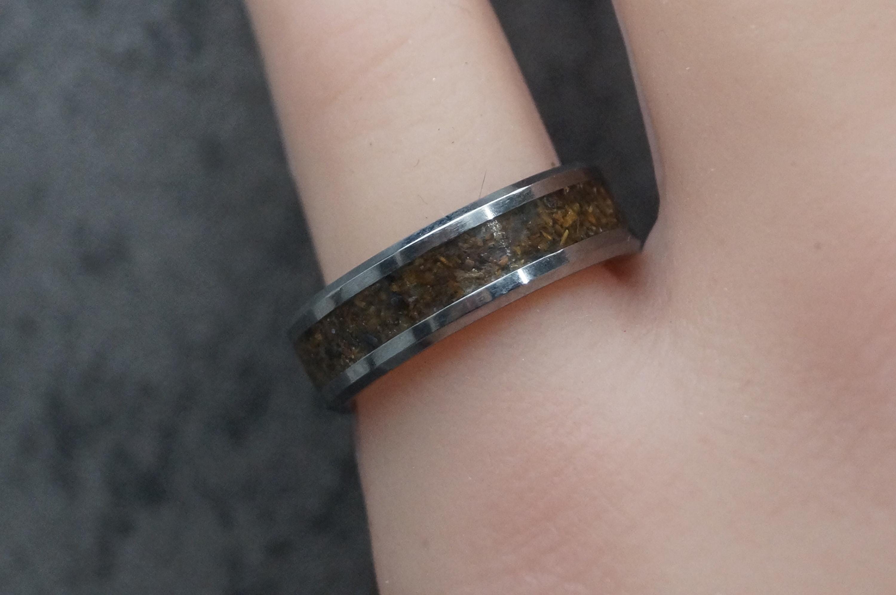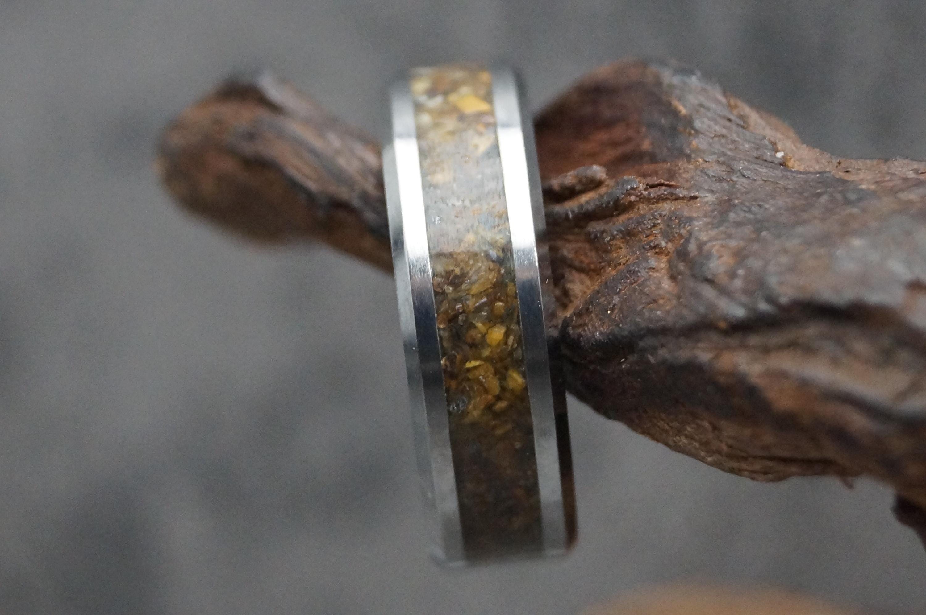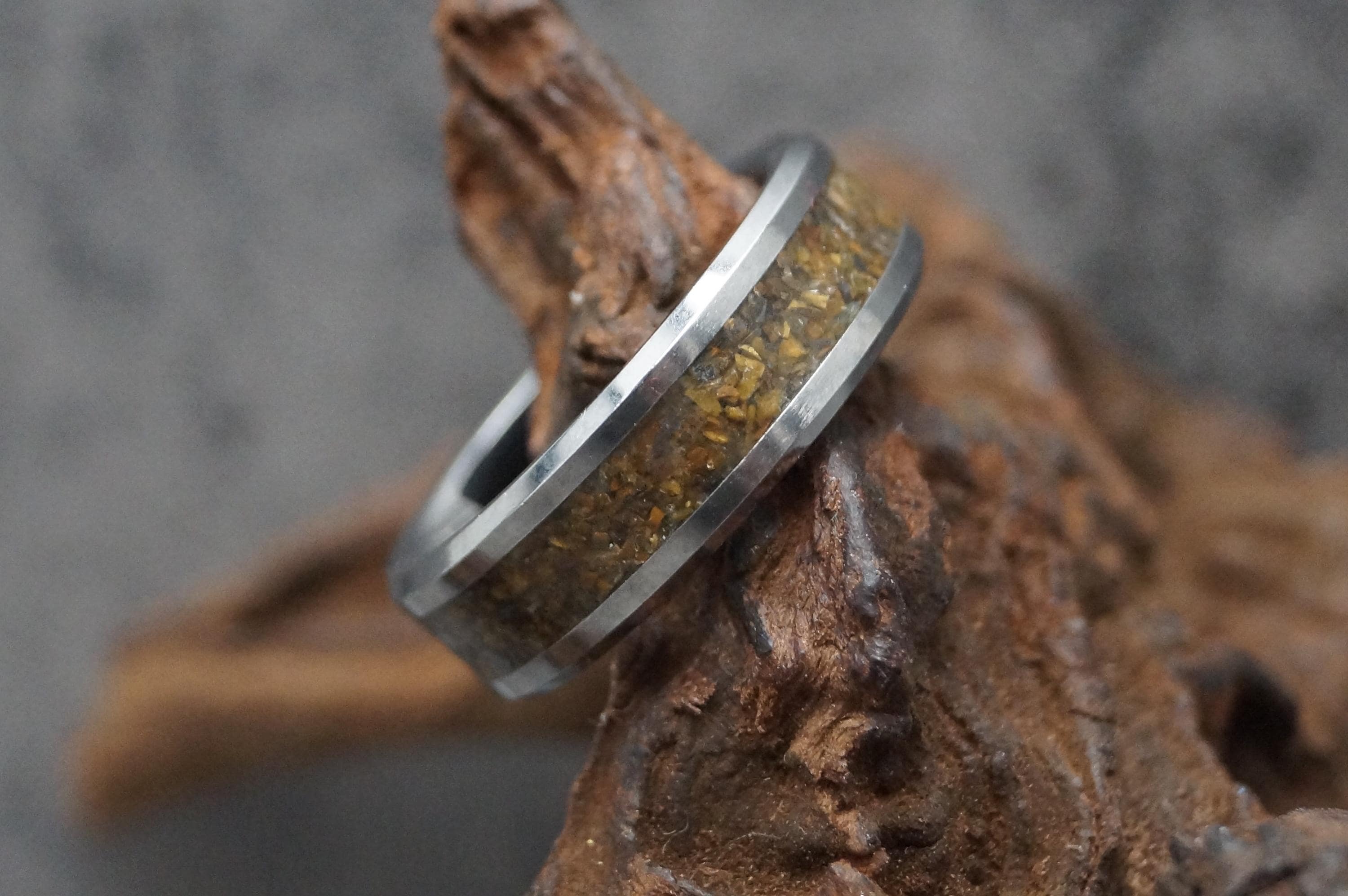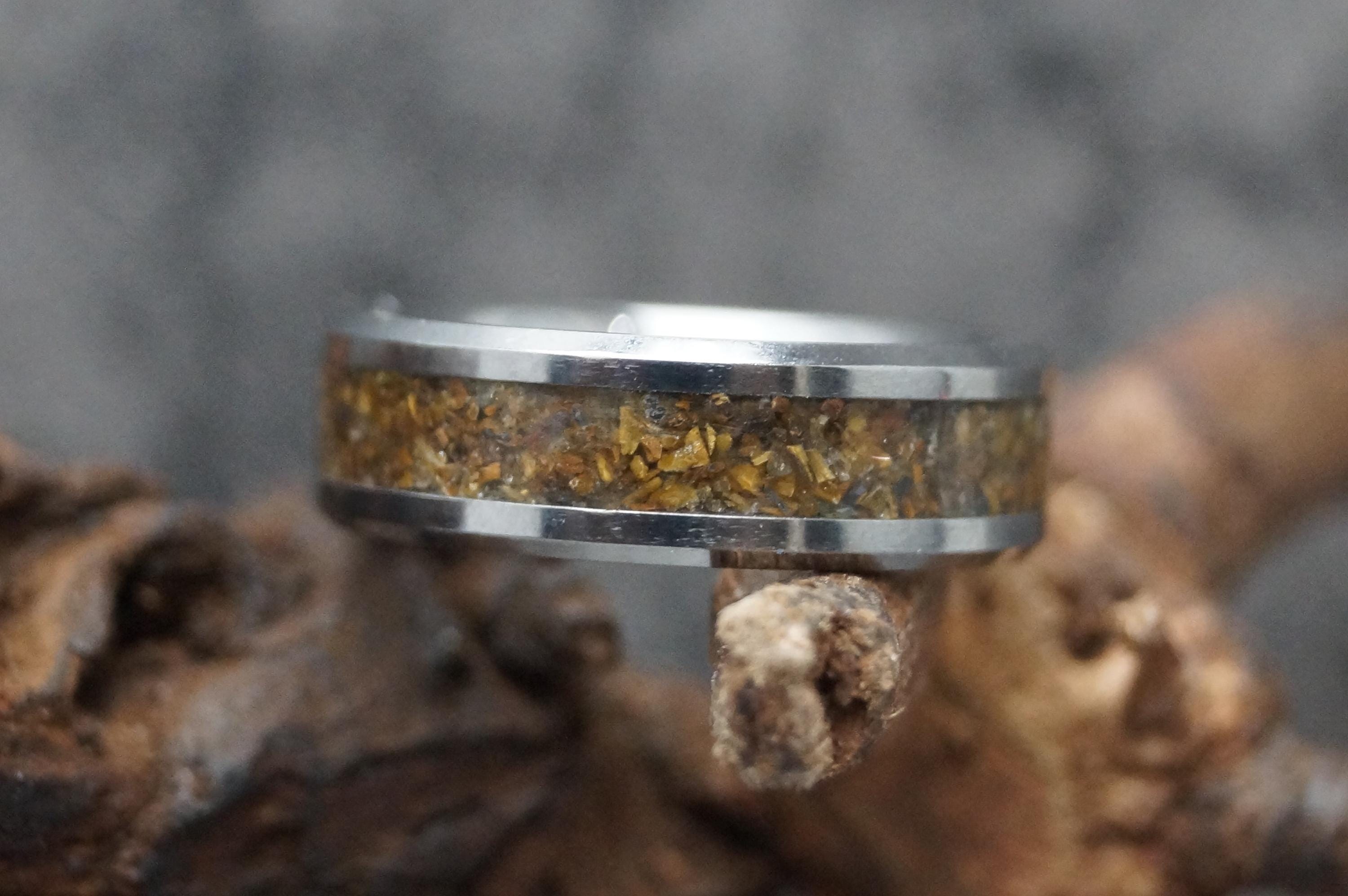 This genuine Tungsten Carbide ring inlaid with 100% Natural Golden Tiger Eye.