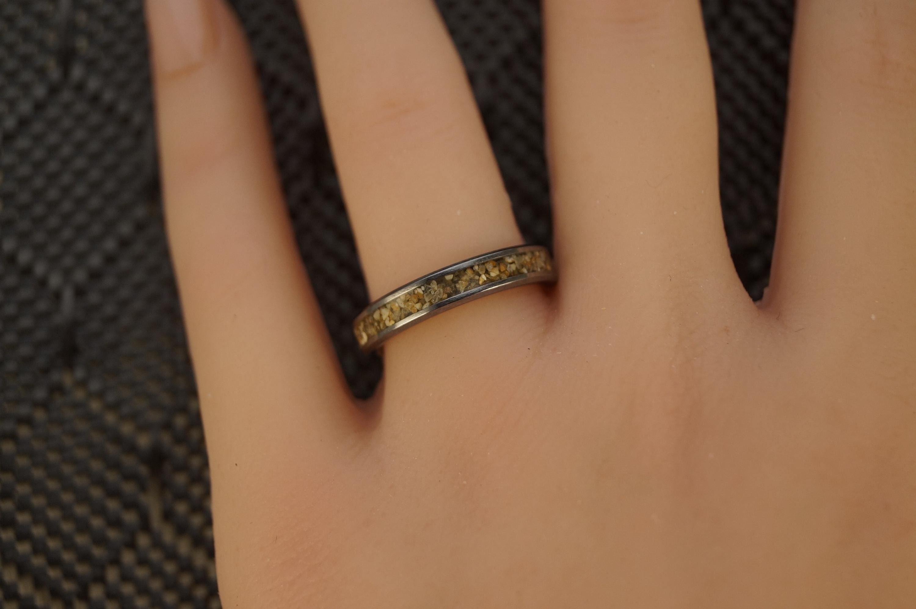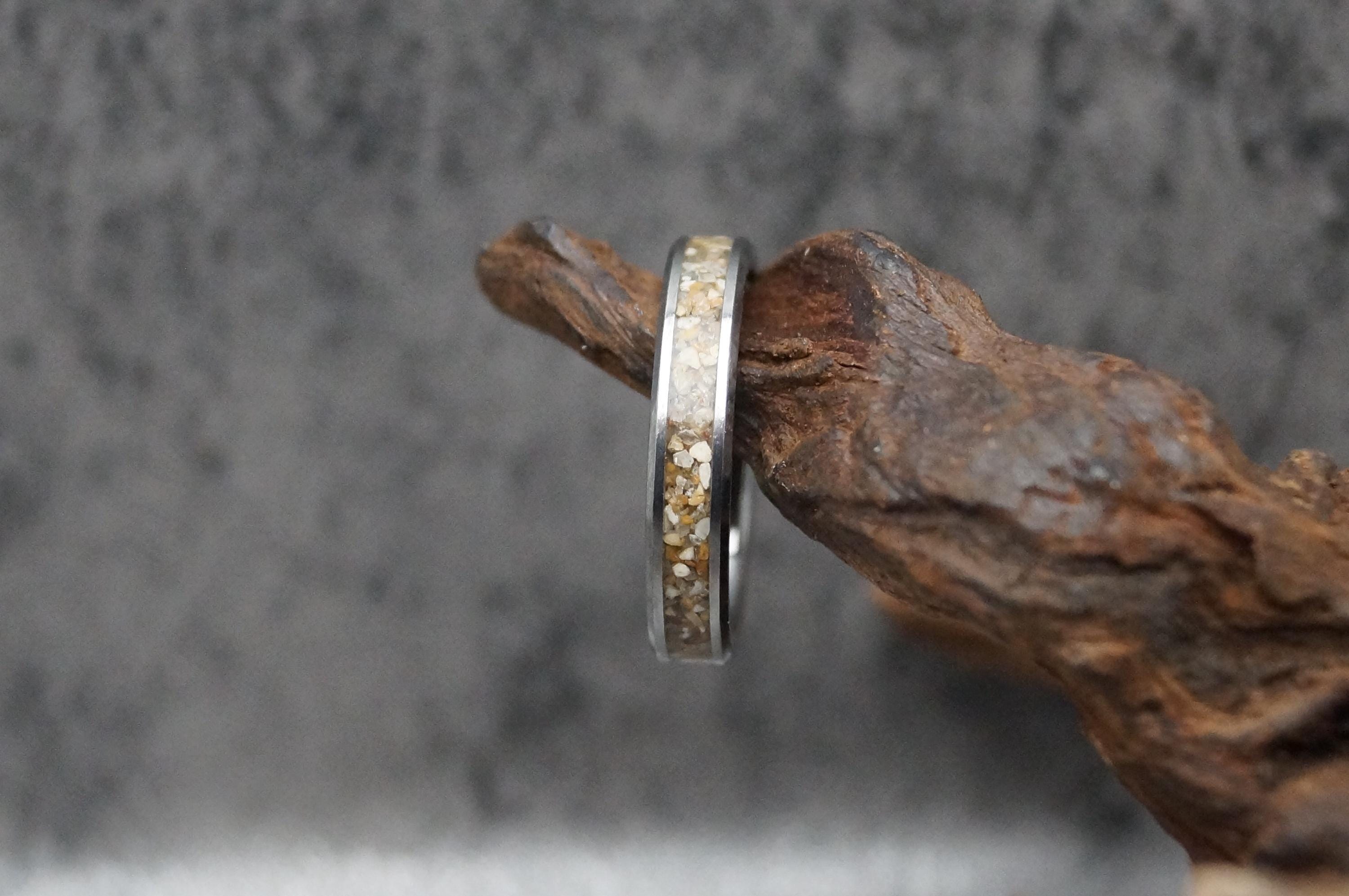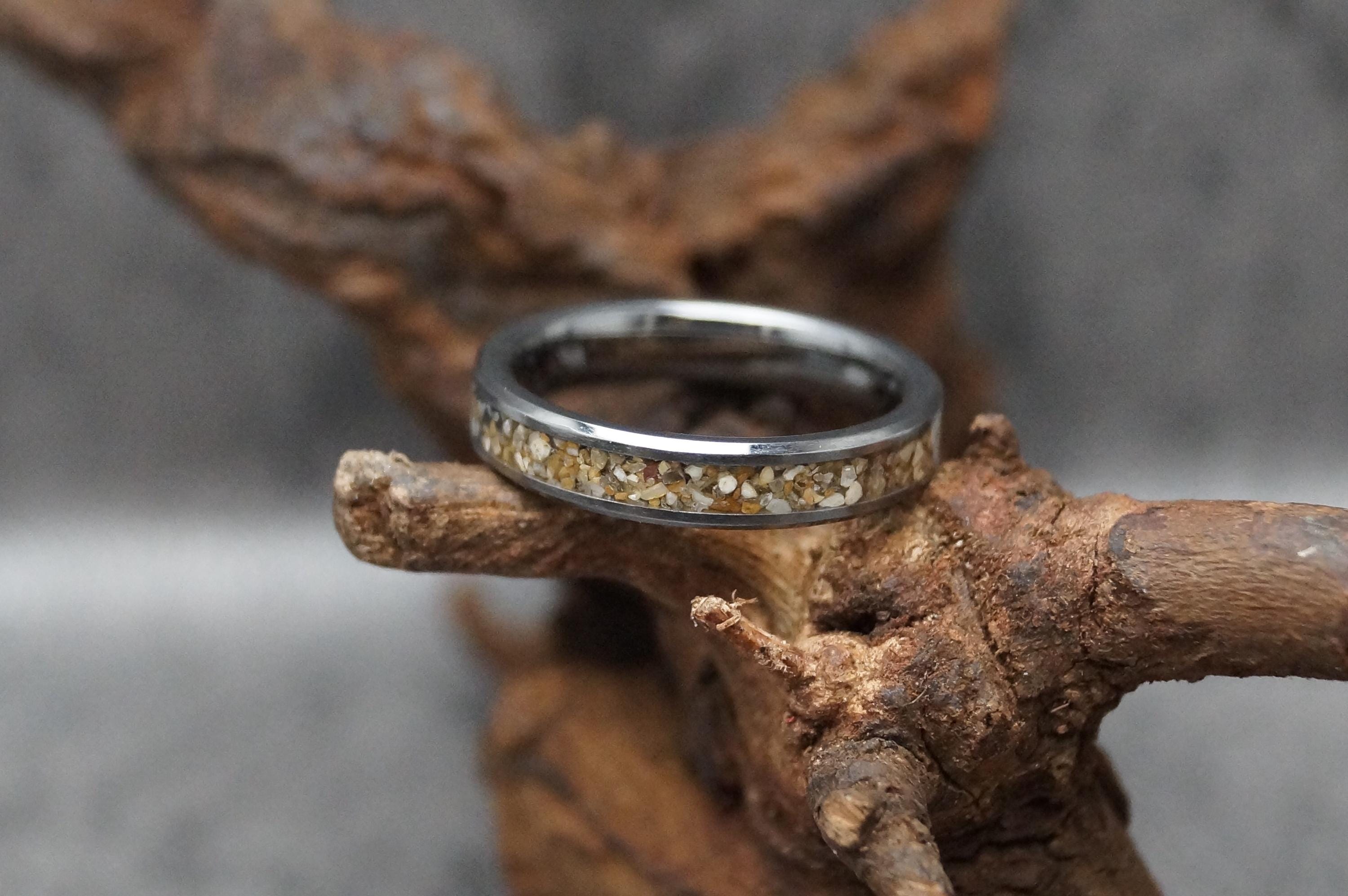 This genuine Tungsten Carbide ring inlaid with 100% Natural Beach Sand or send your own beach sand for me to make your custom beach sand ring.