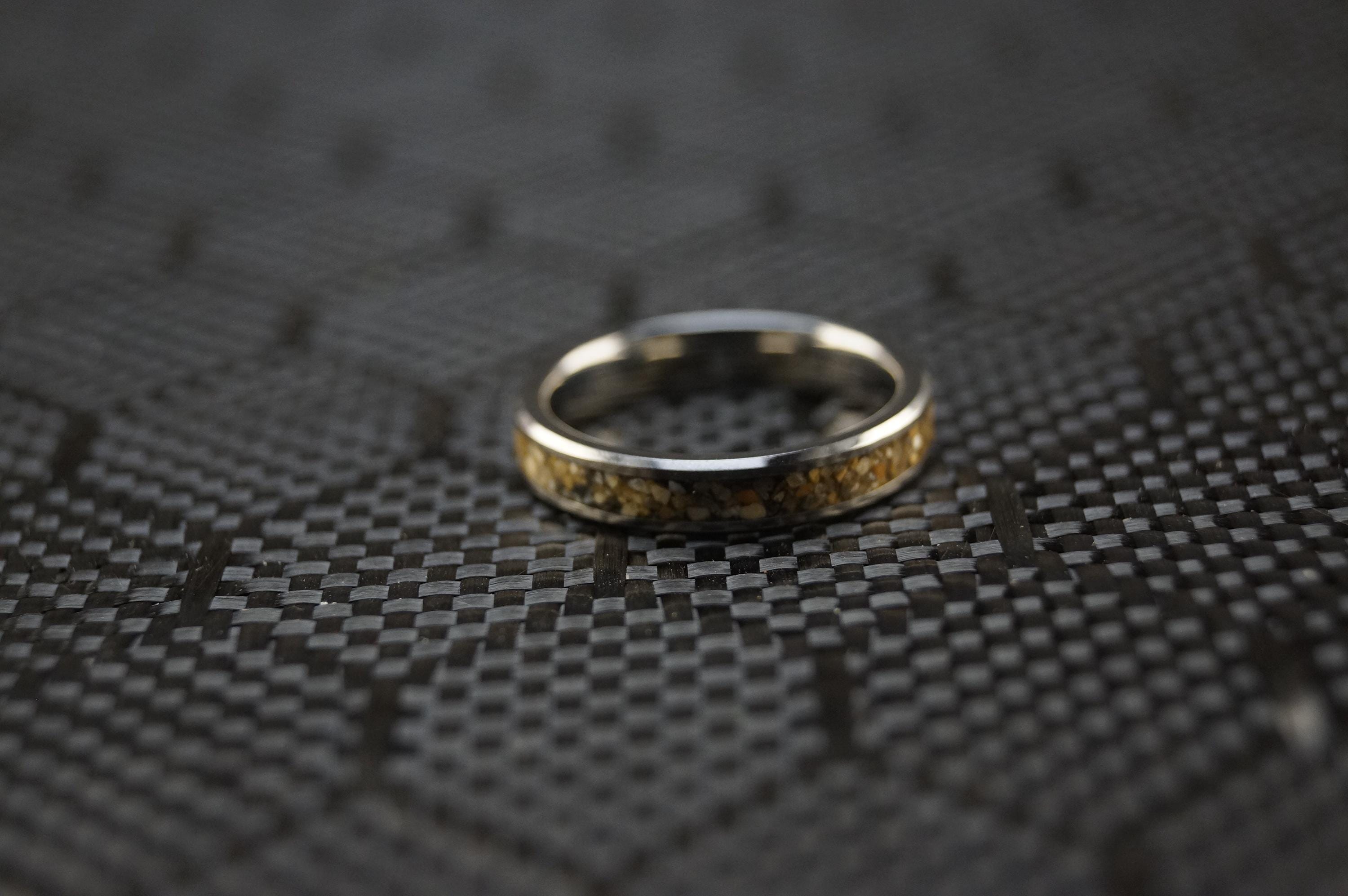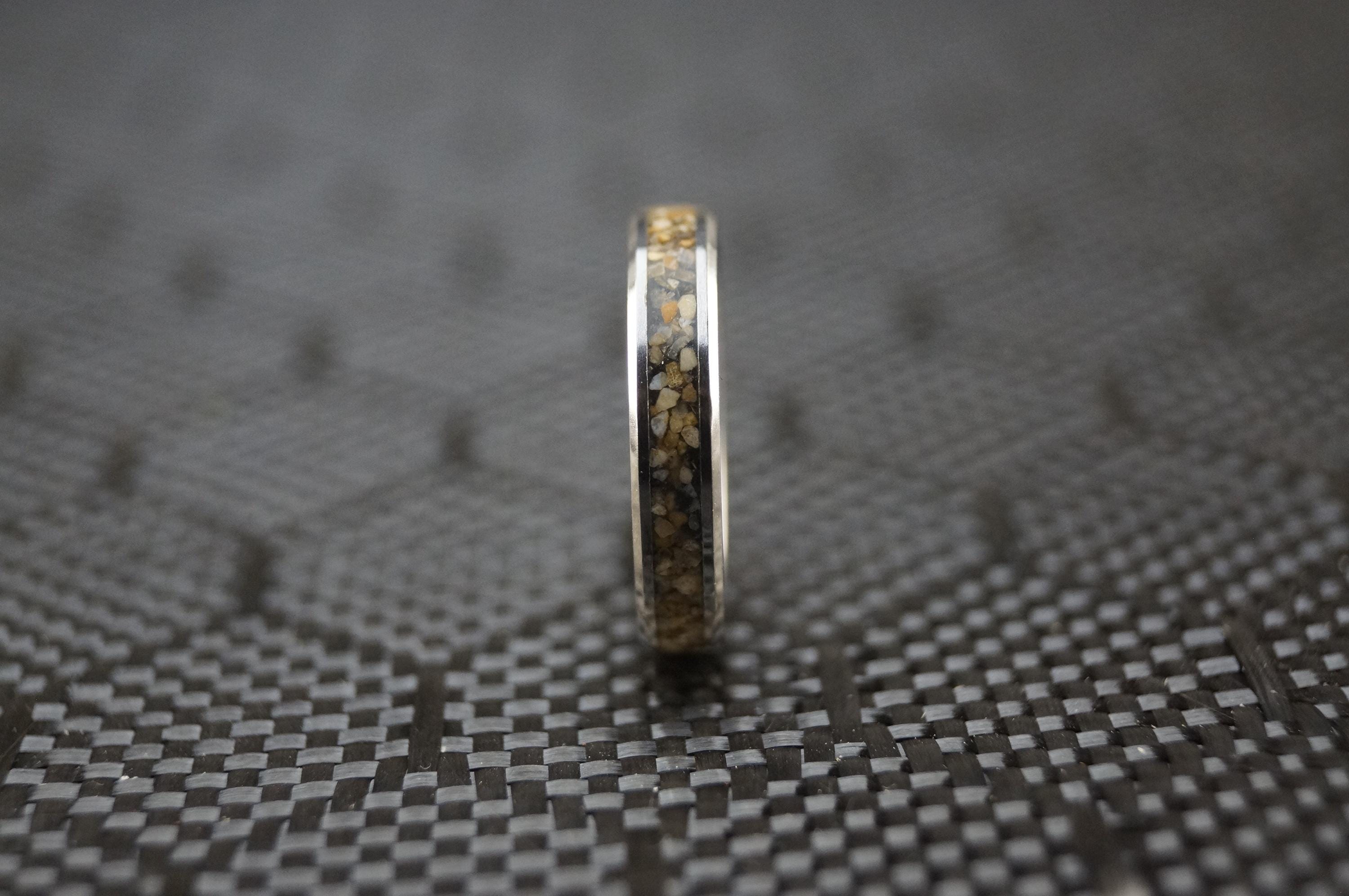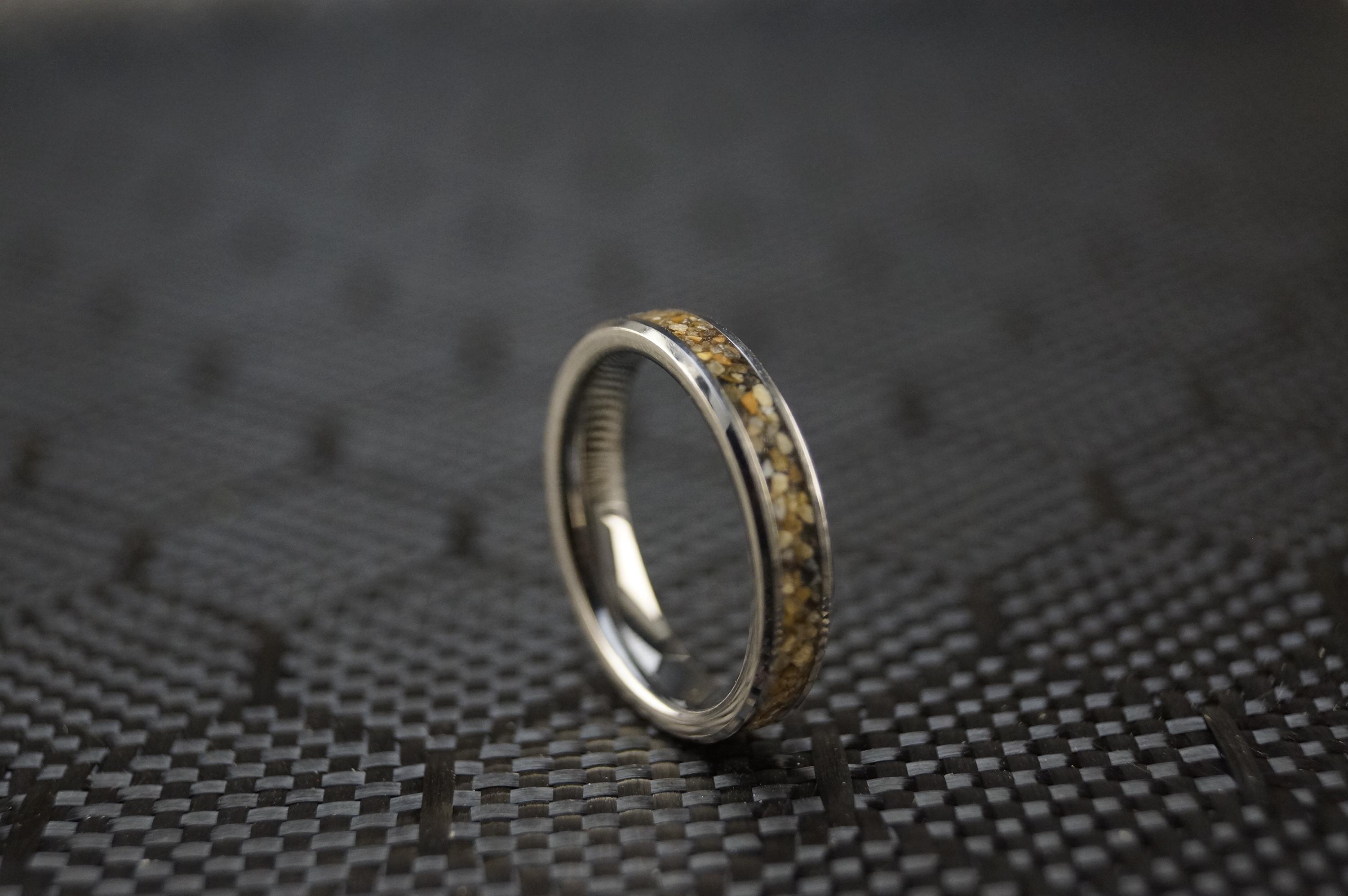 This genuine Tungsten Carbide ring inlaid with 100% Natural Beach Sand or send your own beach sand for me to make your custom beach sand ring.