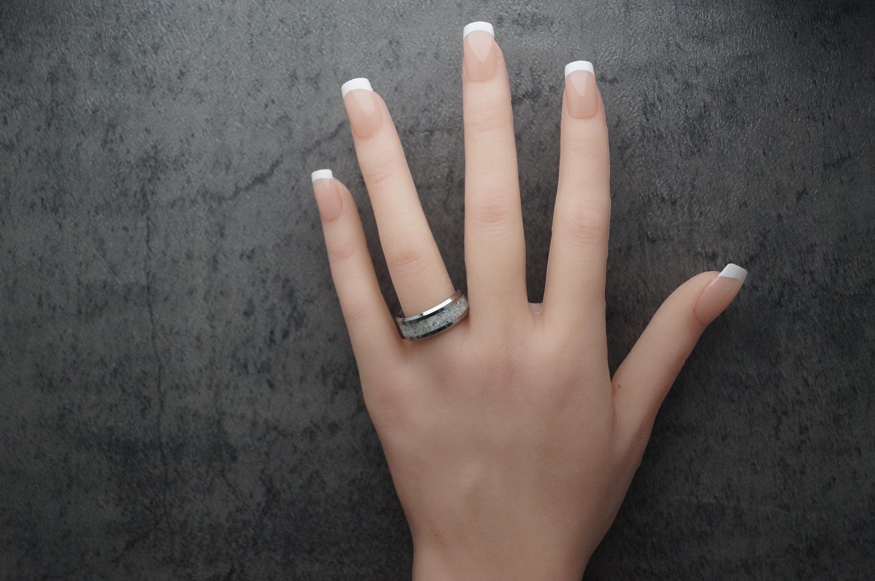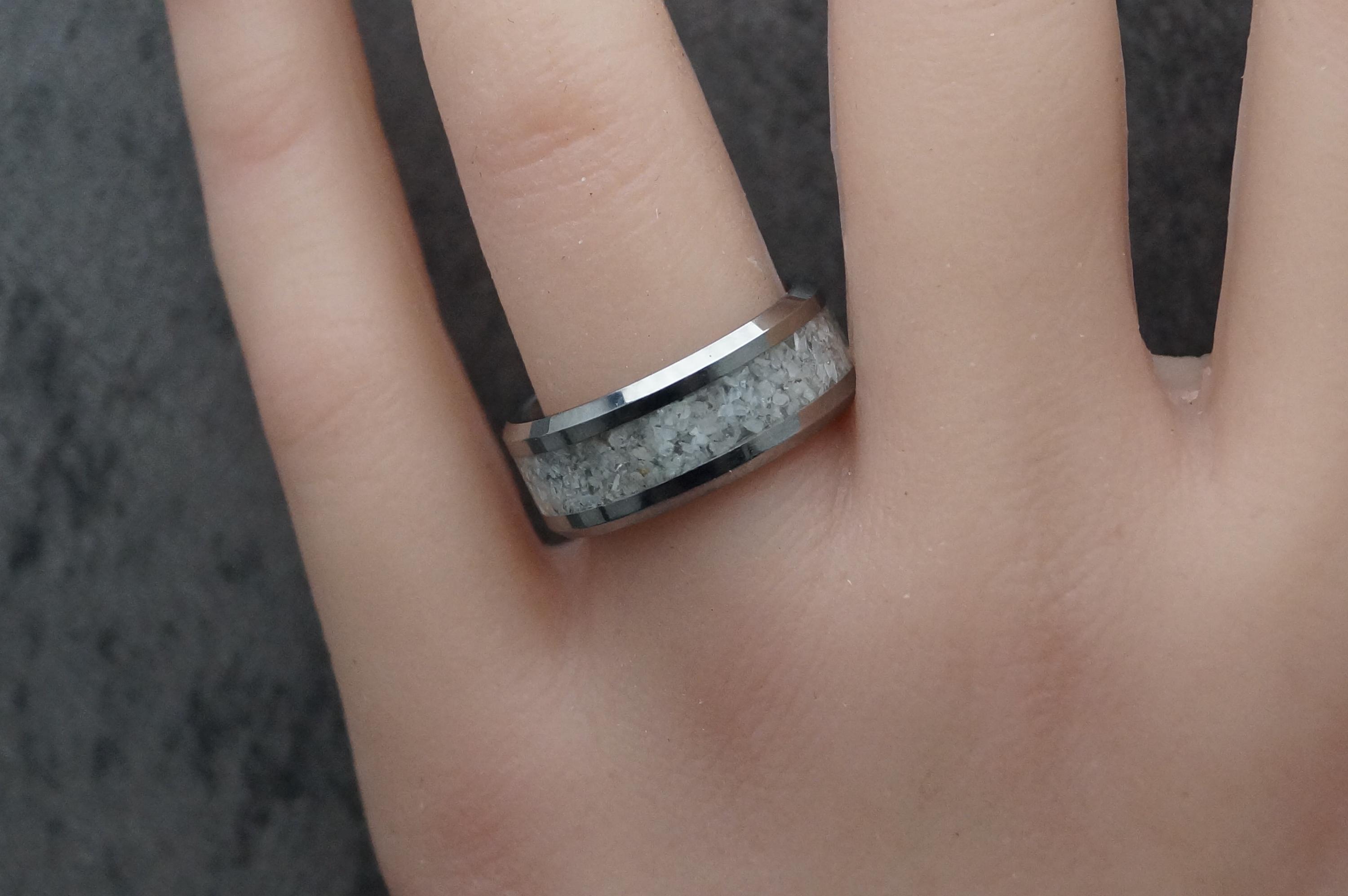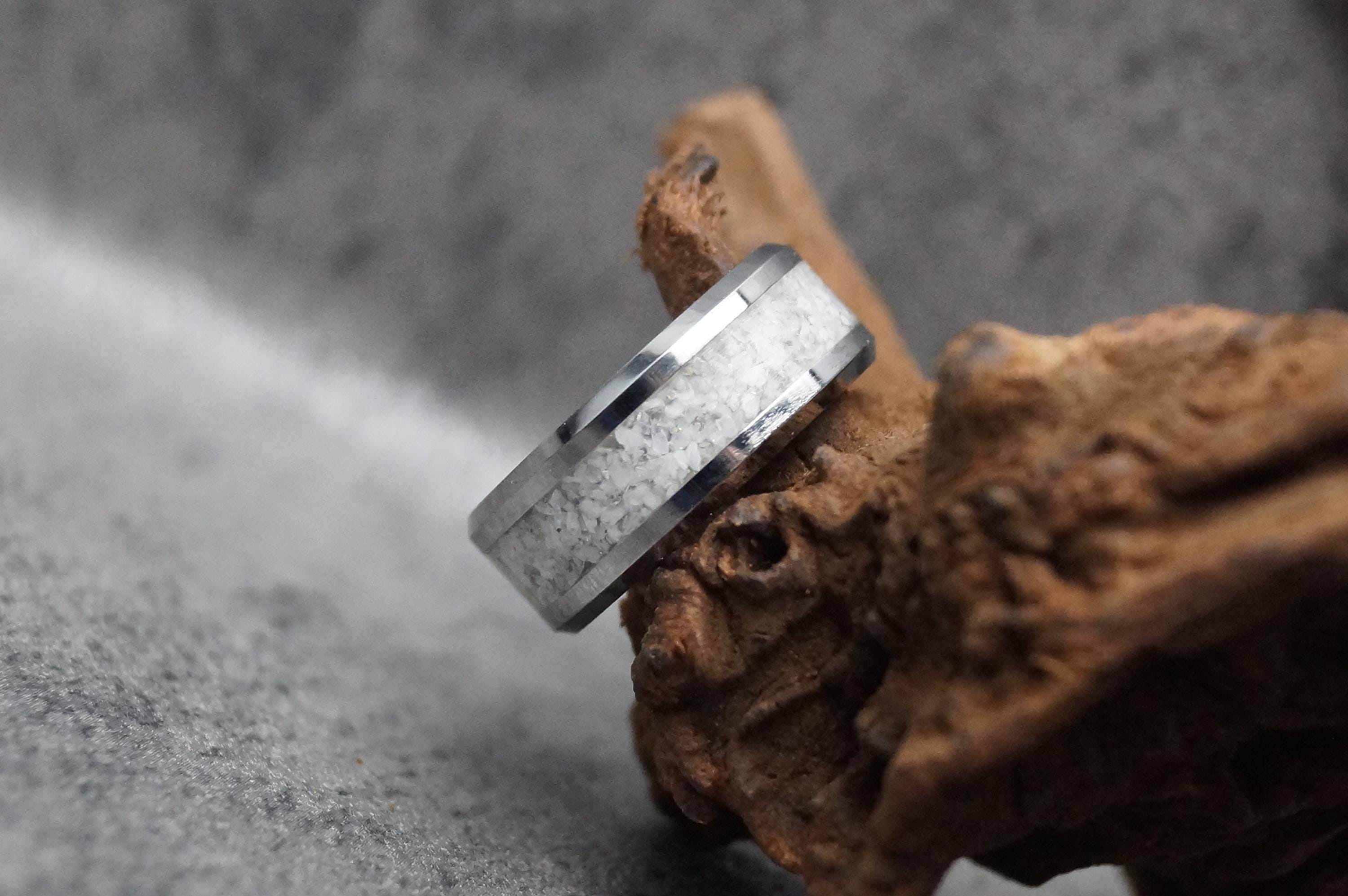 White Moonstone Tungsten Ring - Tungsten wedding band - available 4 mm, 6 mm or 8 mm wide ring - every ring unique