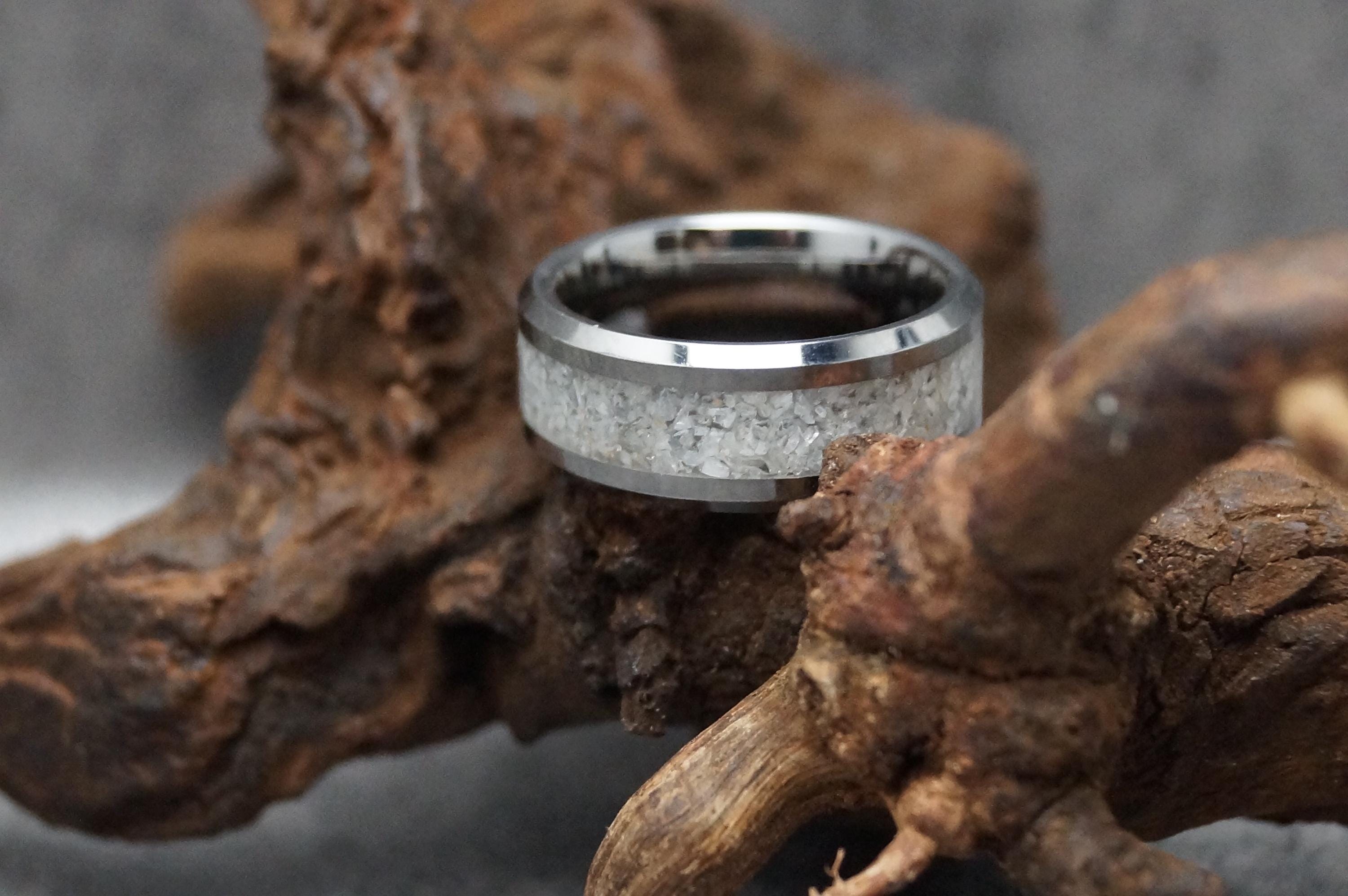 This genuine Tungsten Carbide ring inlaid with 100% Natural white moonstone.