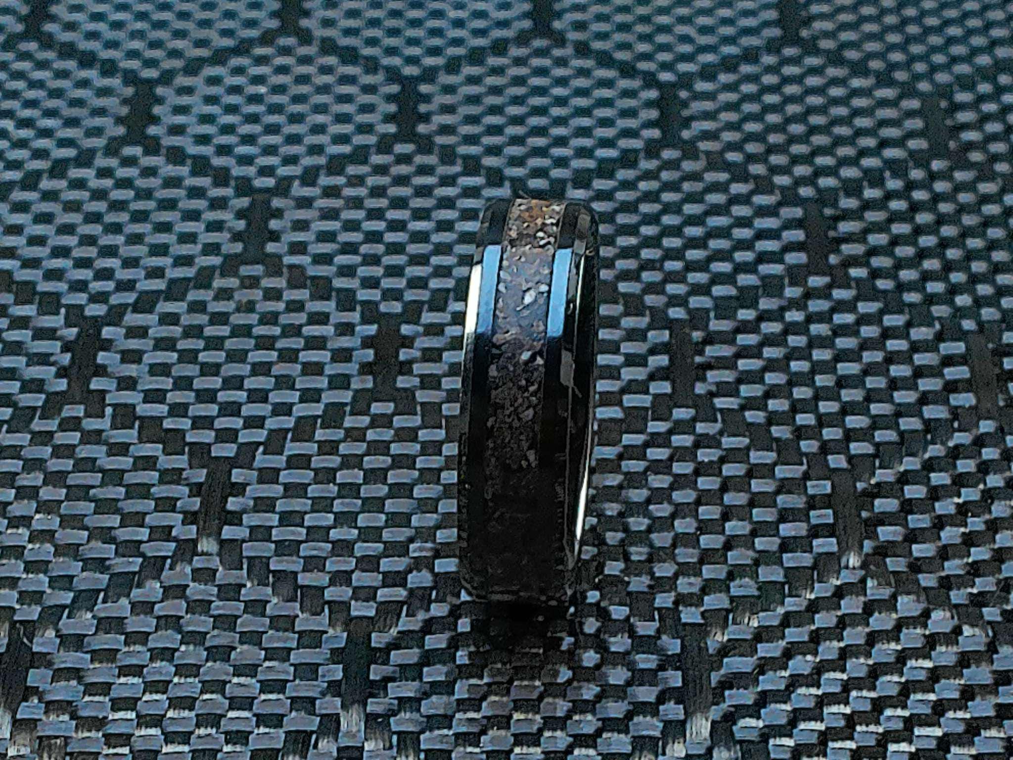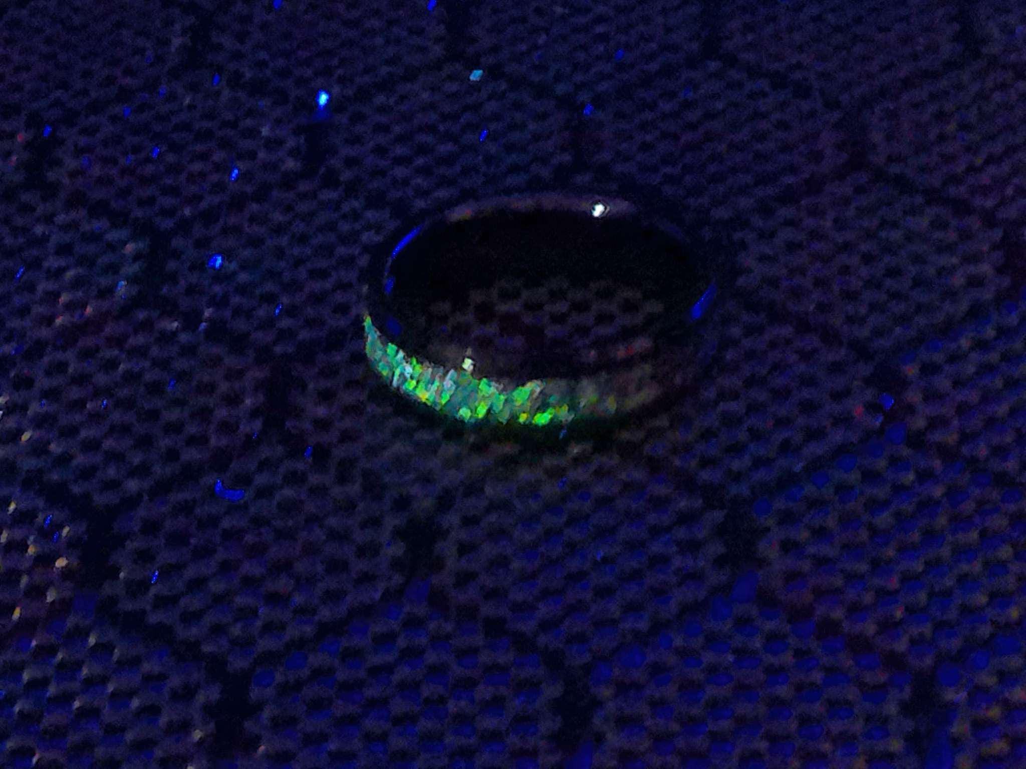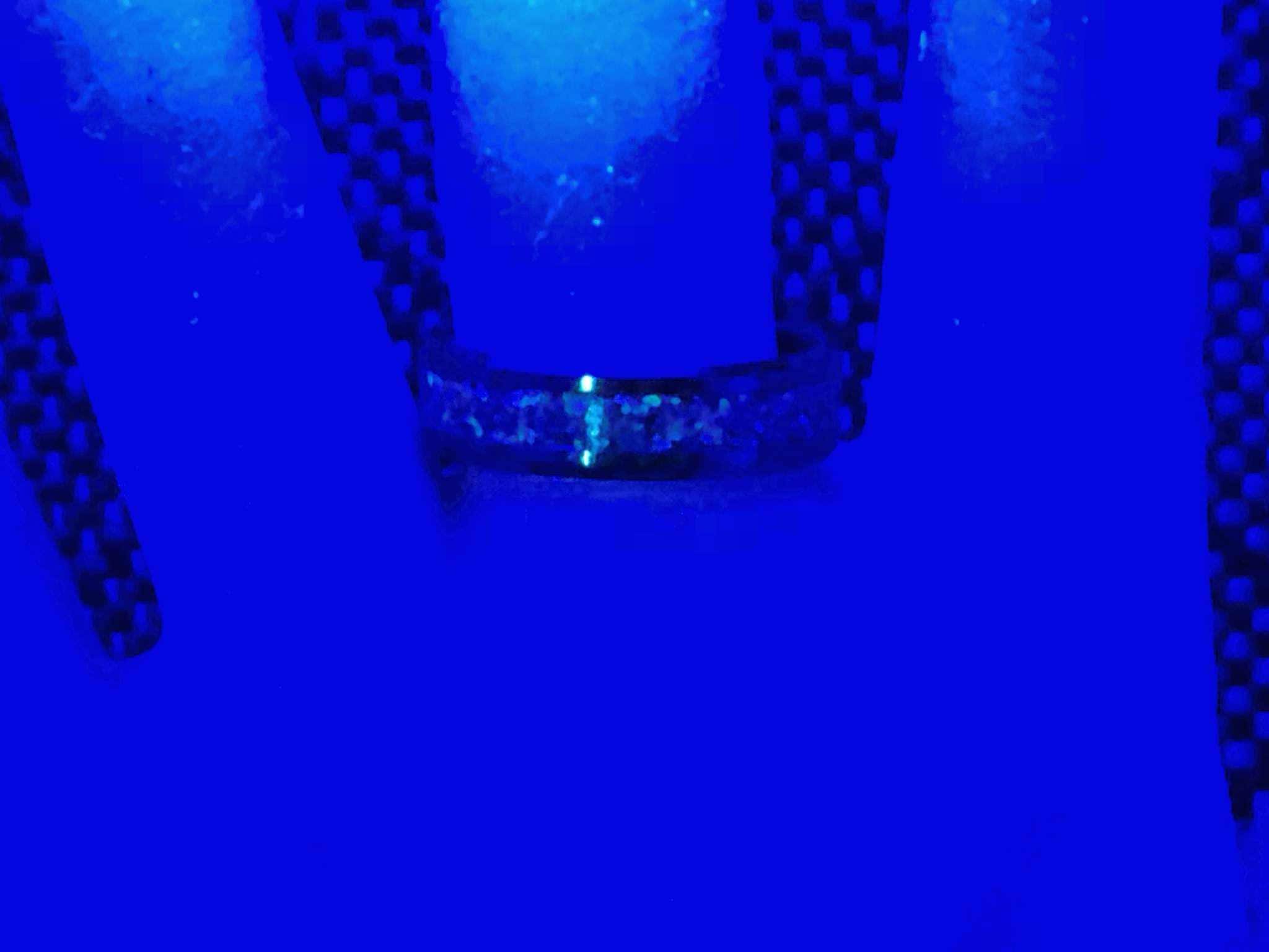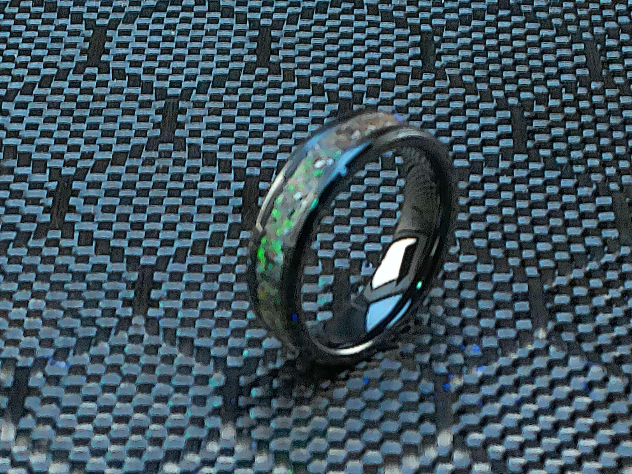 Willemite Black Ceramic Ring, UV Glow Green fluorescence Inlaid Ring