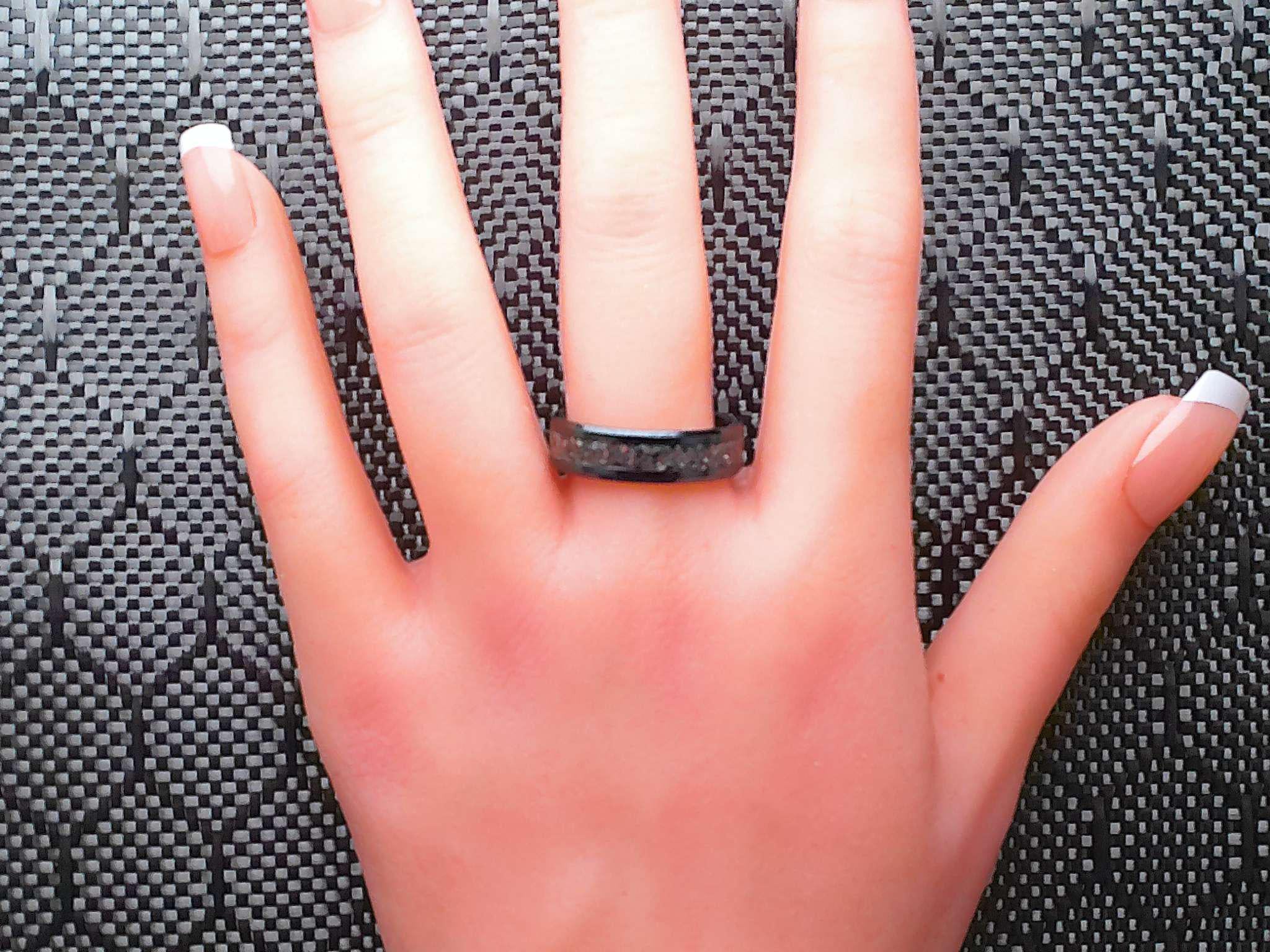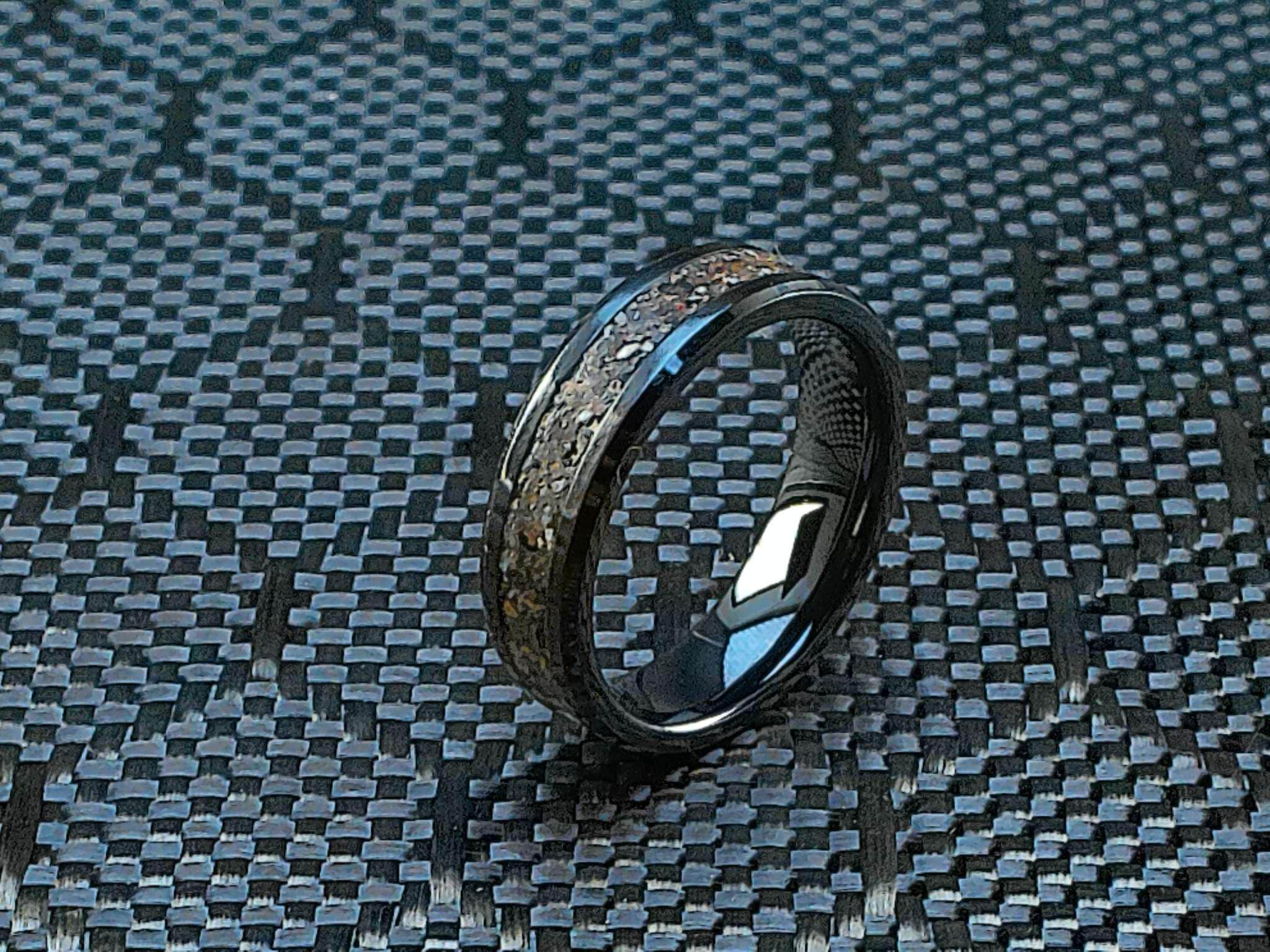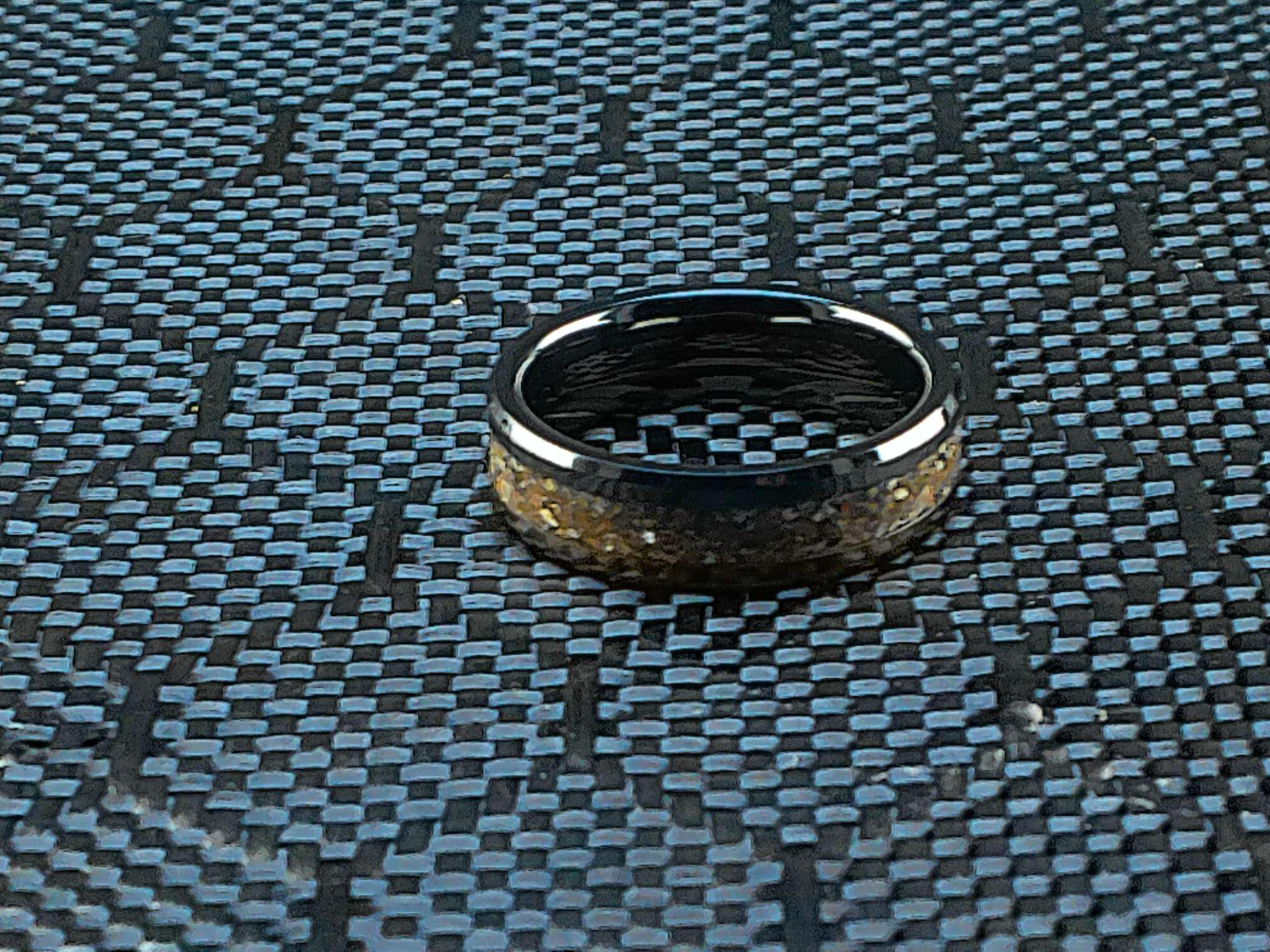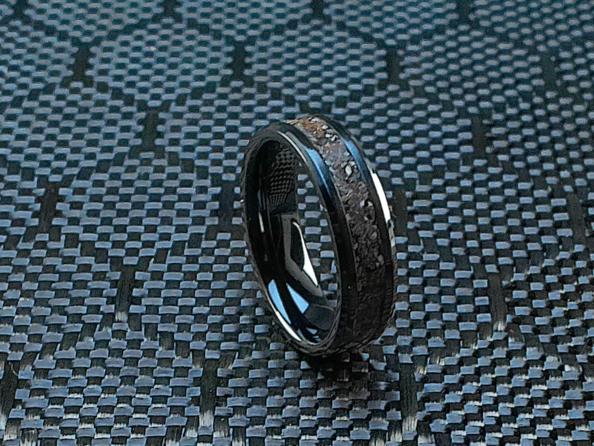 Willemite Black Ceramic Ring, UV Glow Green fluorescence Inlaid Ring