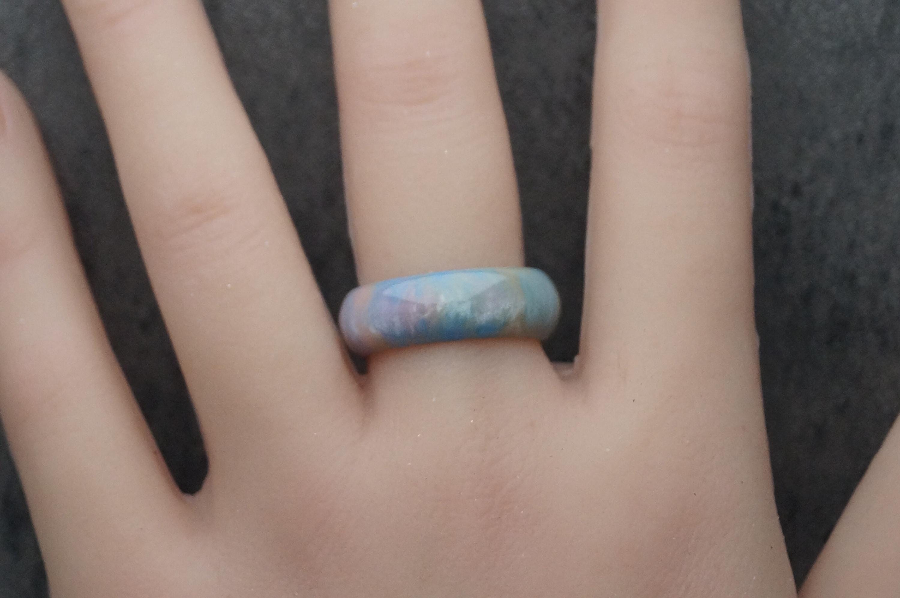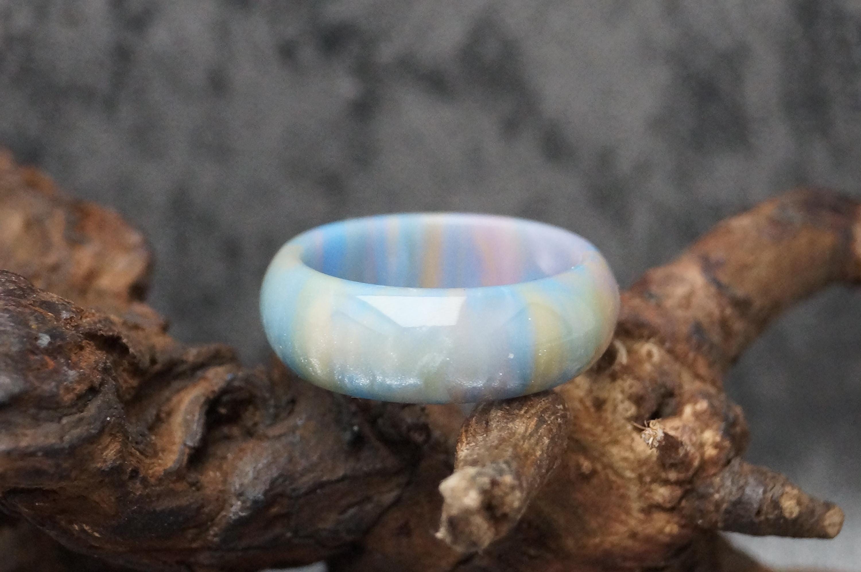 Resin Ring - Colourful Rainbow Resin Ring Retro Multi-Colour Resin Ring 8 mm wide ring - Gift idea > 2