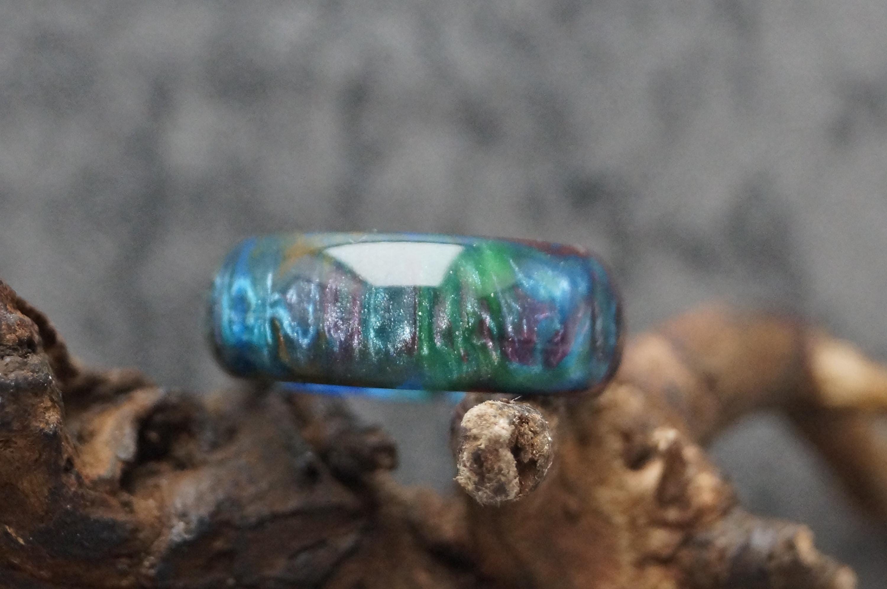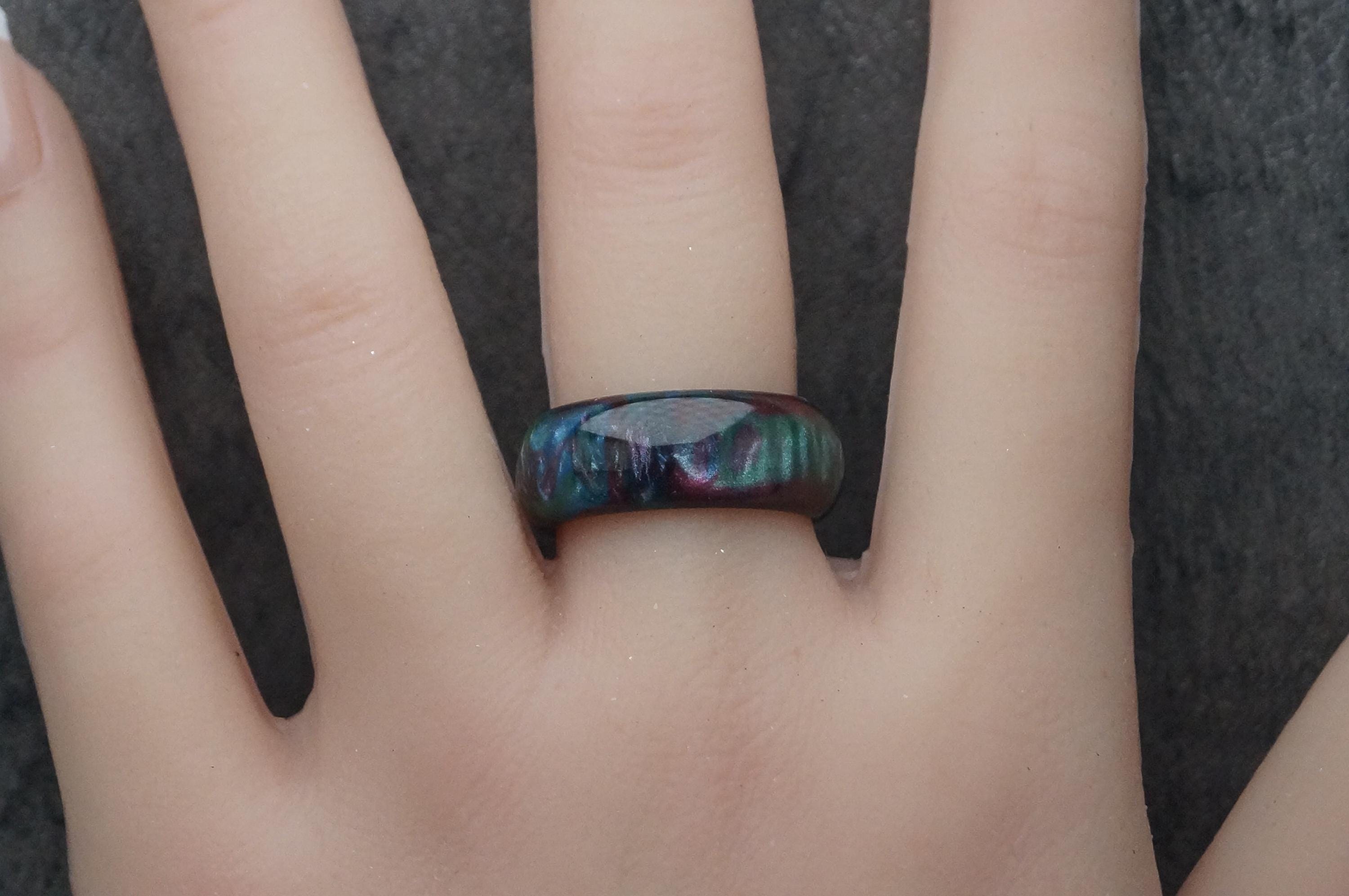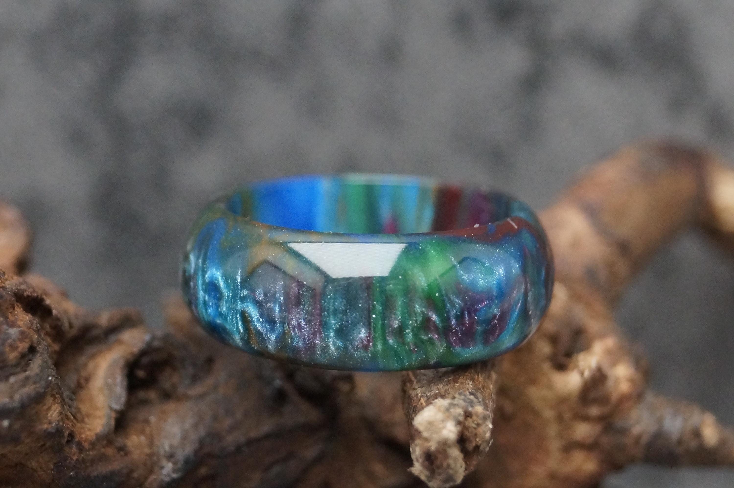 Resin Ring - Colourful Rainbow Resin Ring Retro Multi-Colour Resin Ring 8 mm wide ring - Gift idea > 7