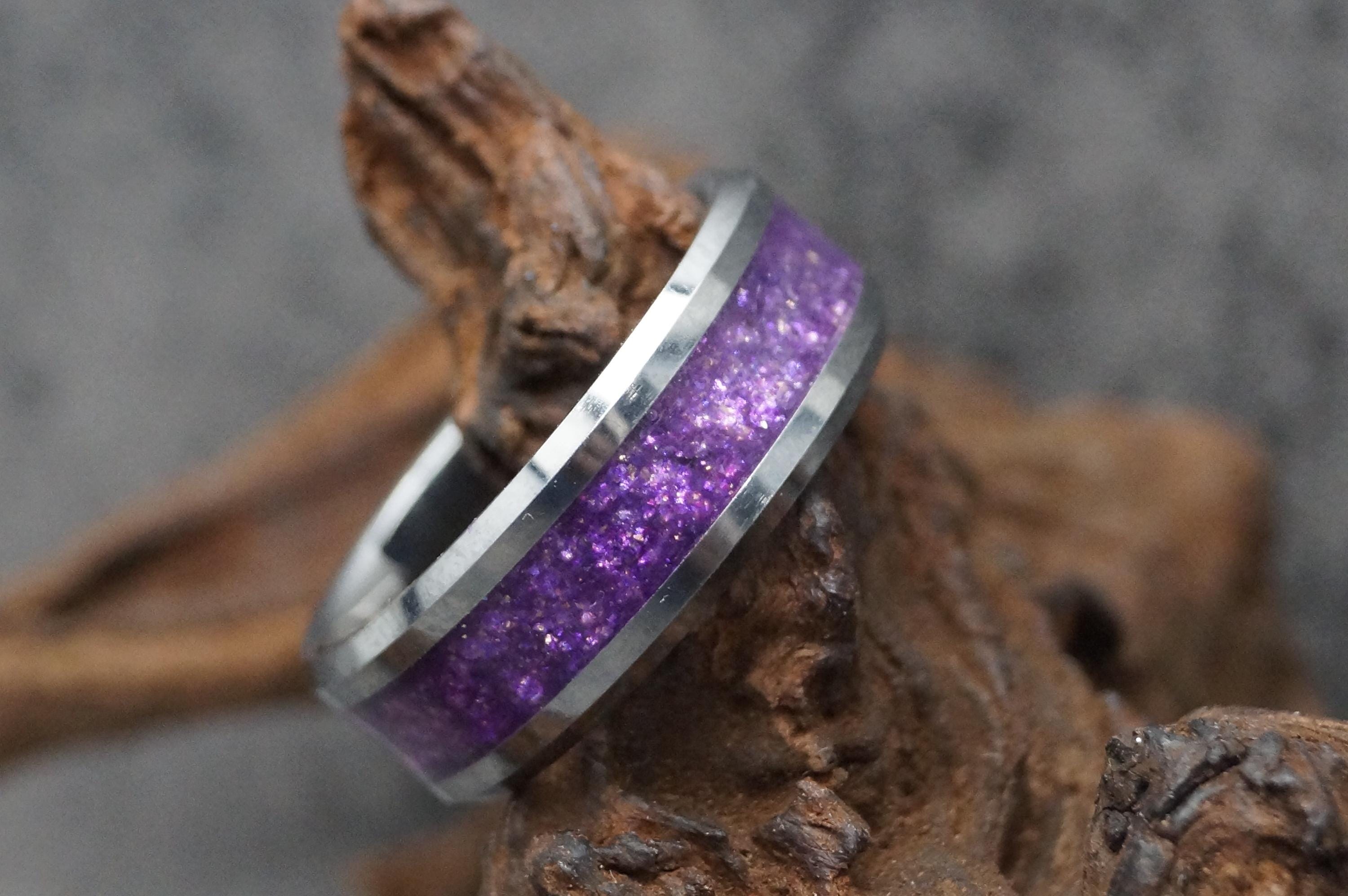 Pet Ashes Ring or Pet Fur Ring Nebula Eco-Glitter Tungsten Memorial Ring Available 4 mm, 6 mm or 8 mm wide band