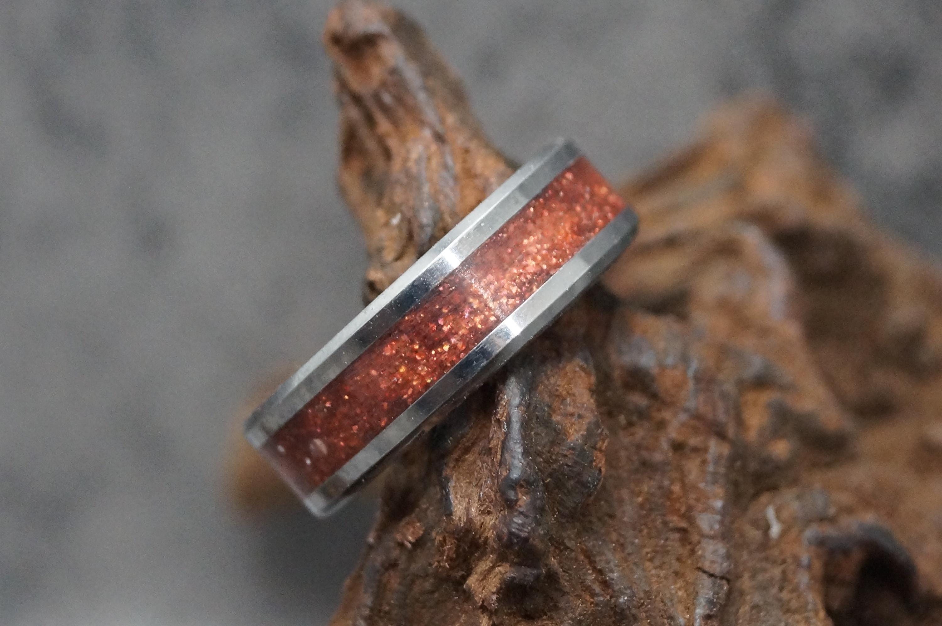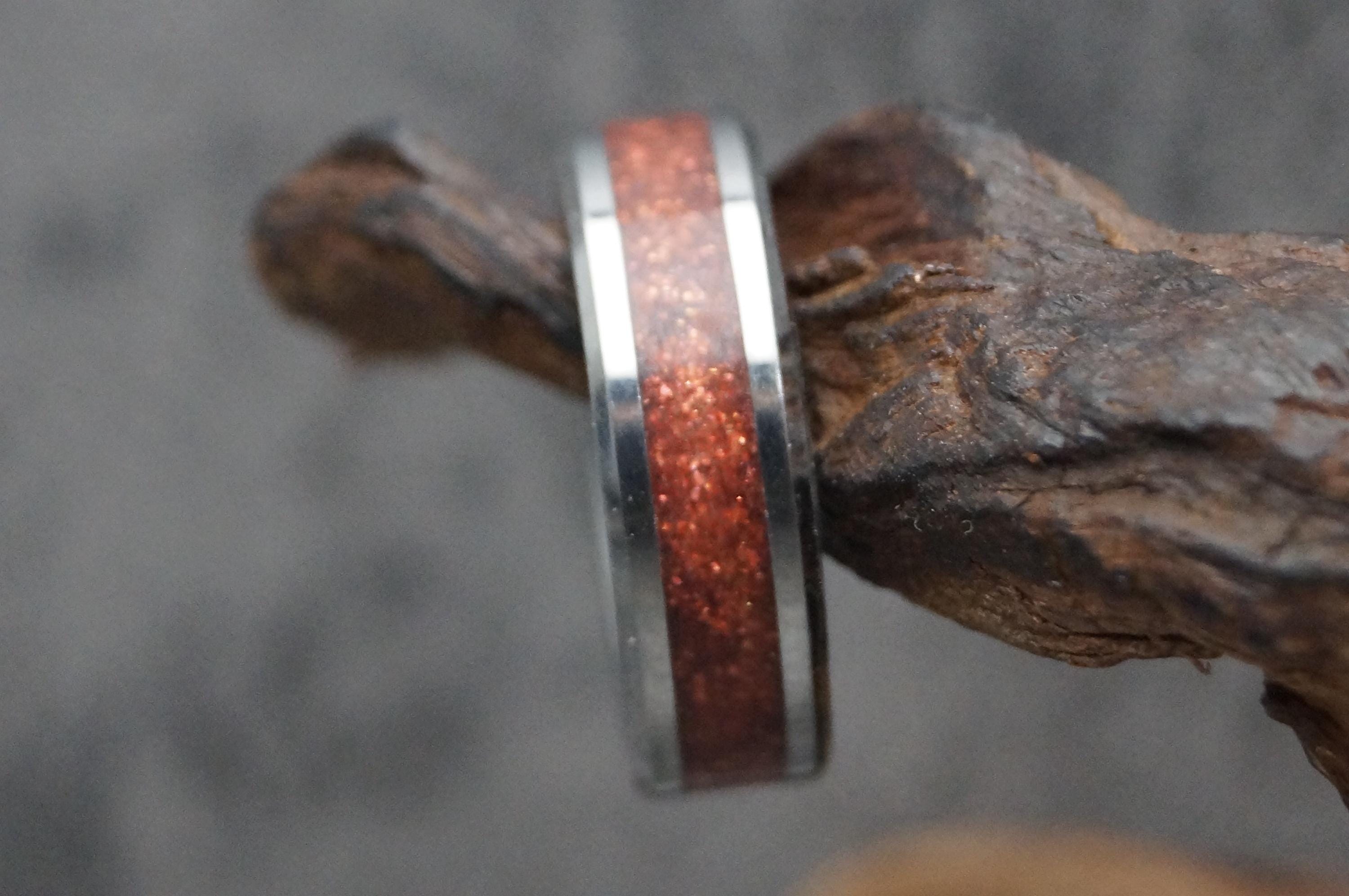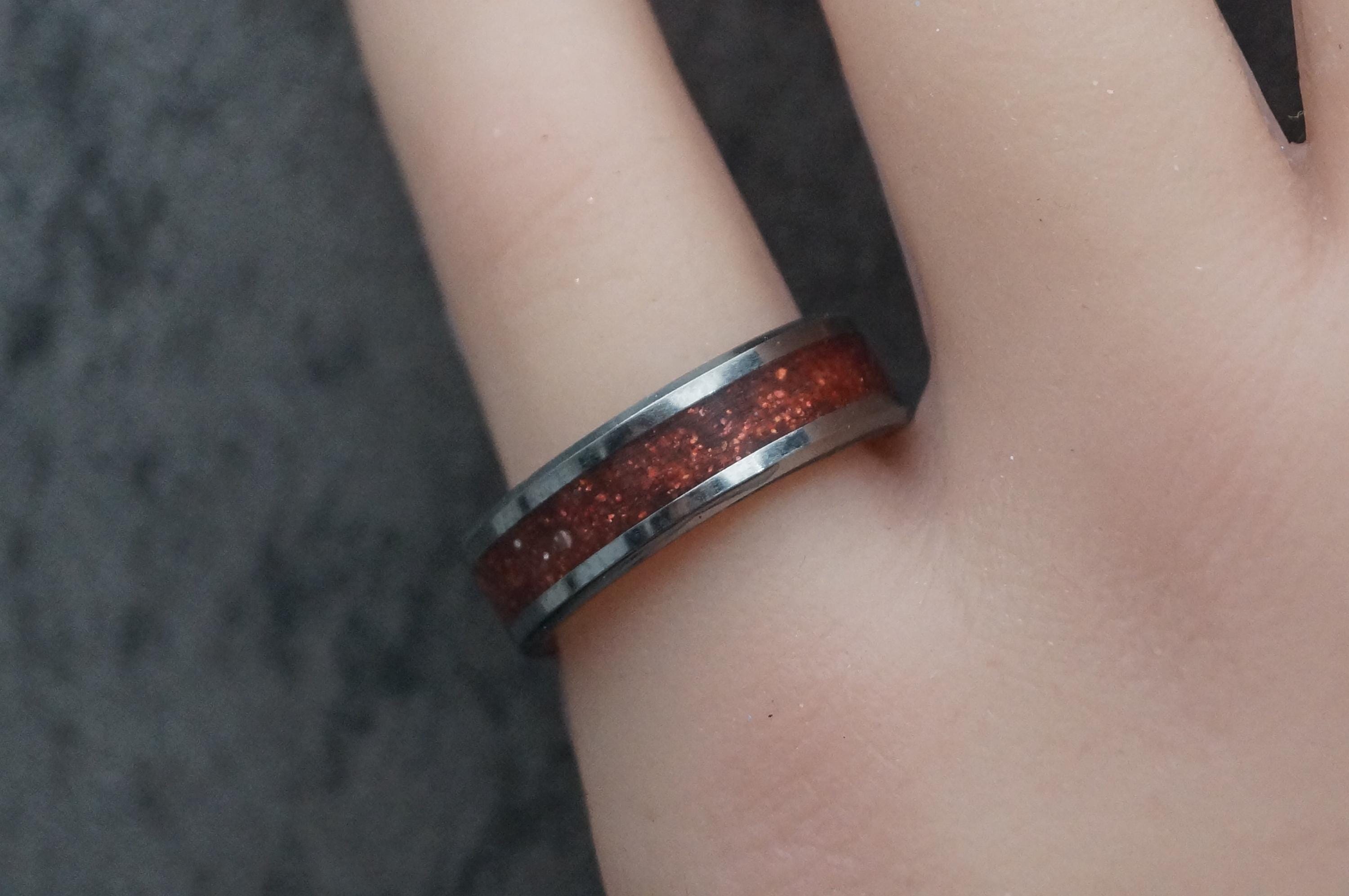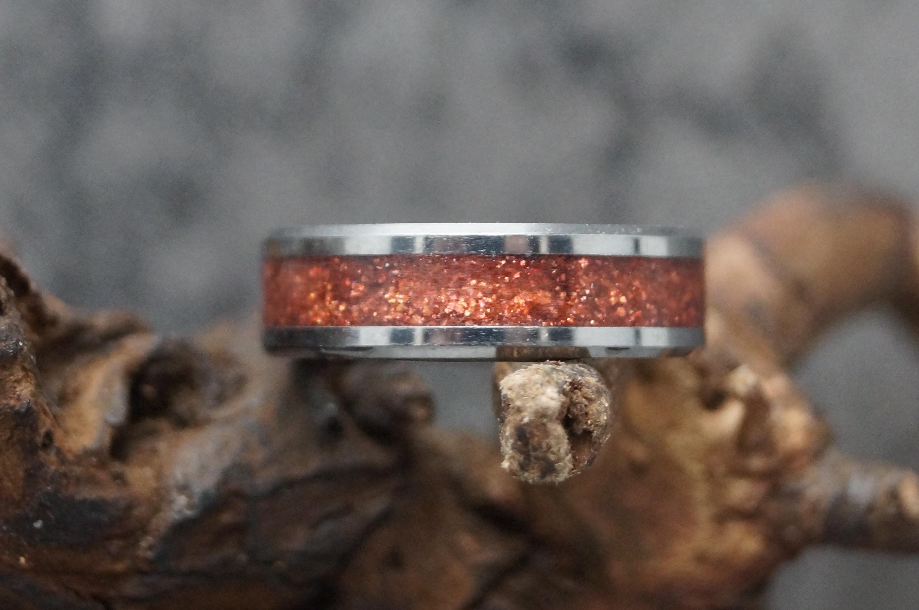 Pet Ashes Ring or Pet Fur Ring with Copper Glitter Tungsten Memorial Ring 4 mm, 6 mm or 8 mm wide band