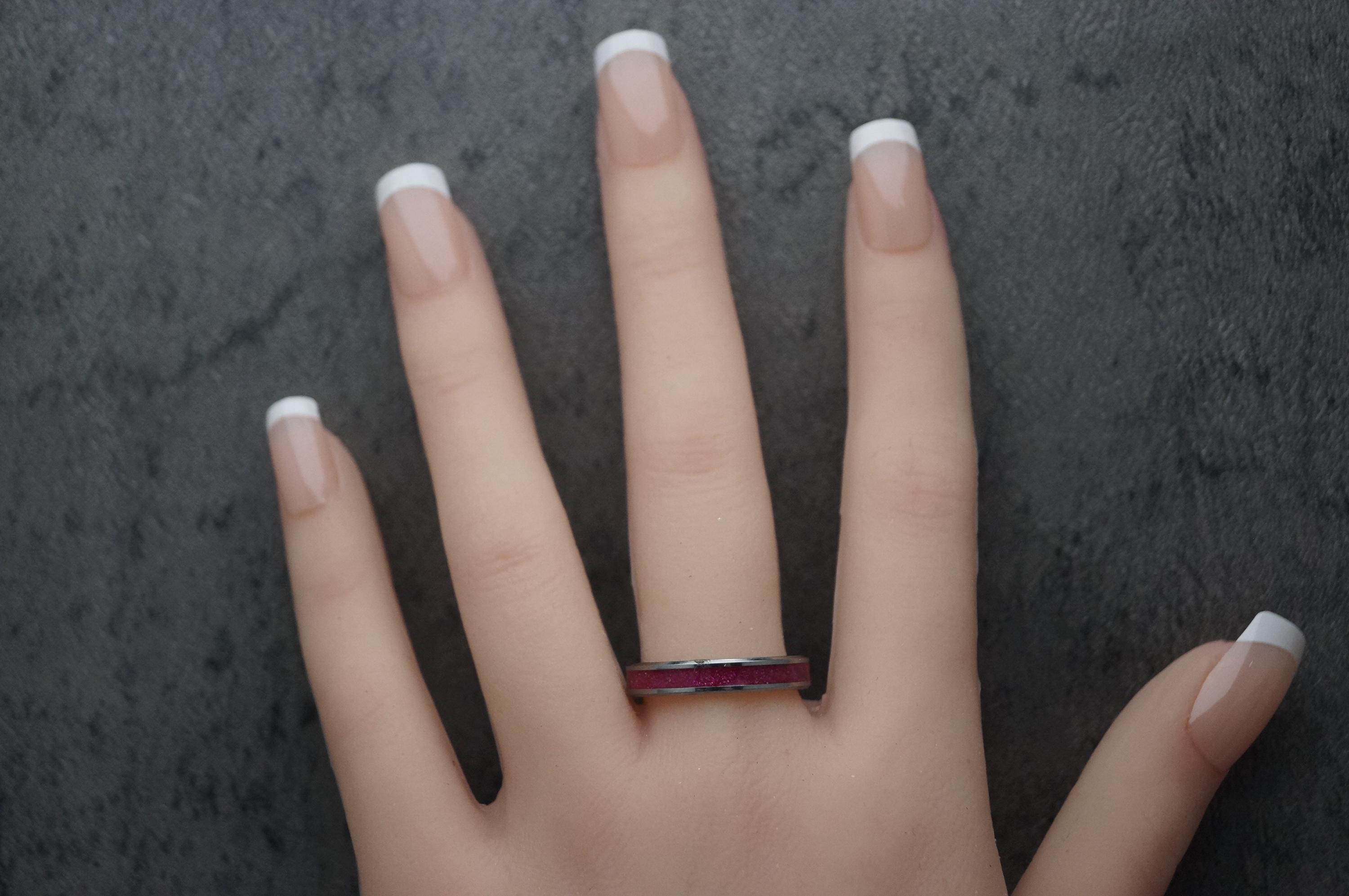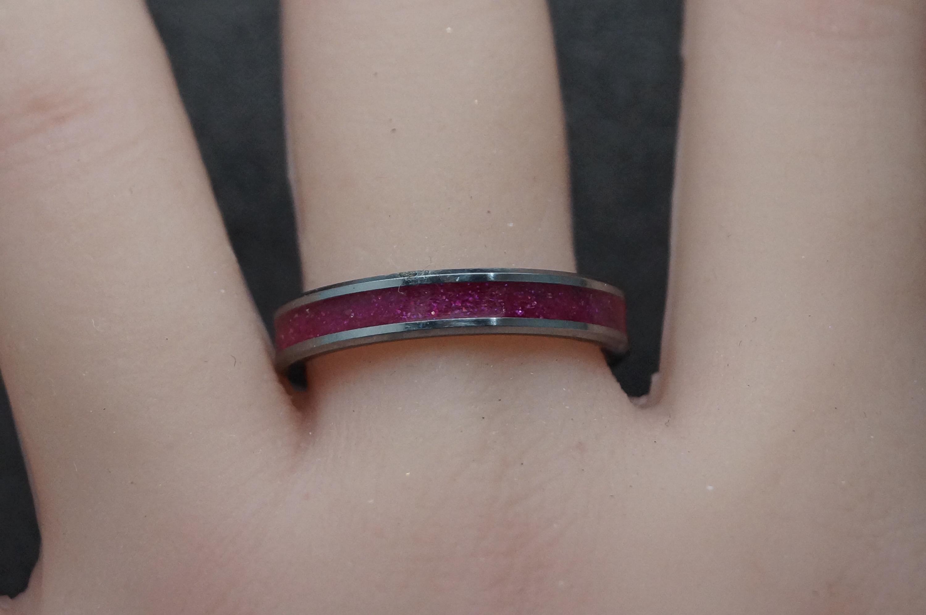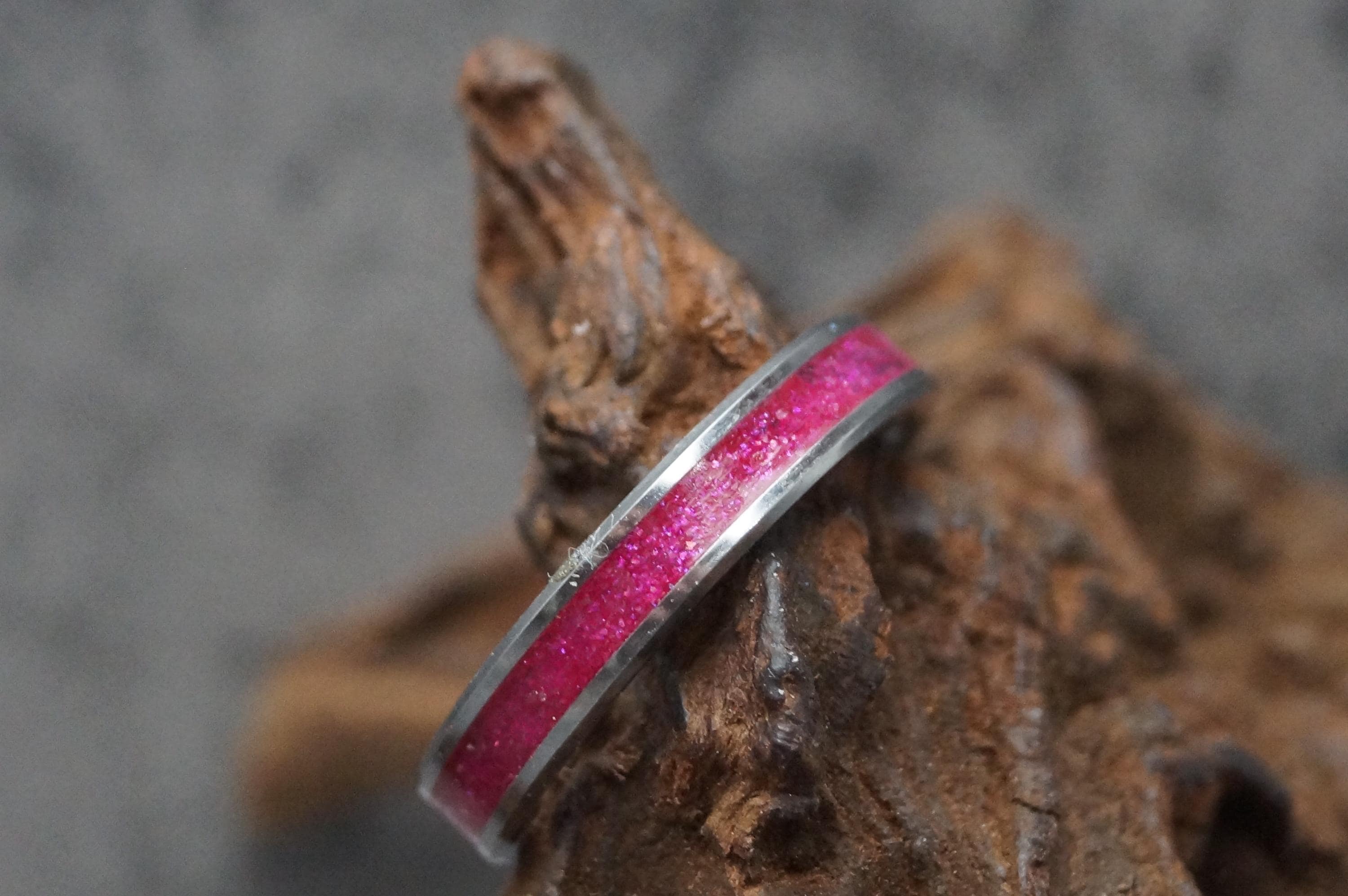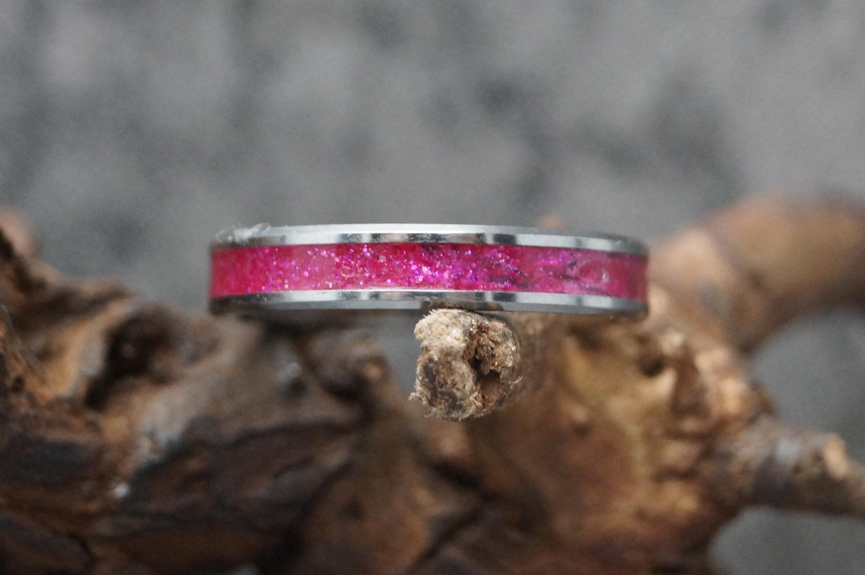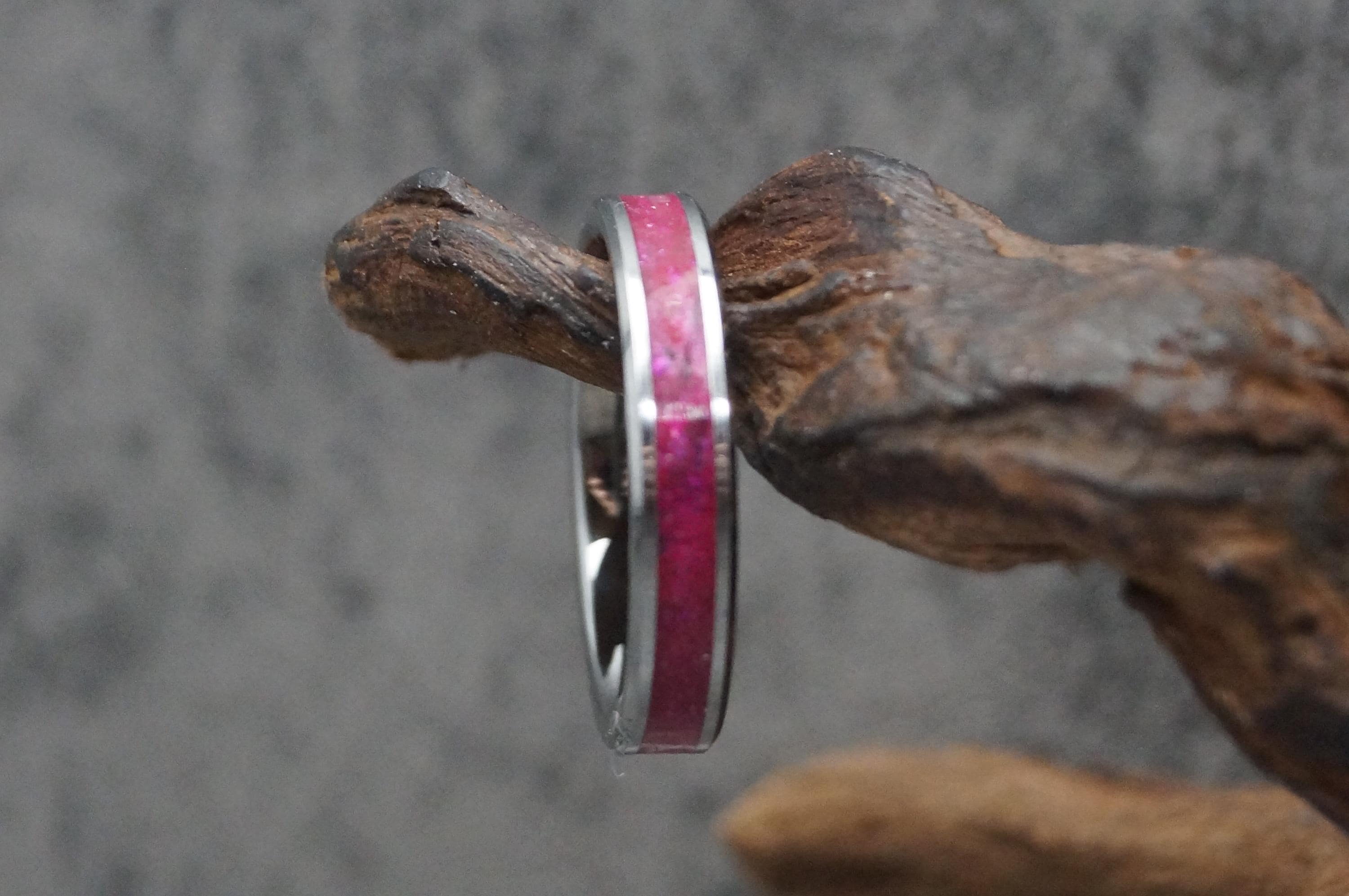Genuine Tungsten Carbide ring inlaid with Magenta Eco-Glitter with your pet hair / fur, pet ashes from your Dog, Cat (fur and or whiskers), Pony hair or Horse hair etc.