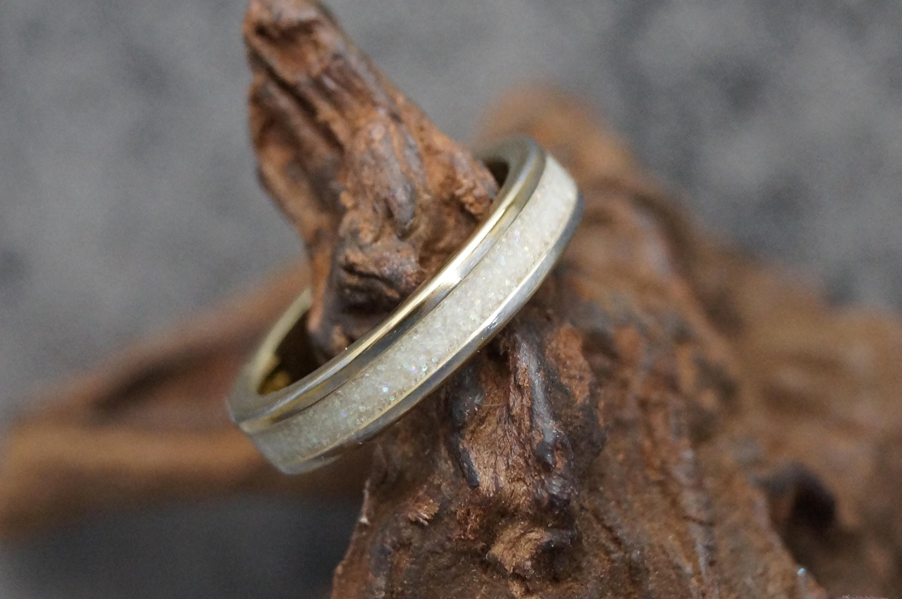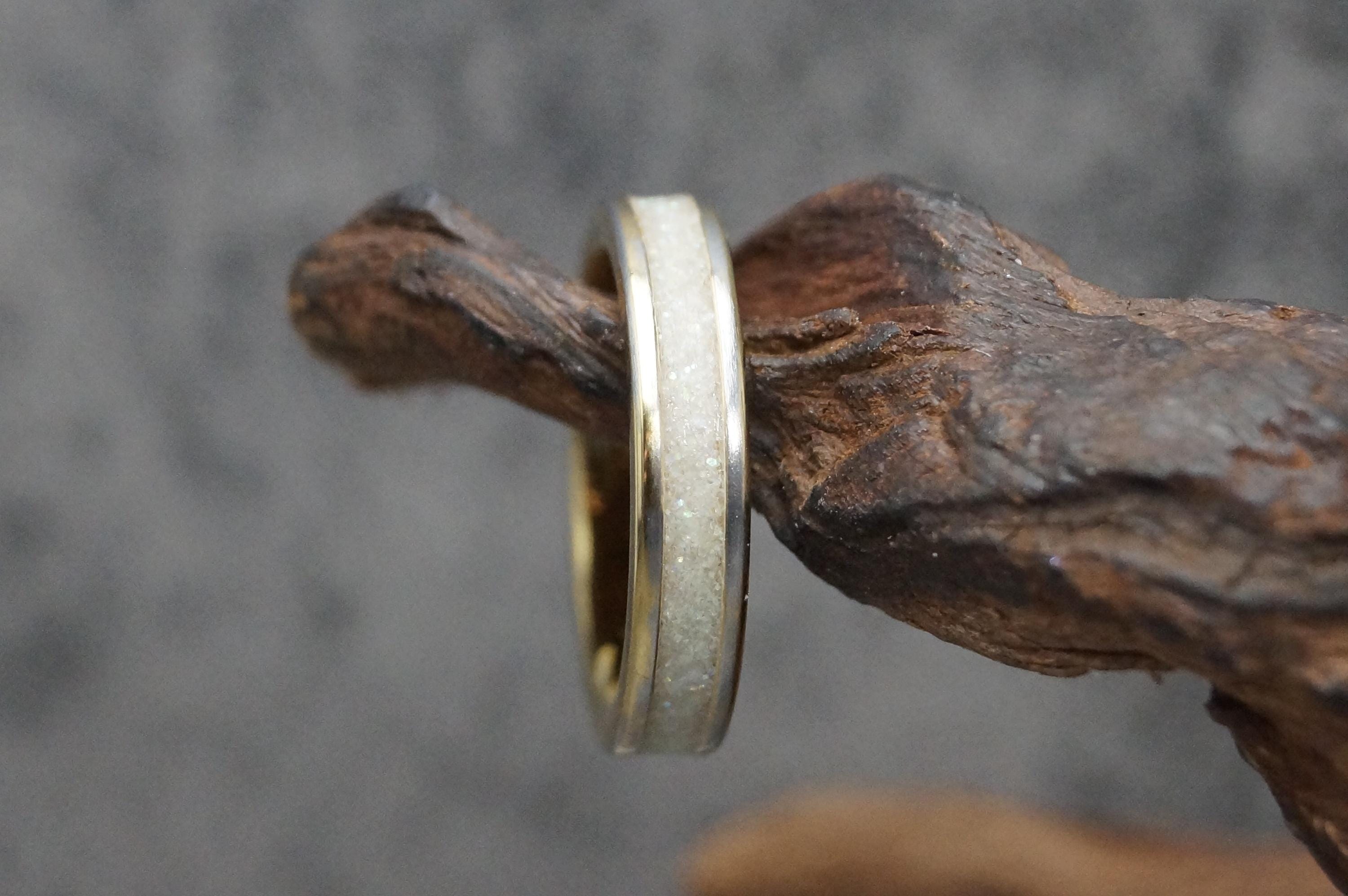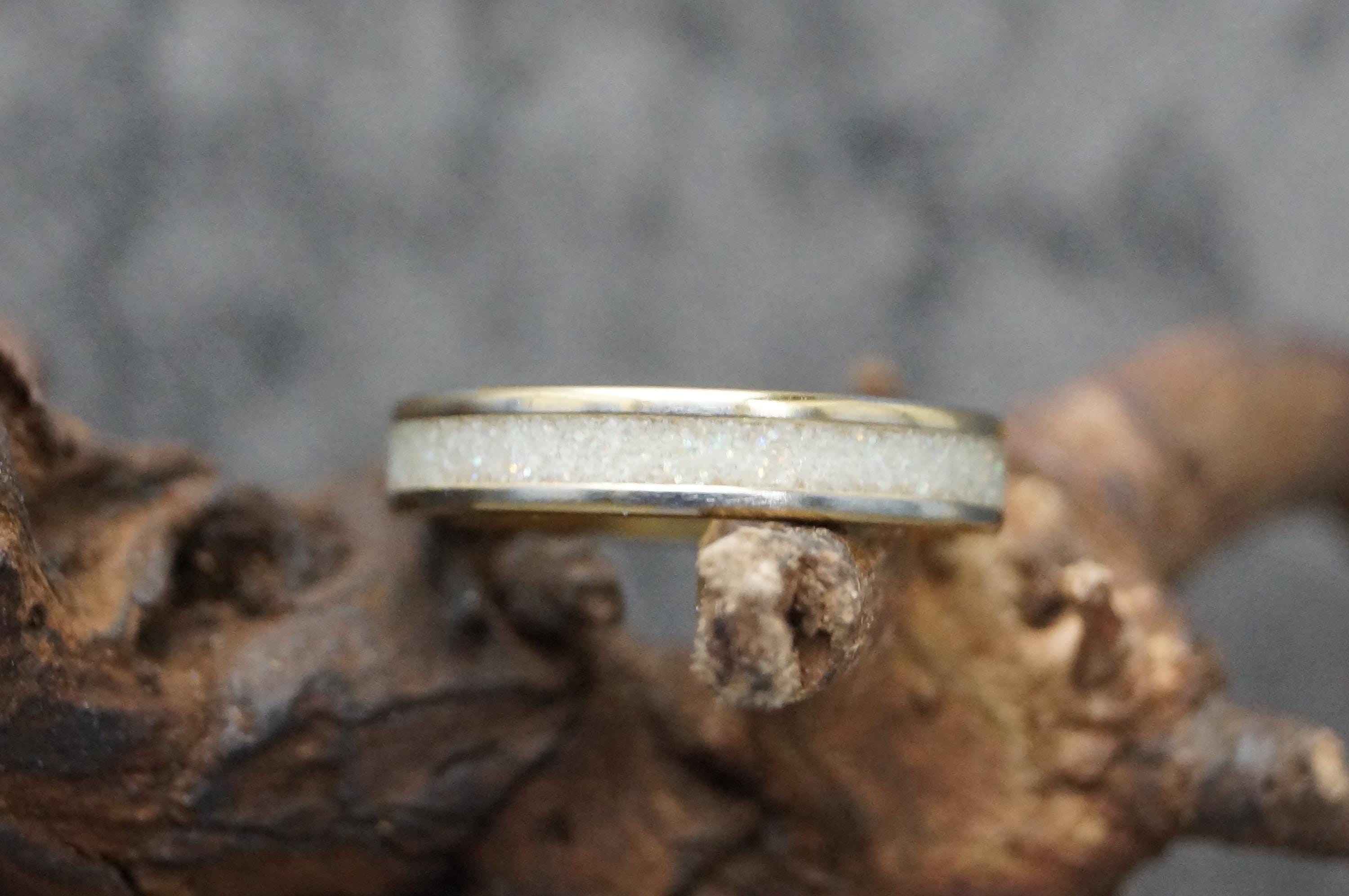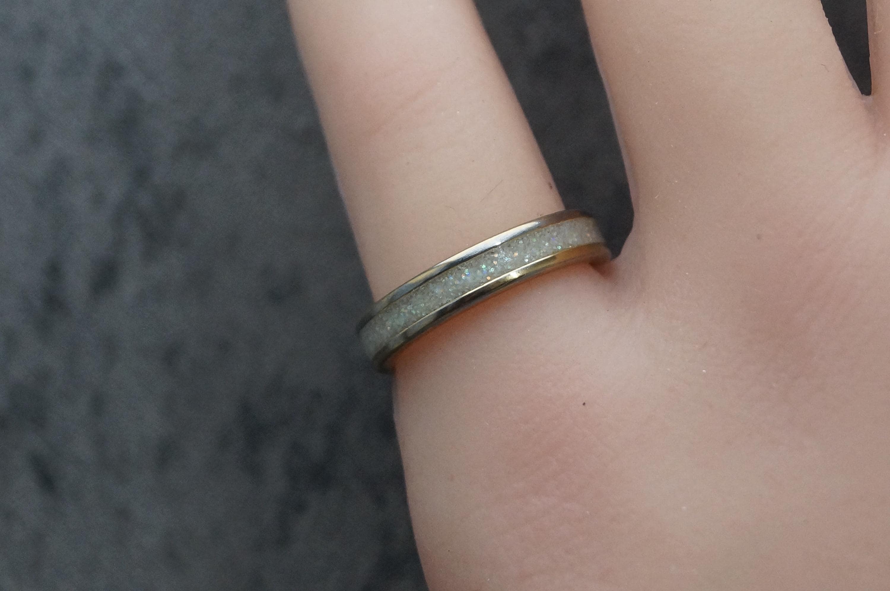 Pet Ashes Ring or Pet Fur Ring with Aurora Colour Shift Eco-Glitter Gold Plated Tungsten Ring - Available 4 mm Wide Ring