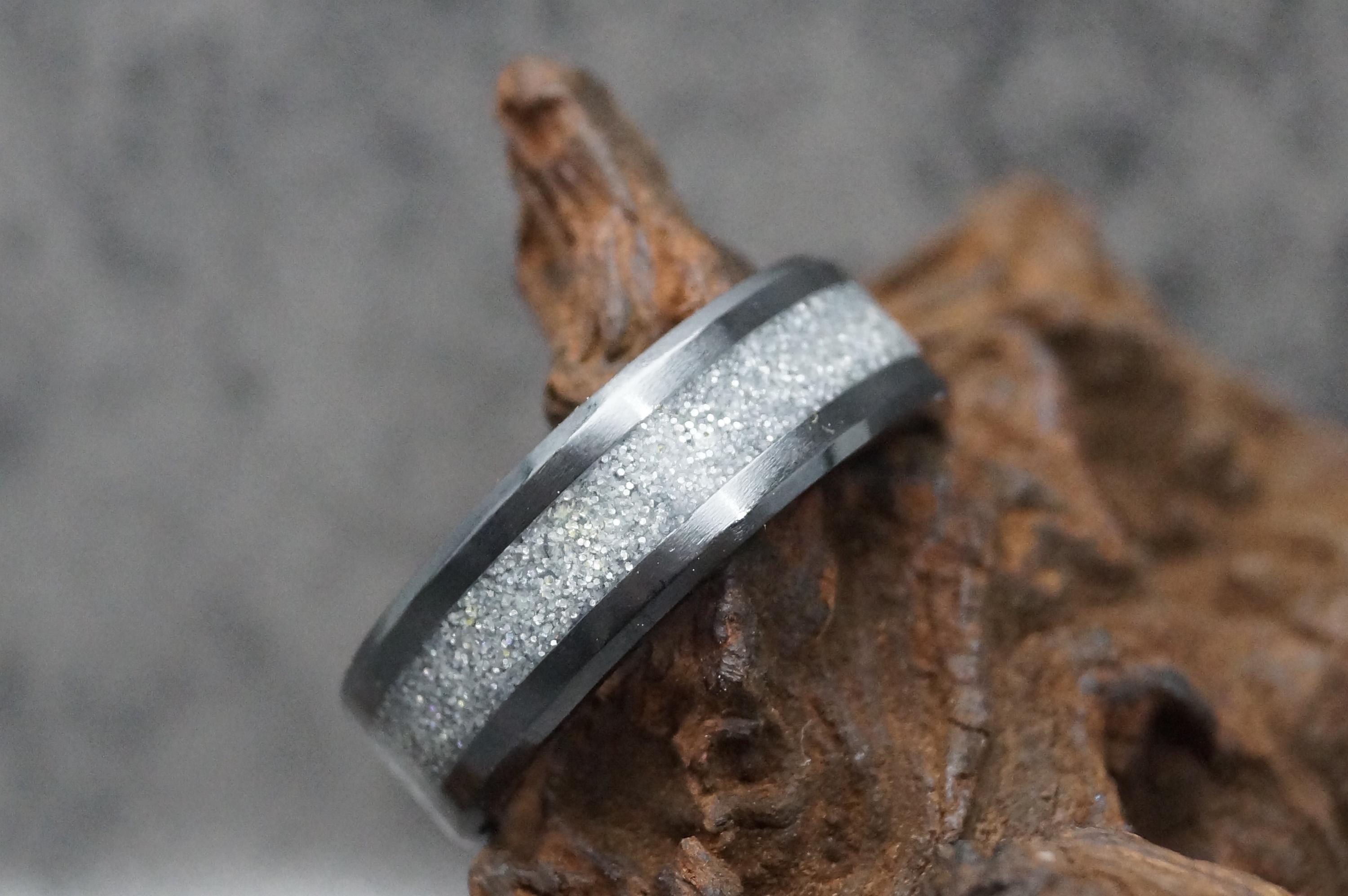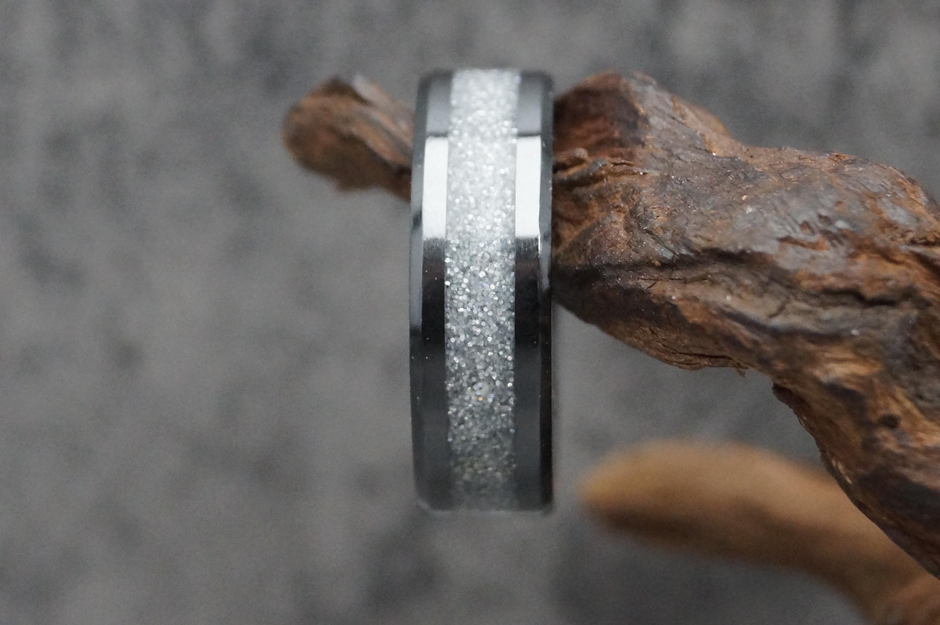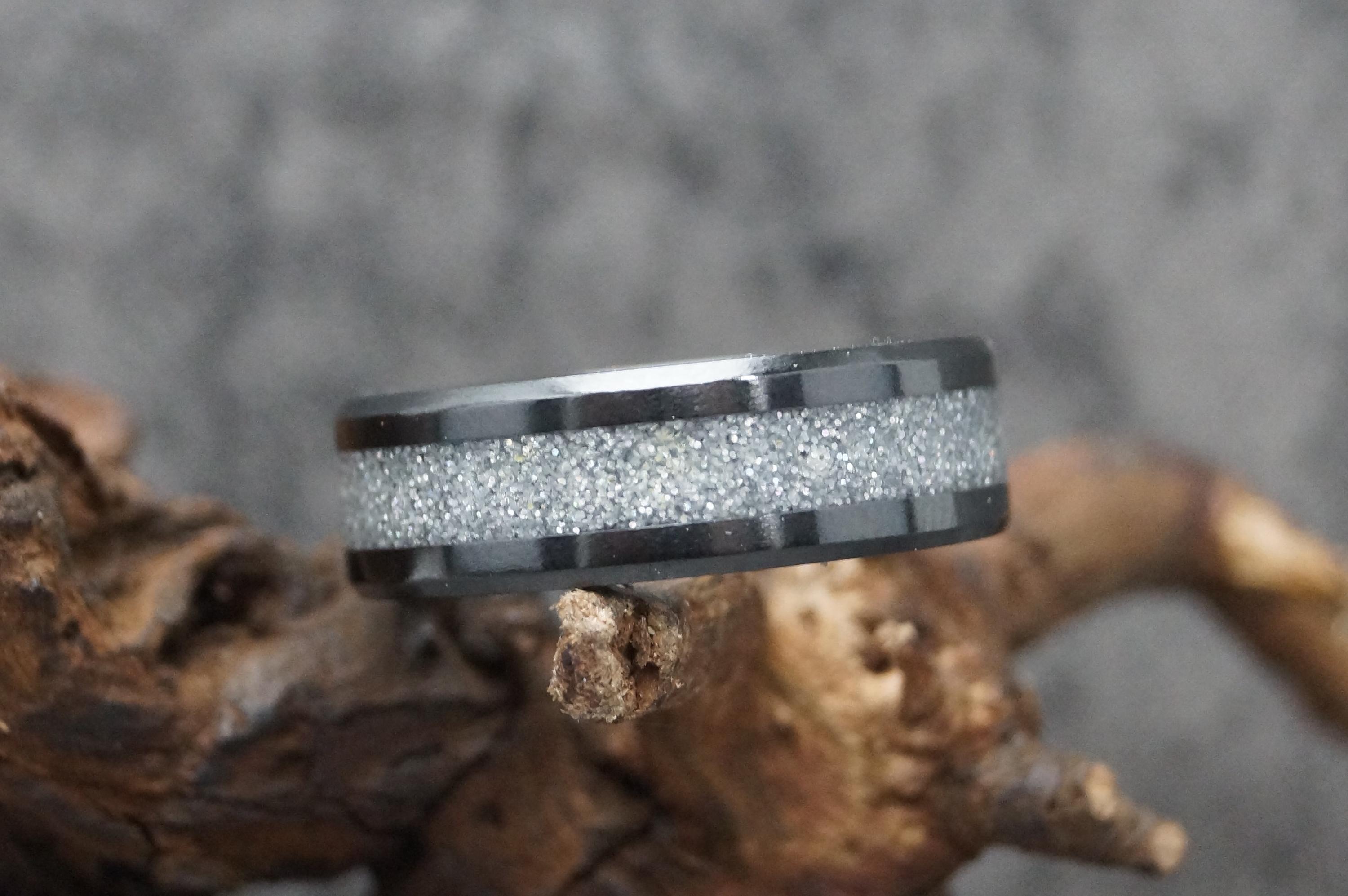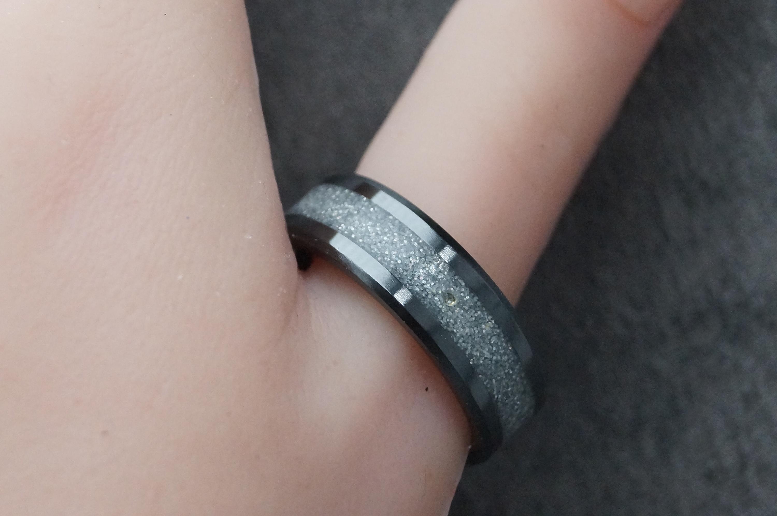 Pet Ashes Ring Pet Hair Ring with Silver Eco-Glitter Black Ceramic Ring