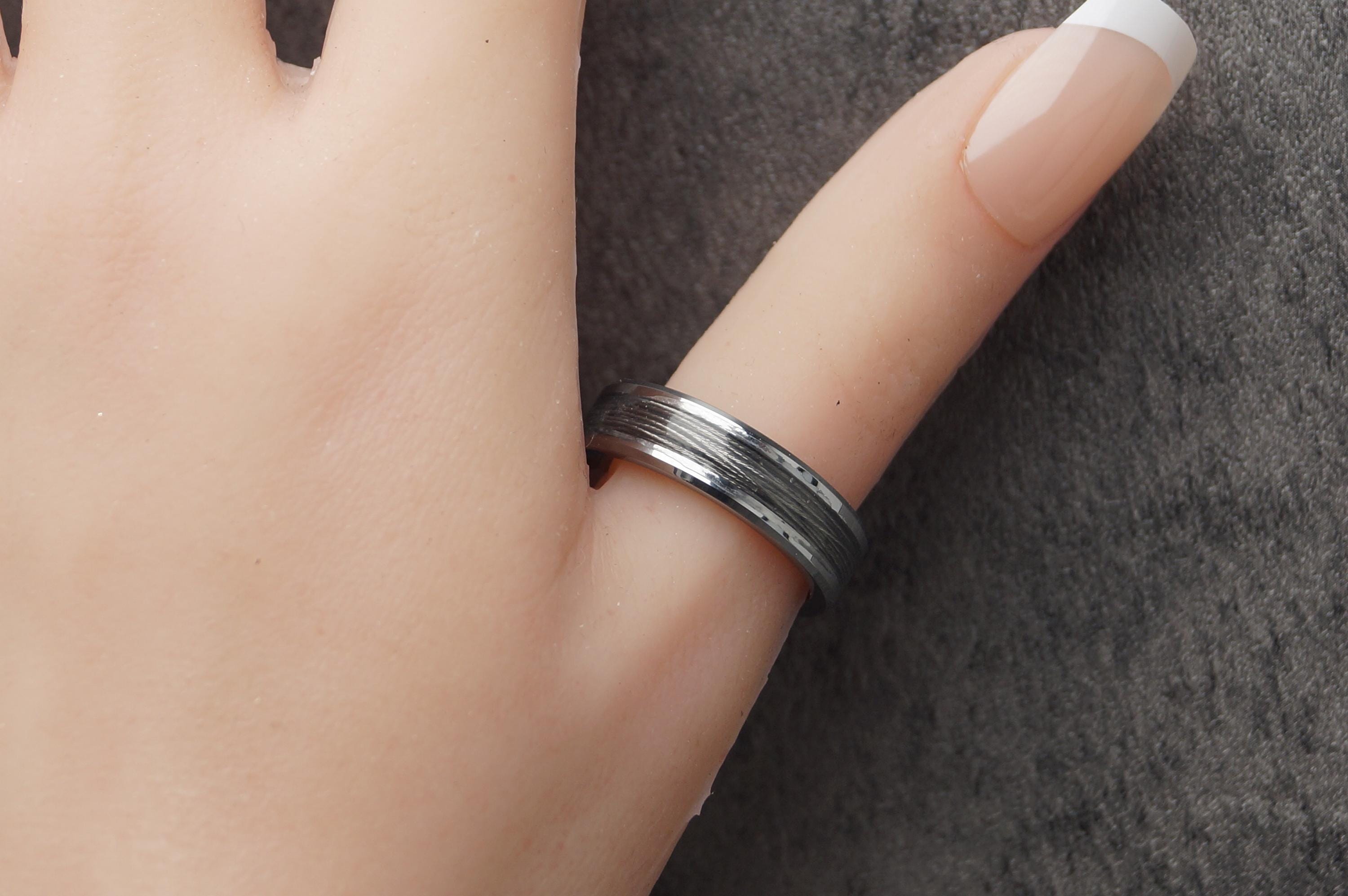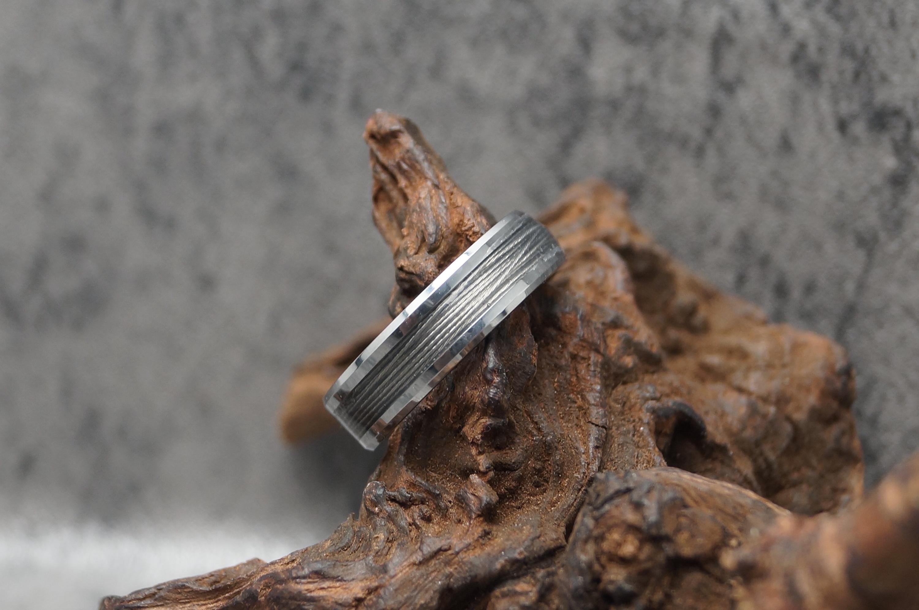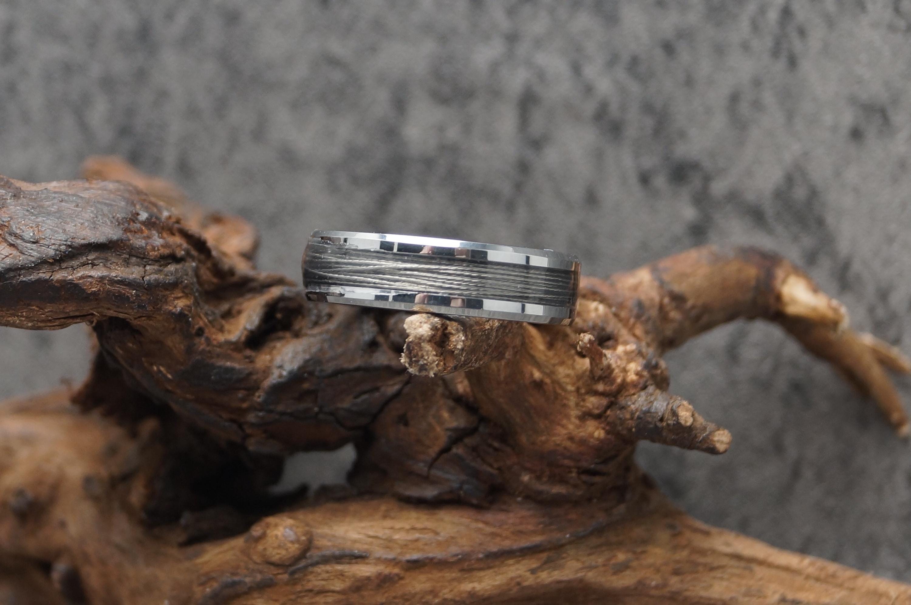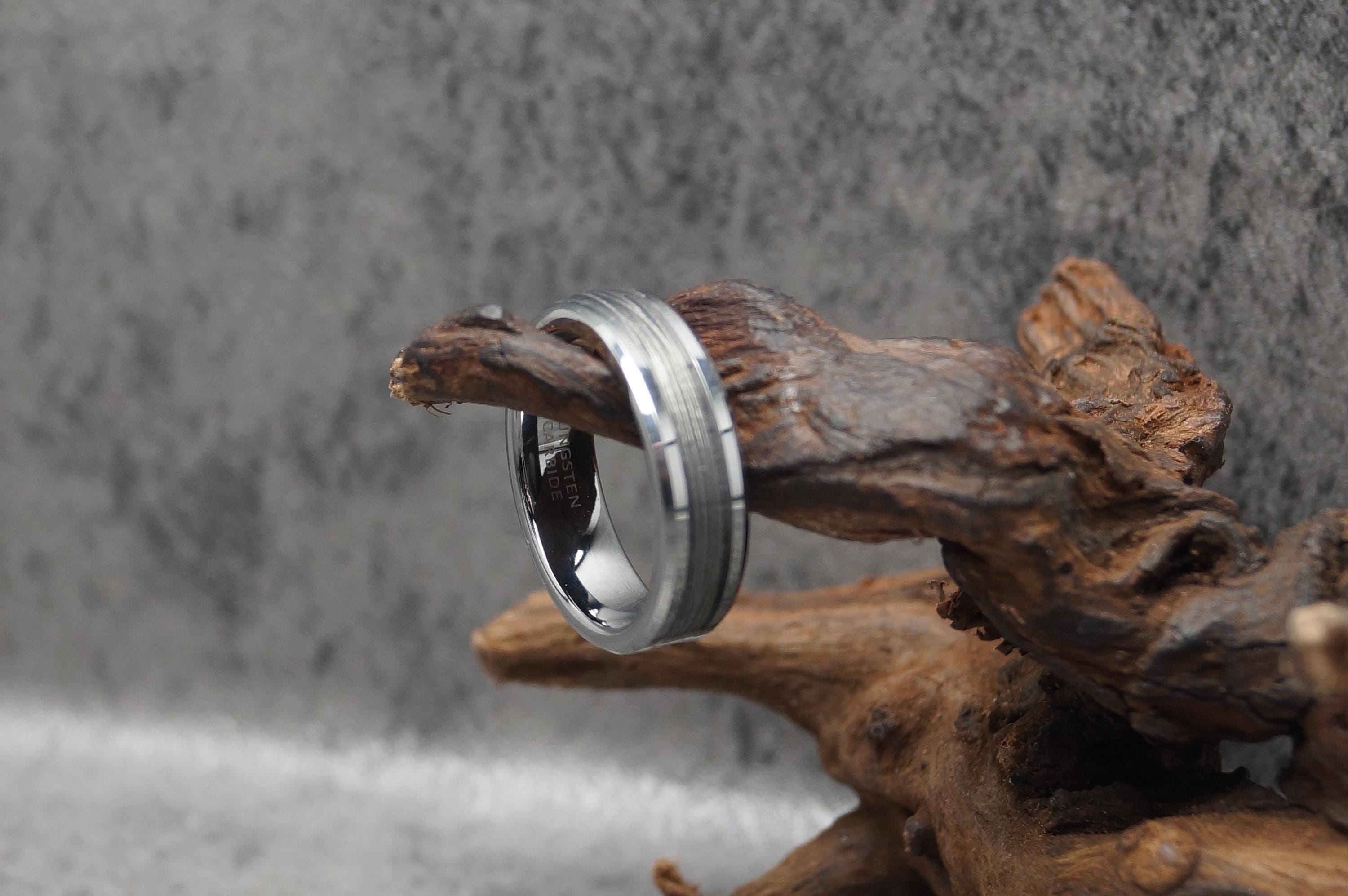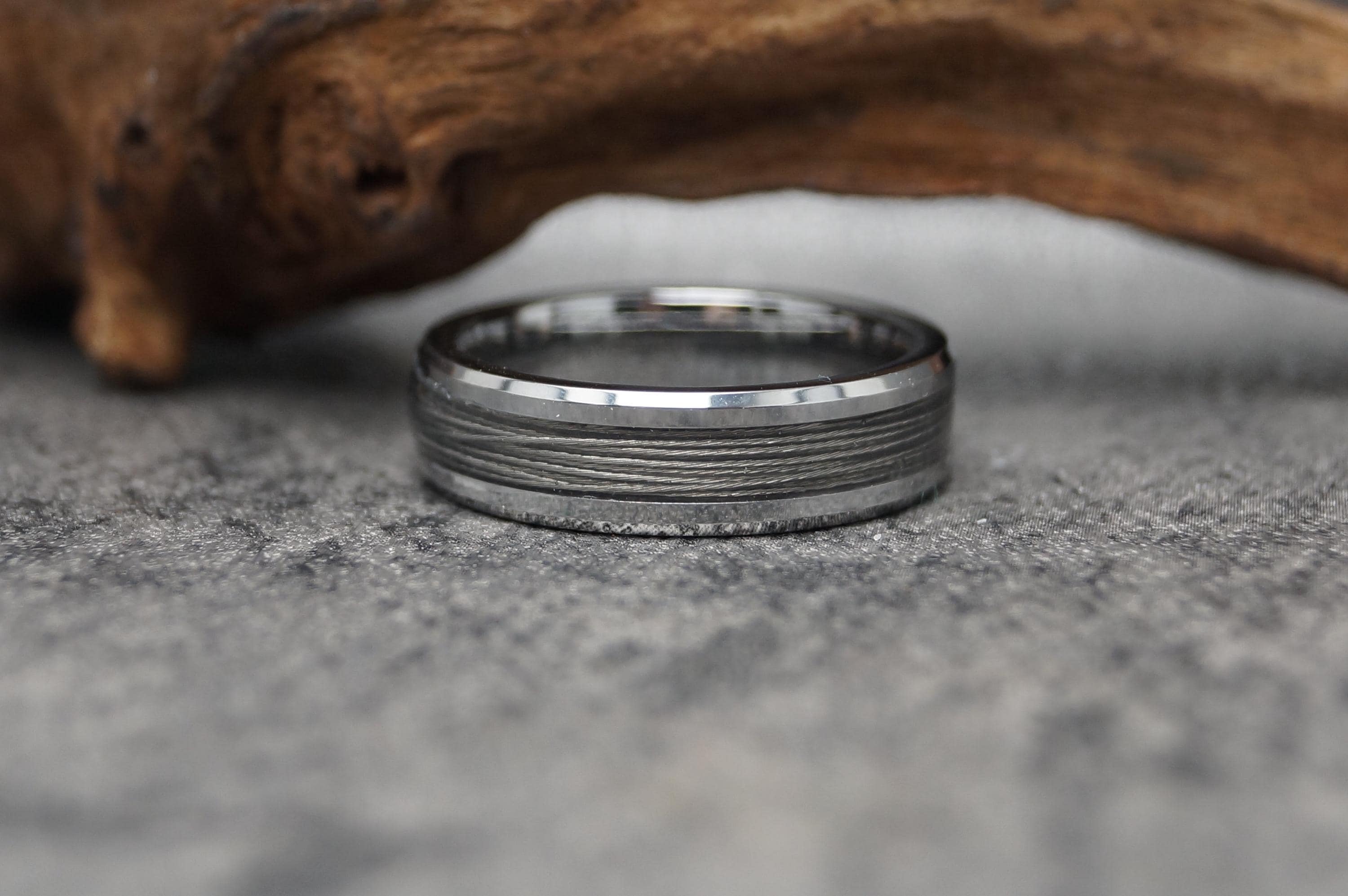 Silver Fishing Line Inlay Tungsten Ring - Available 4 mm, 6 mm or 8 mm Wide Ring