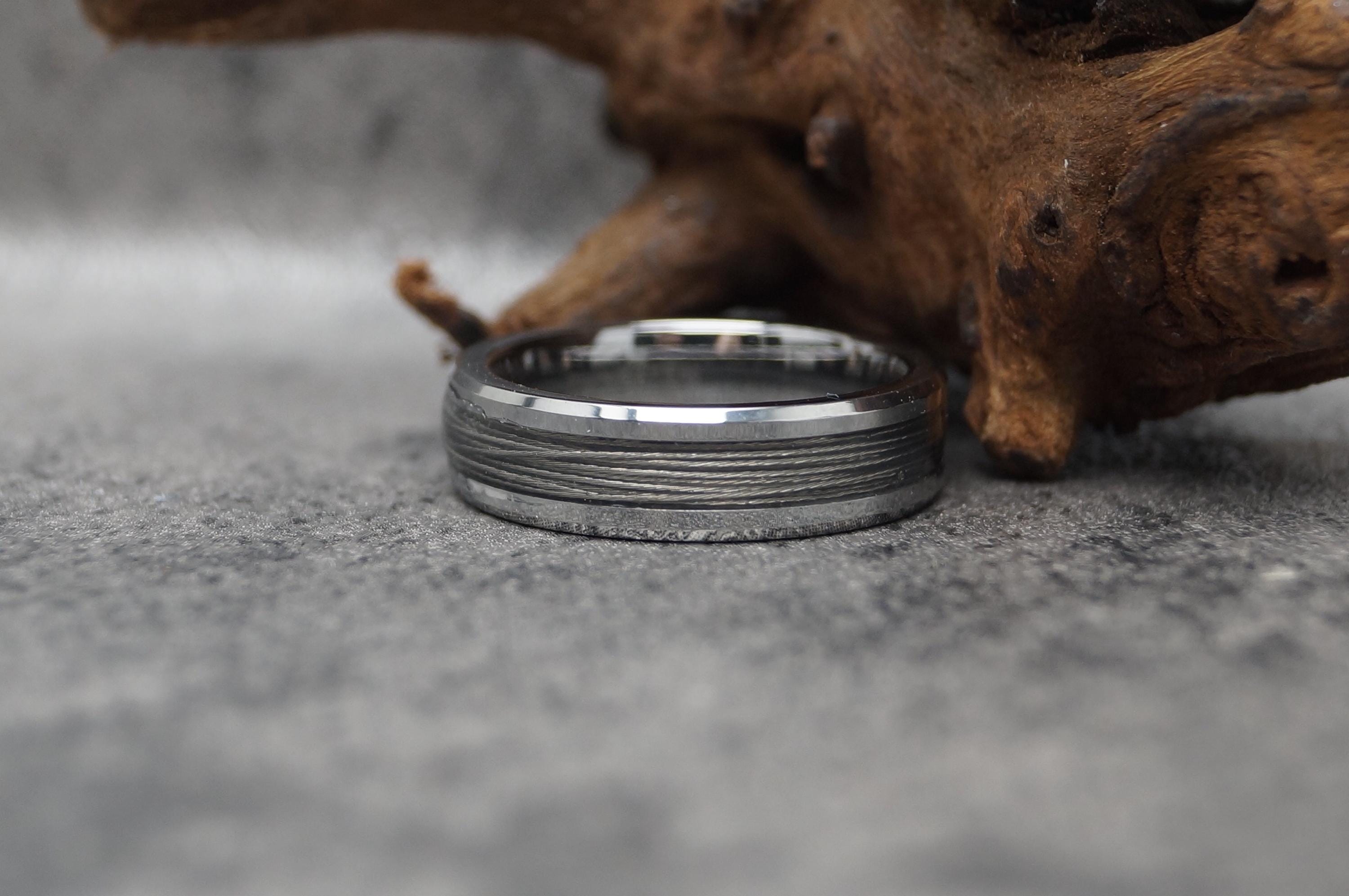 This genuine Tungsten Carbide ring is inlaid with genuine Fishing Line - Silver