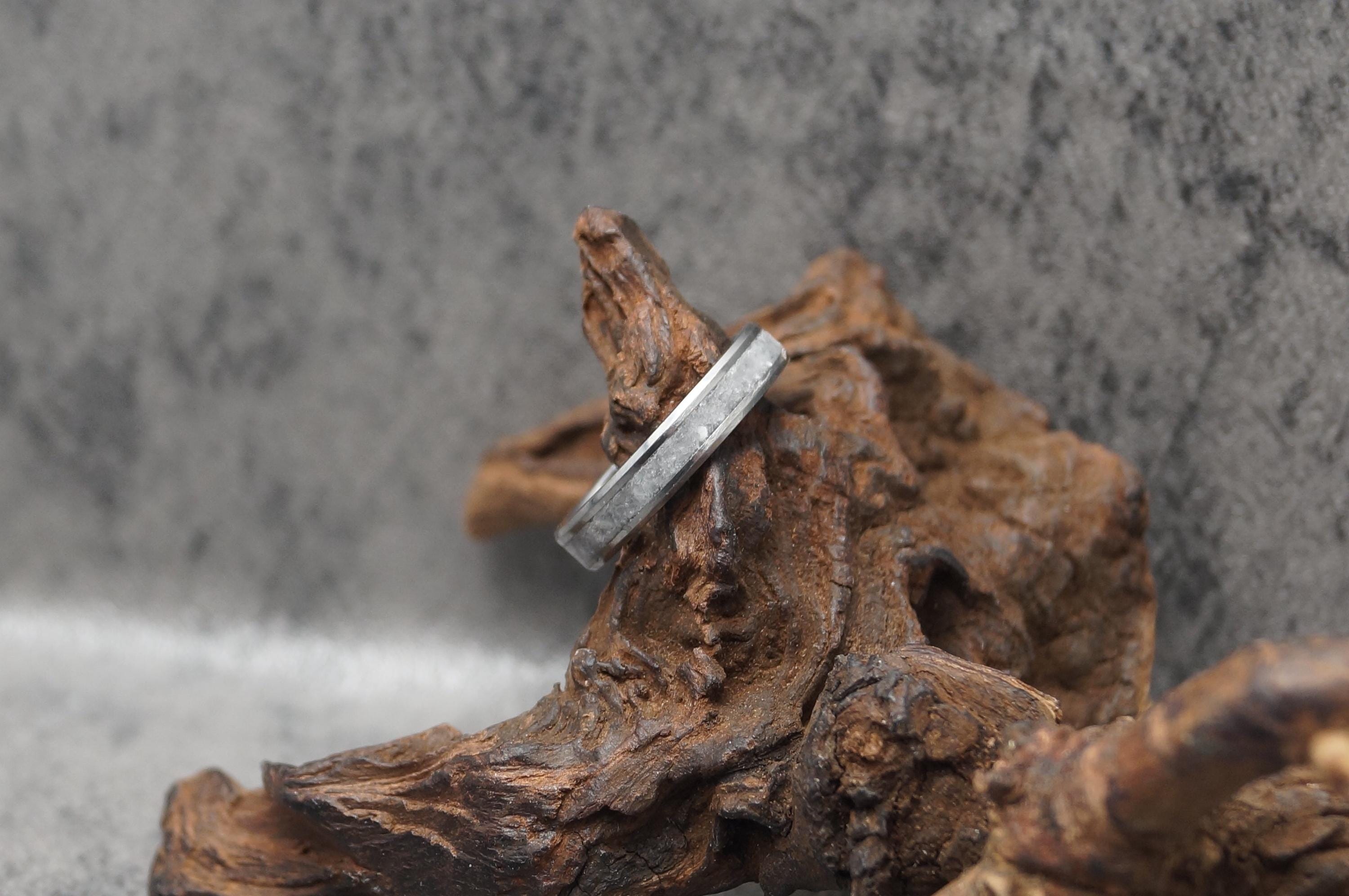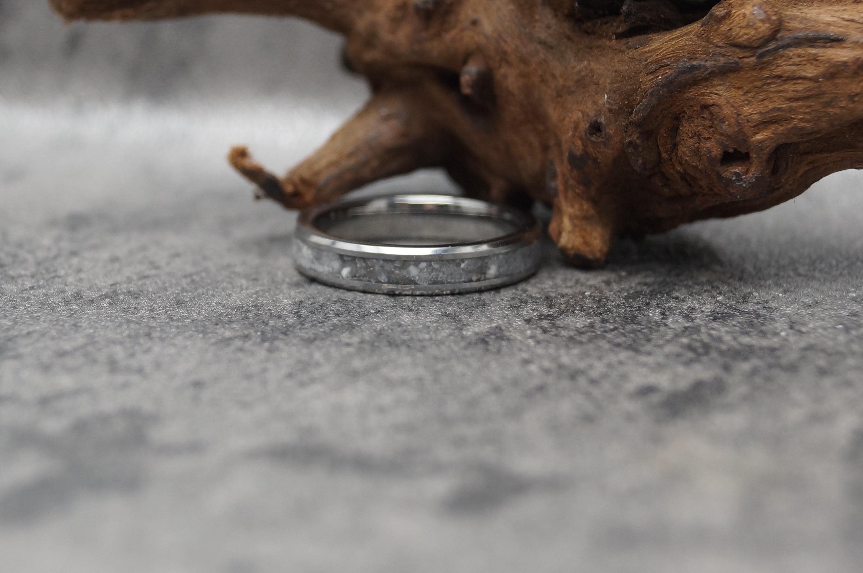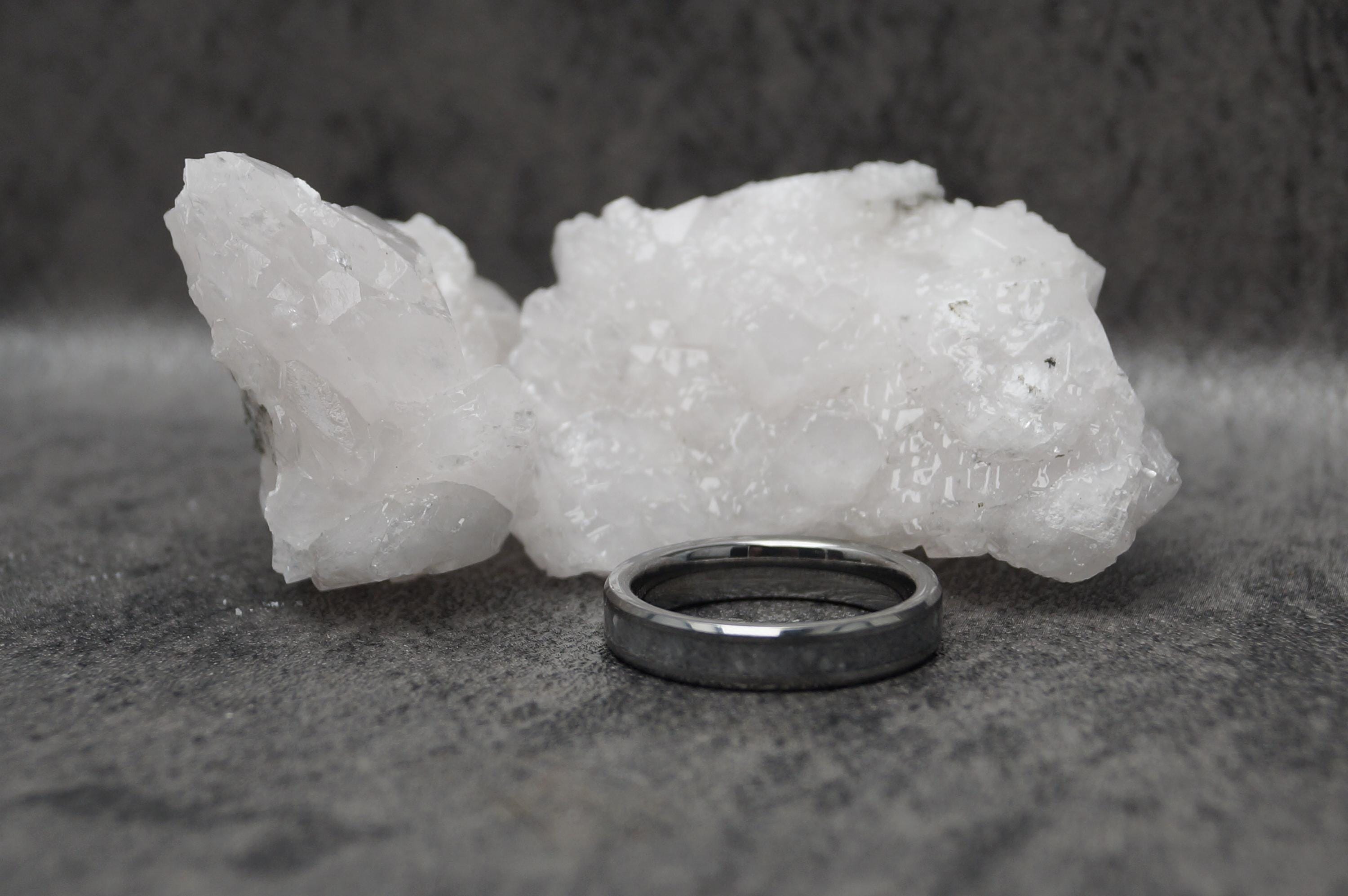 This genuine Tungsten Carbide ring is inlaid with genuine Calcite