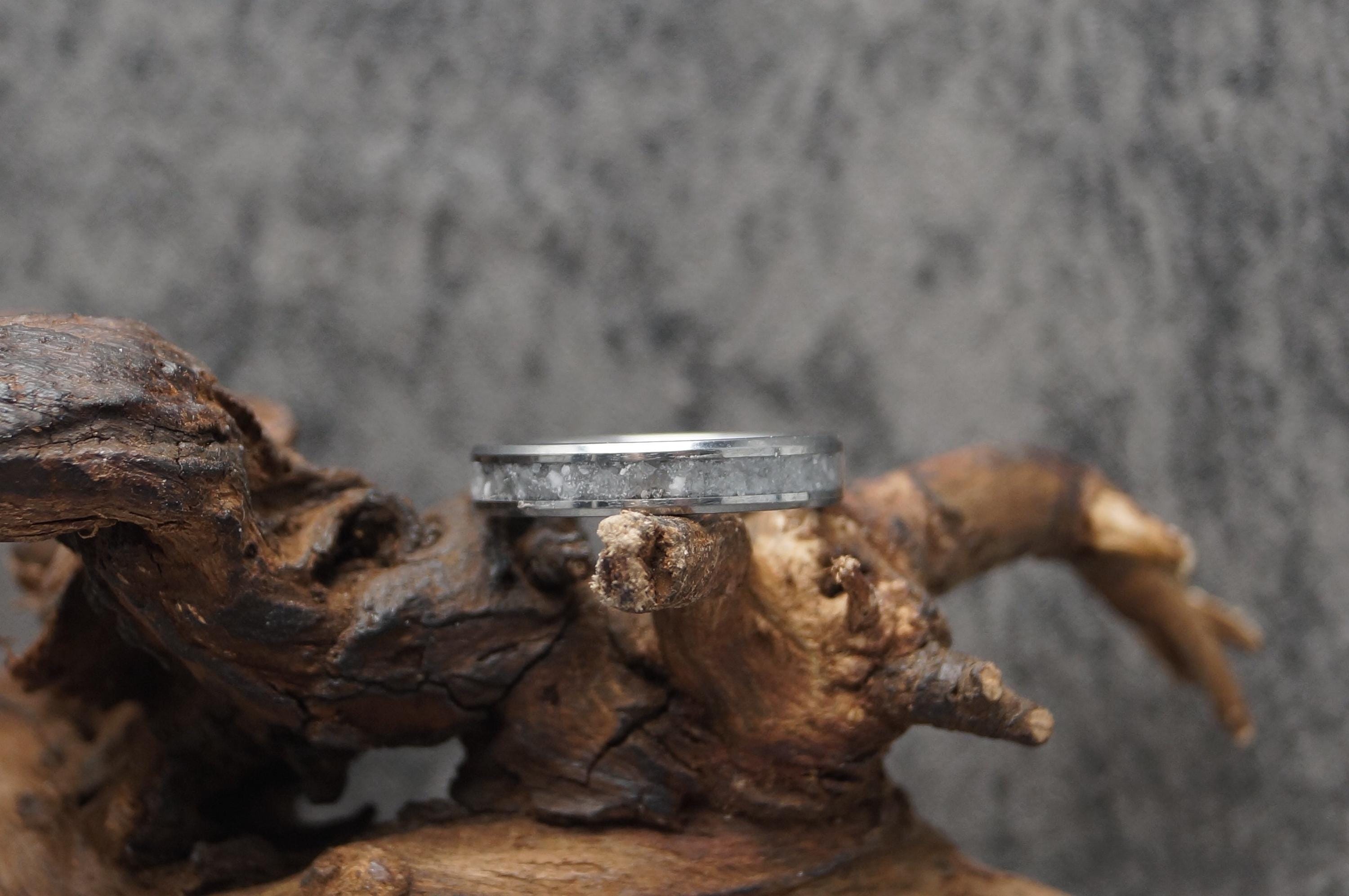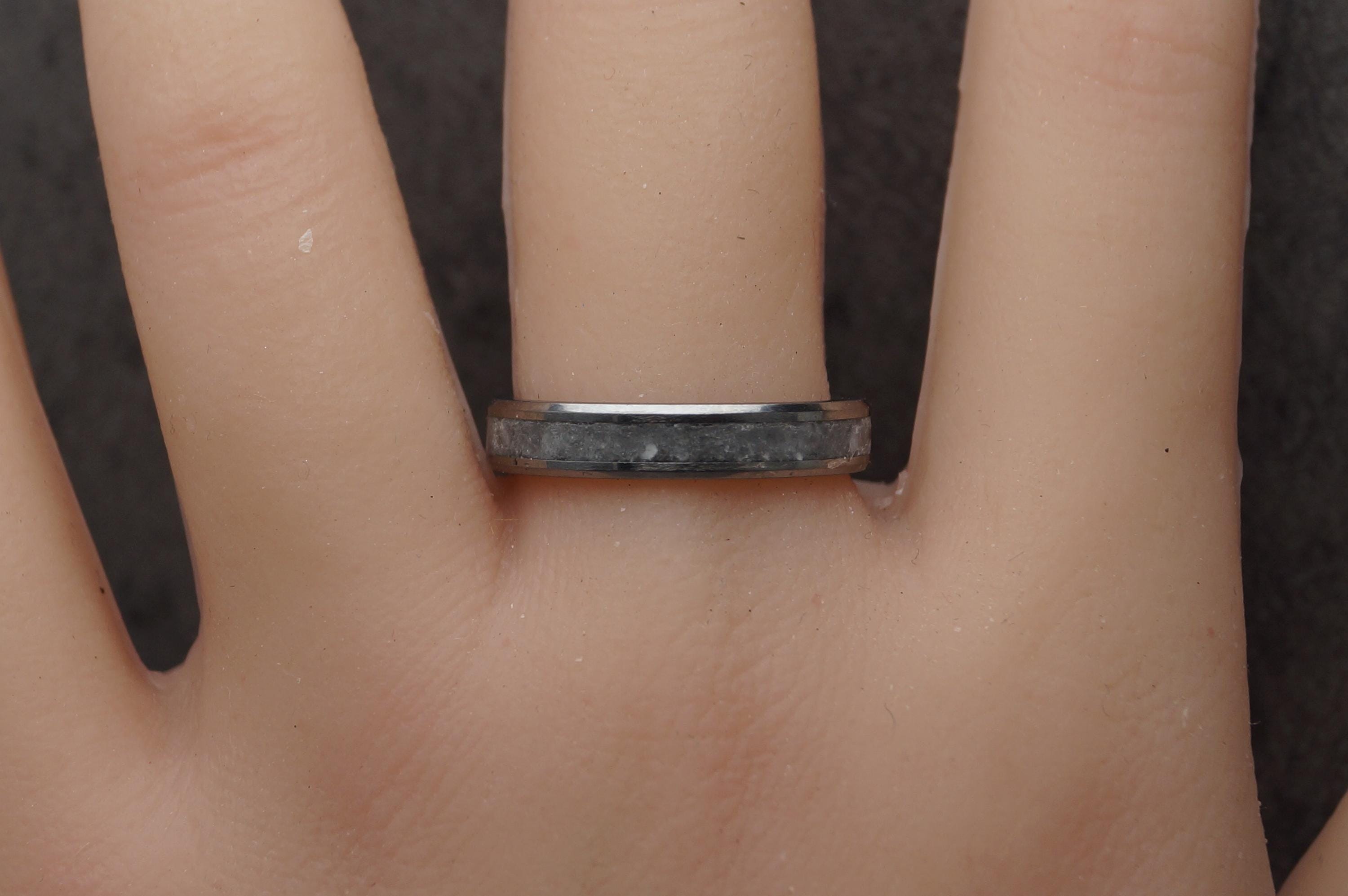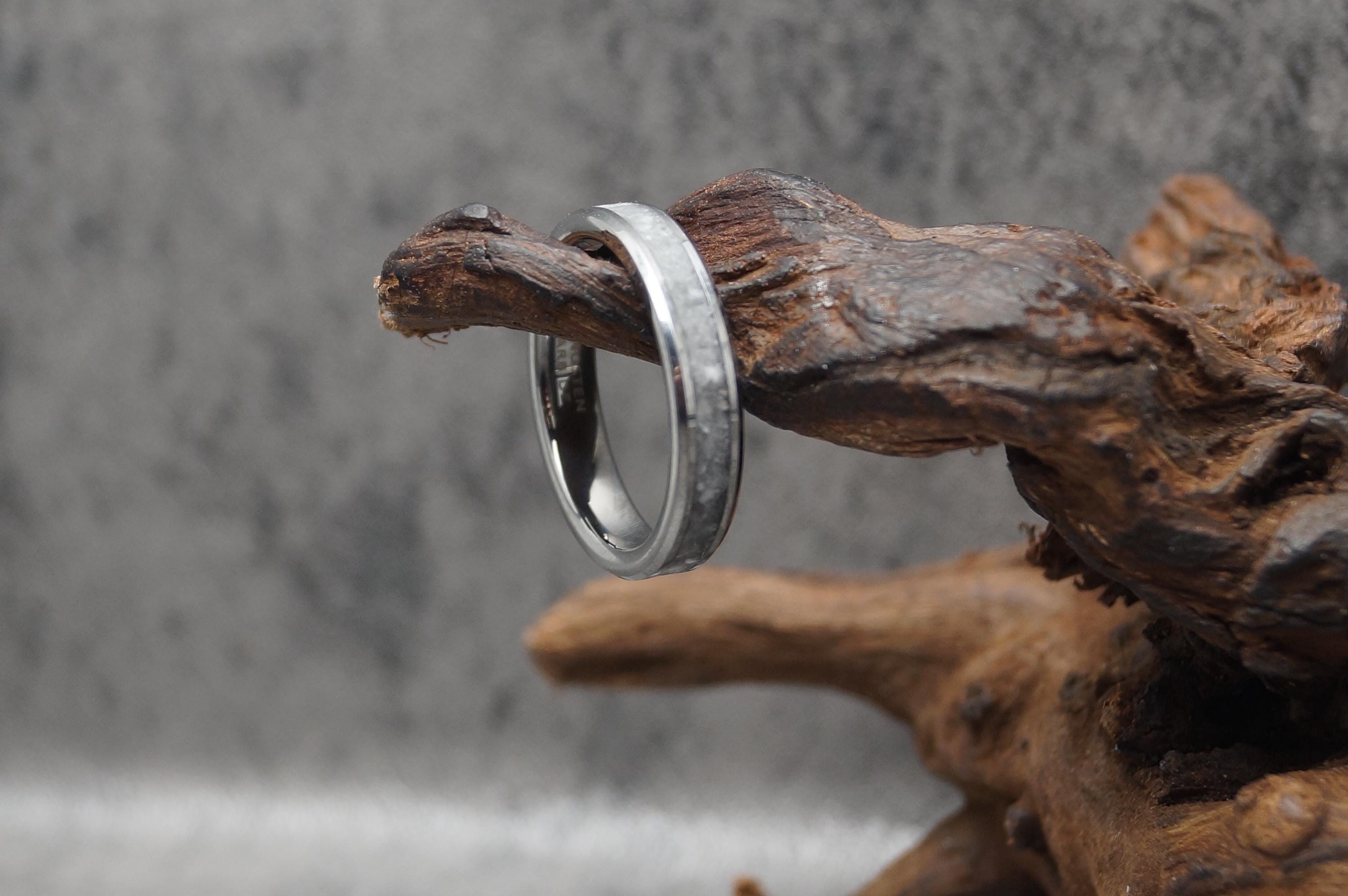 This genuine Tungsten Carbide ring is inlaid with genuine Calcite