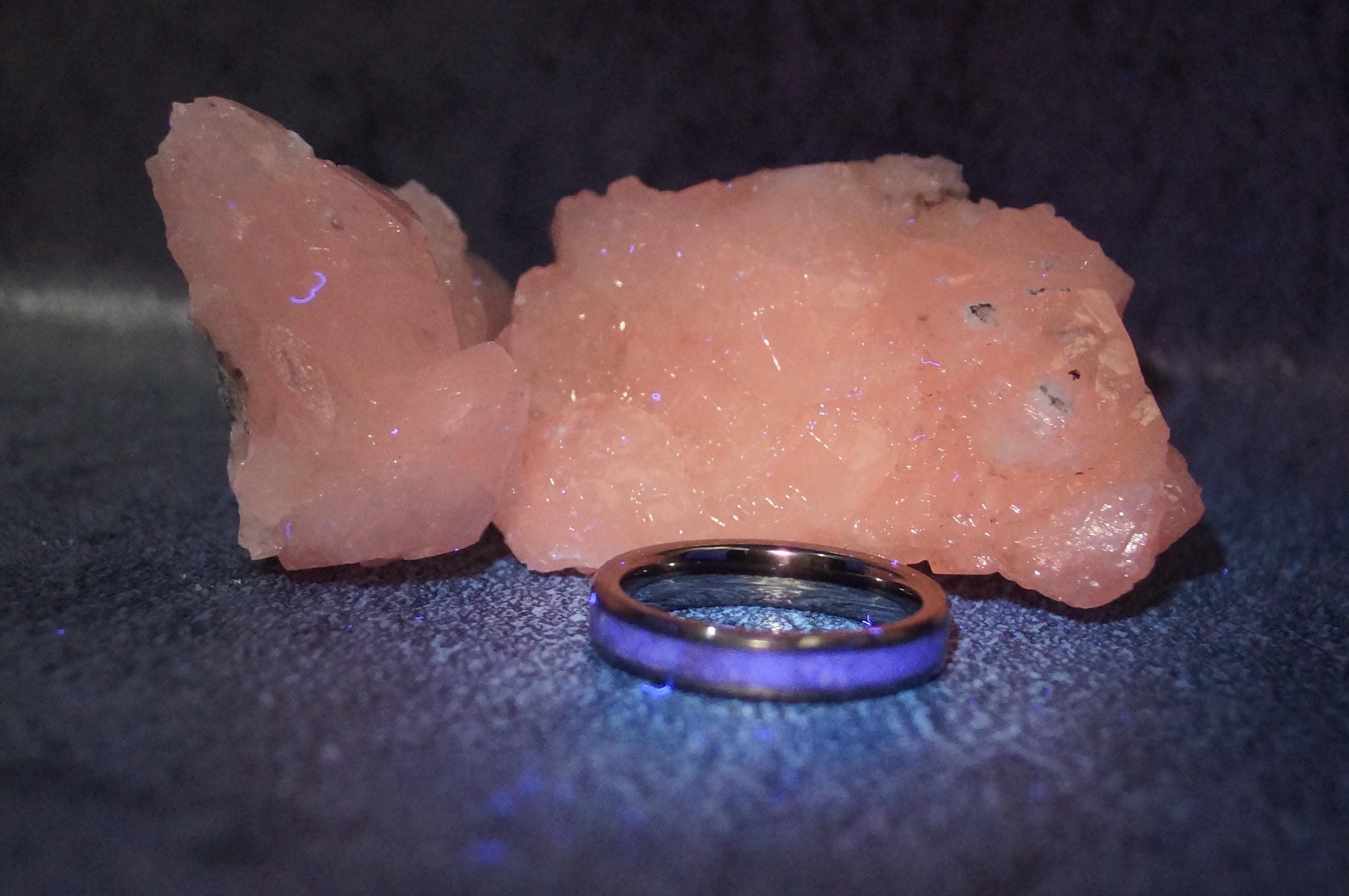 Calcite Inlay Tungsten Ring - UV glow Pink ring - Available 4 mm, 6 mm or 8 mm Wide Ring