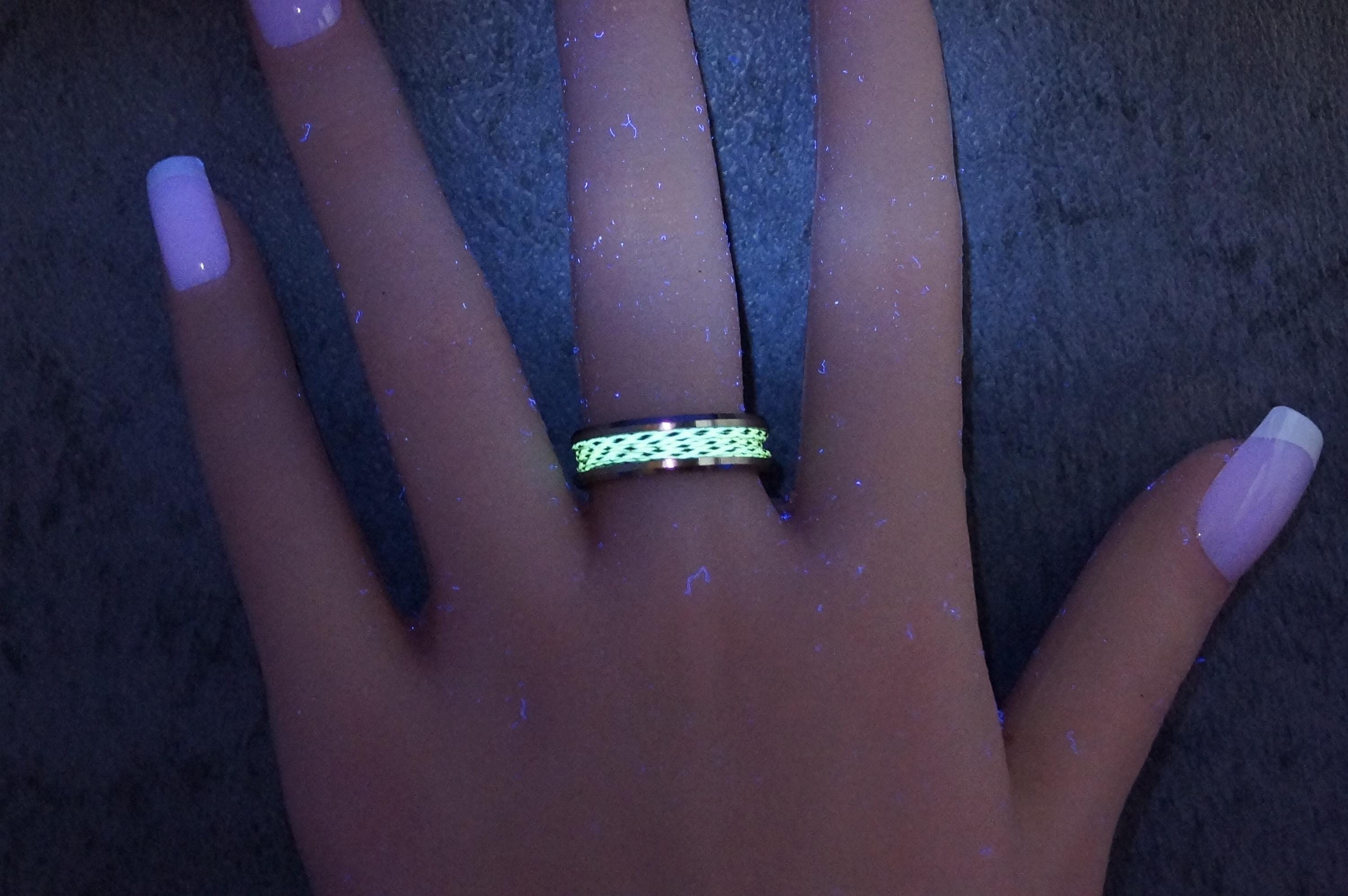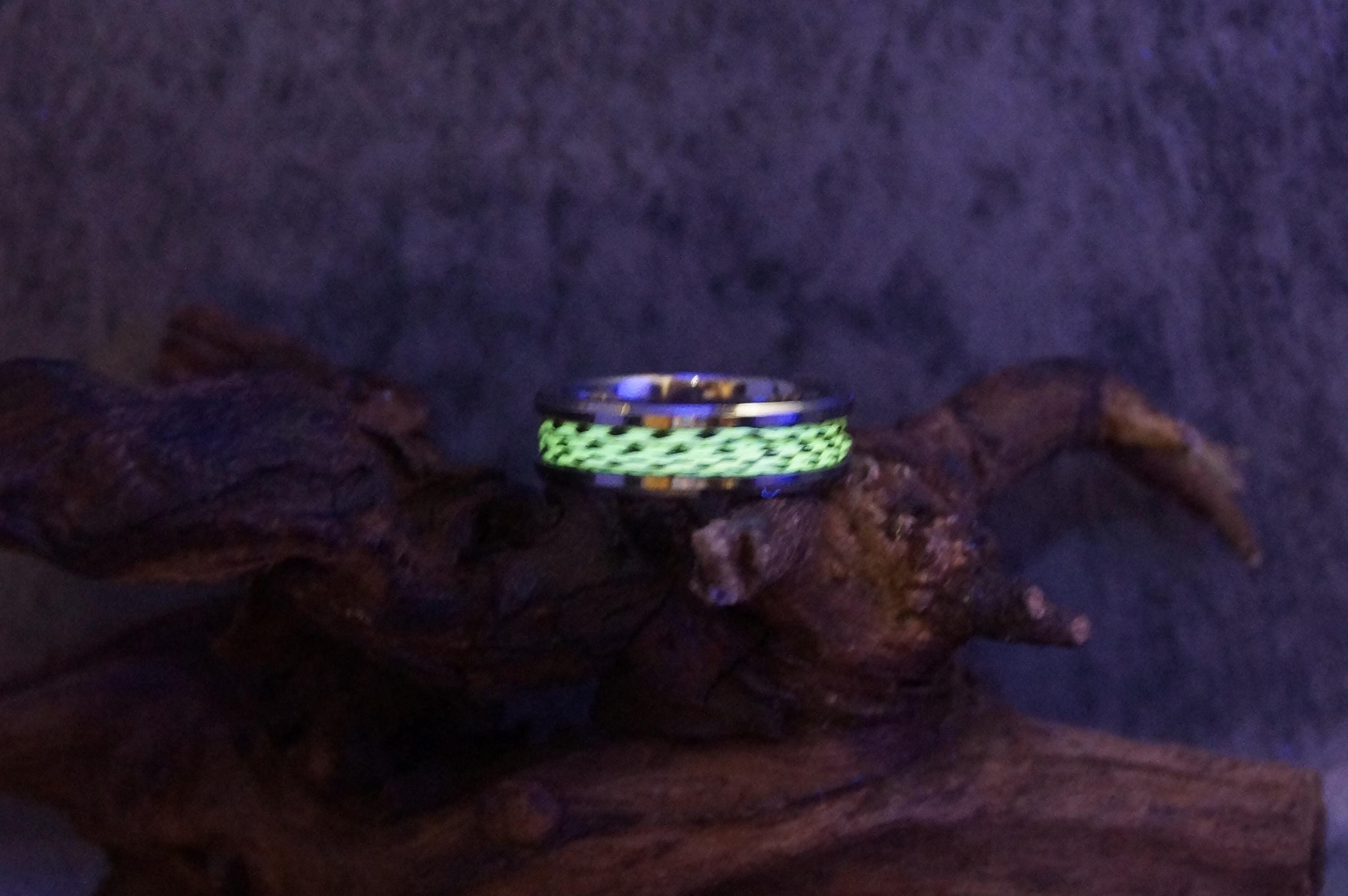 Green Spider-Line Fishing Line Inlay Tungsten Ring - UV Glow Ring - Available 4mm, 6mm or 8mm wide