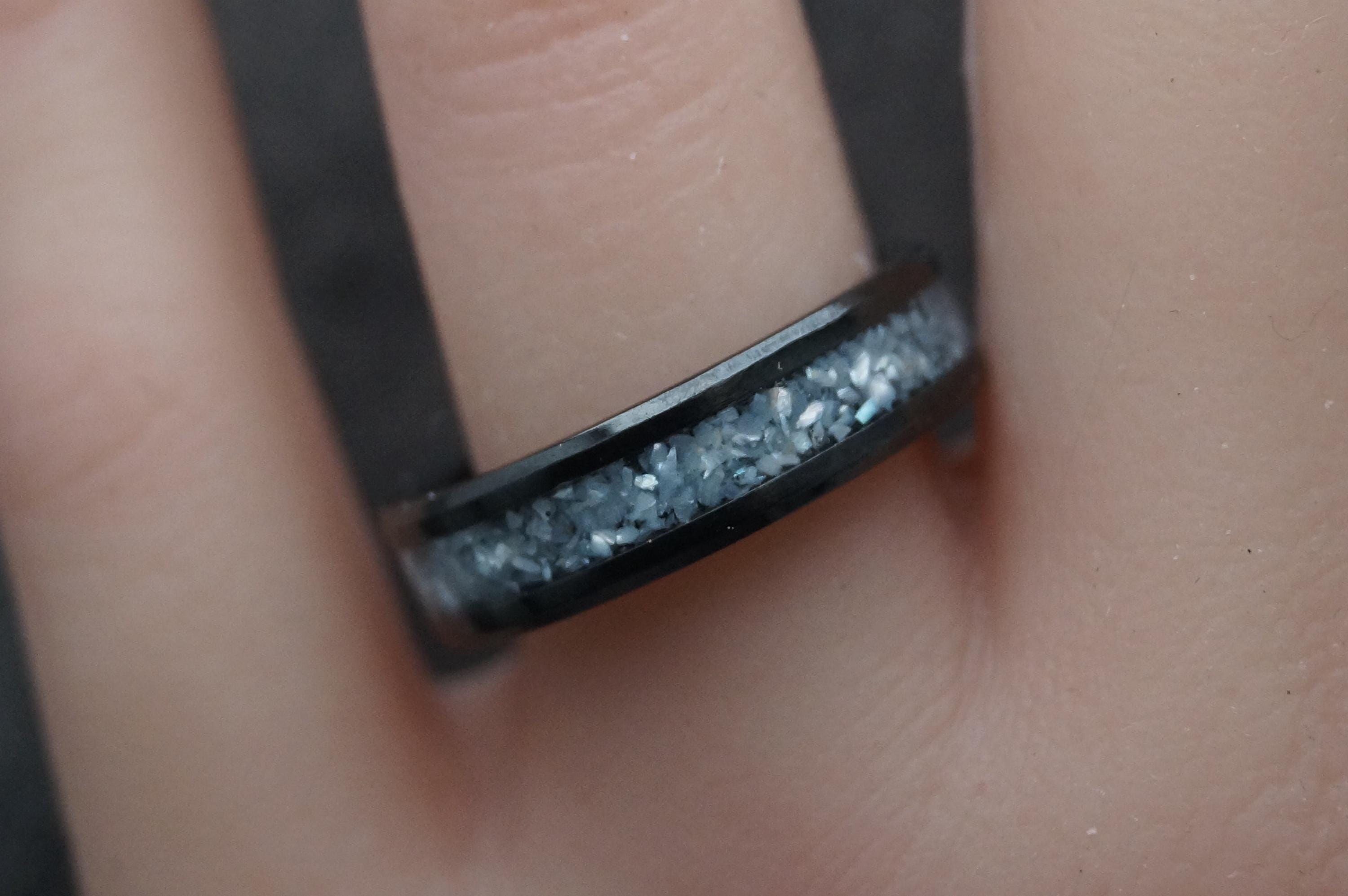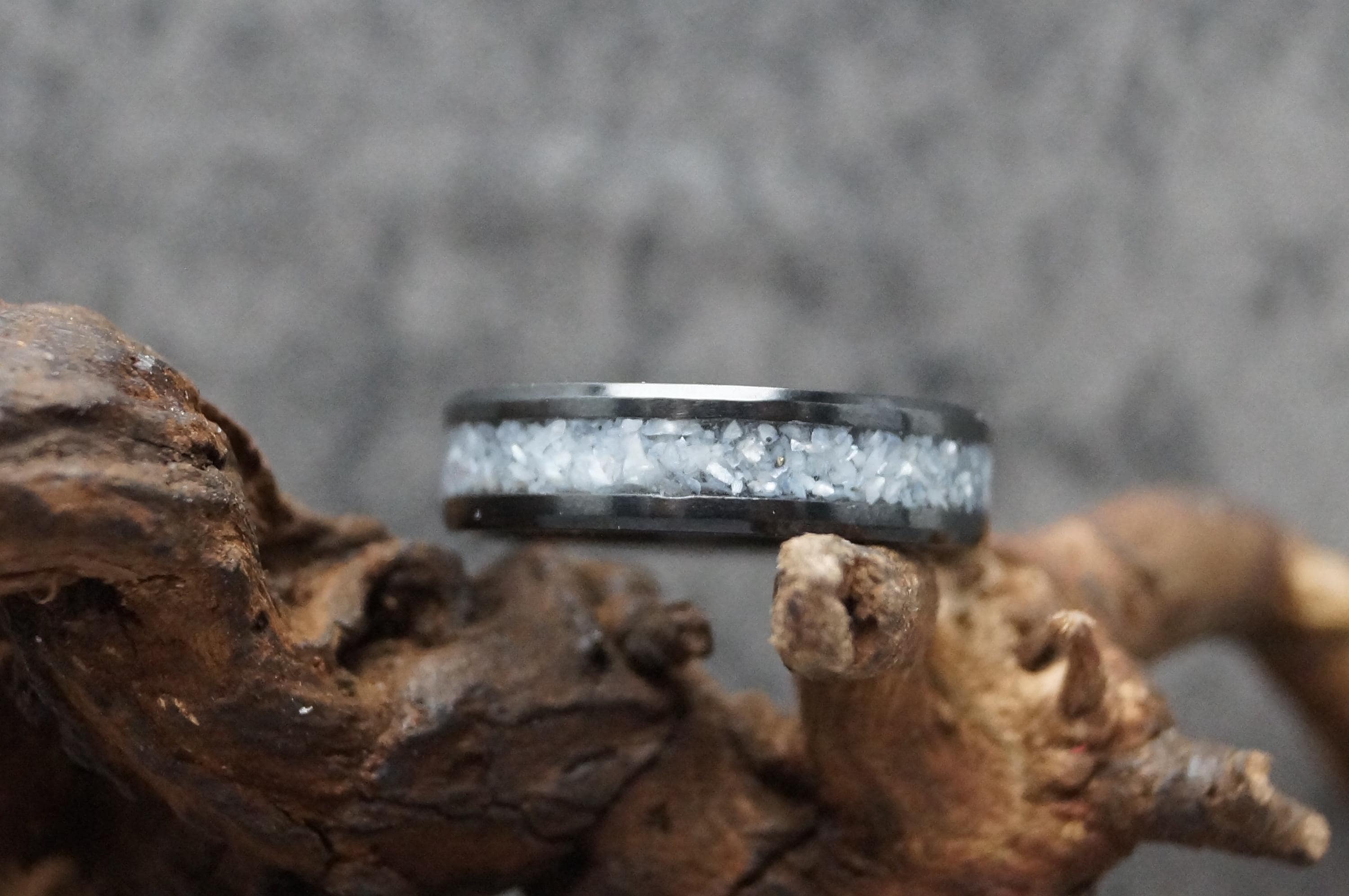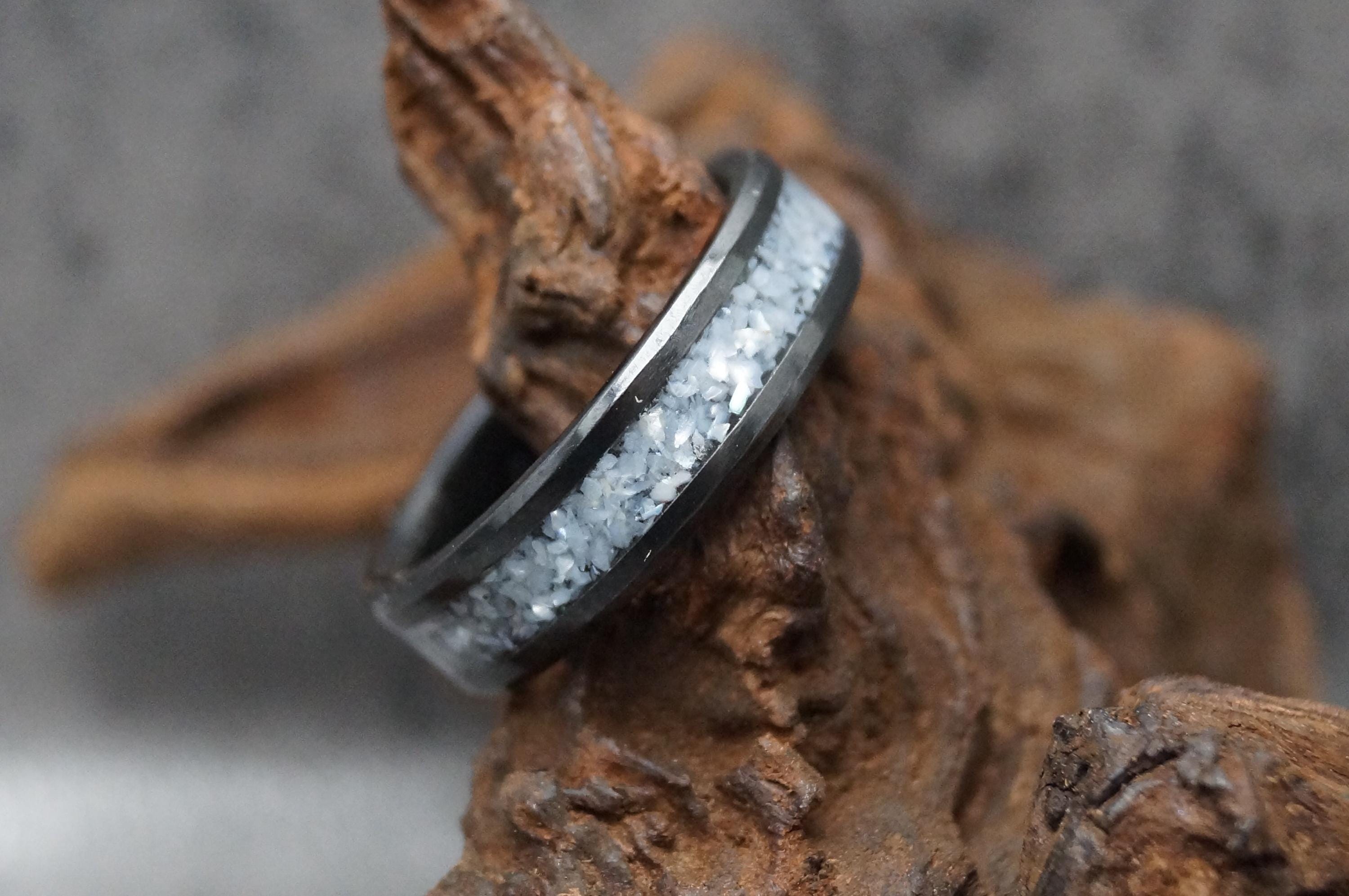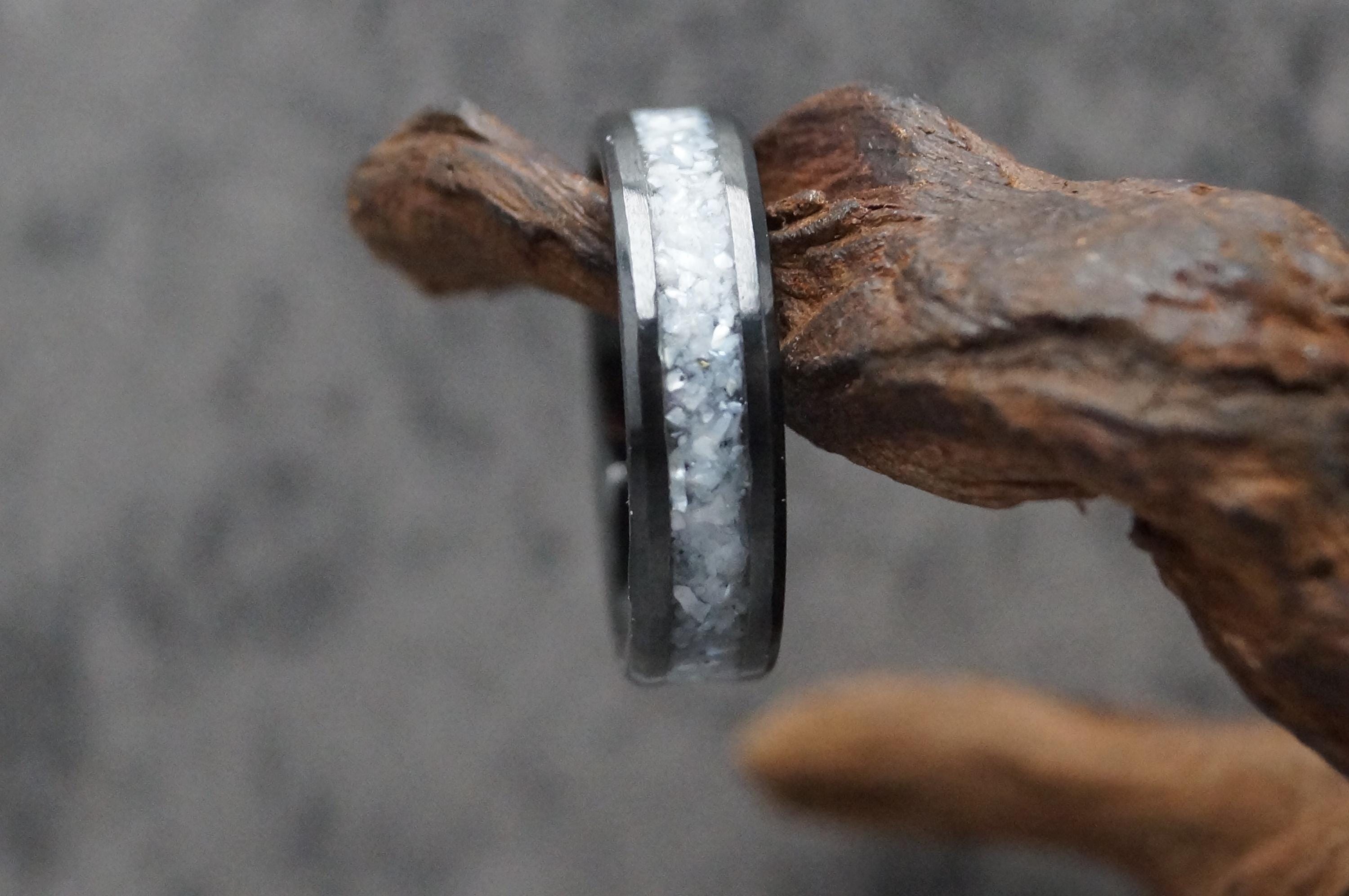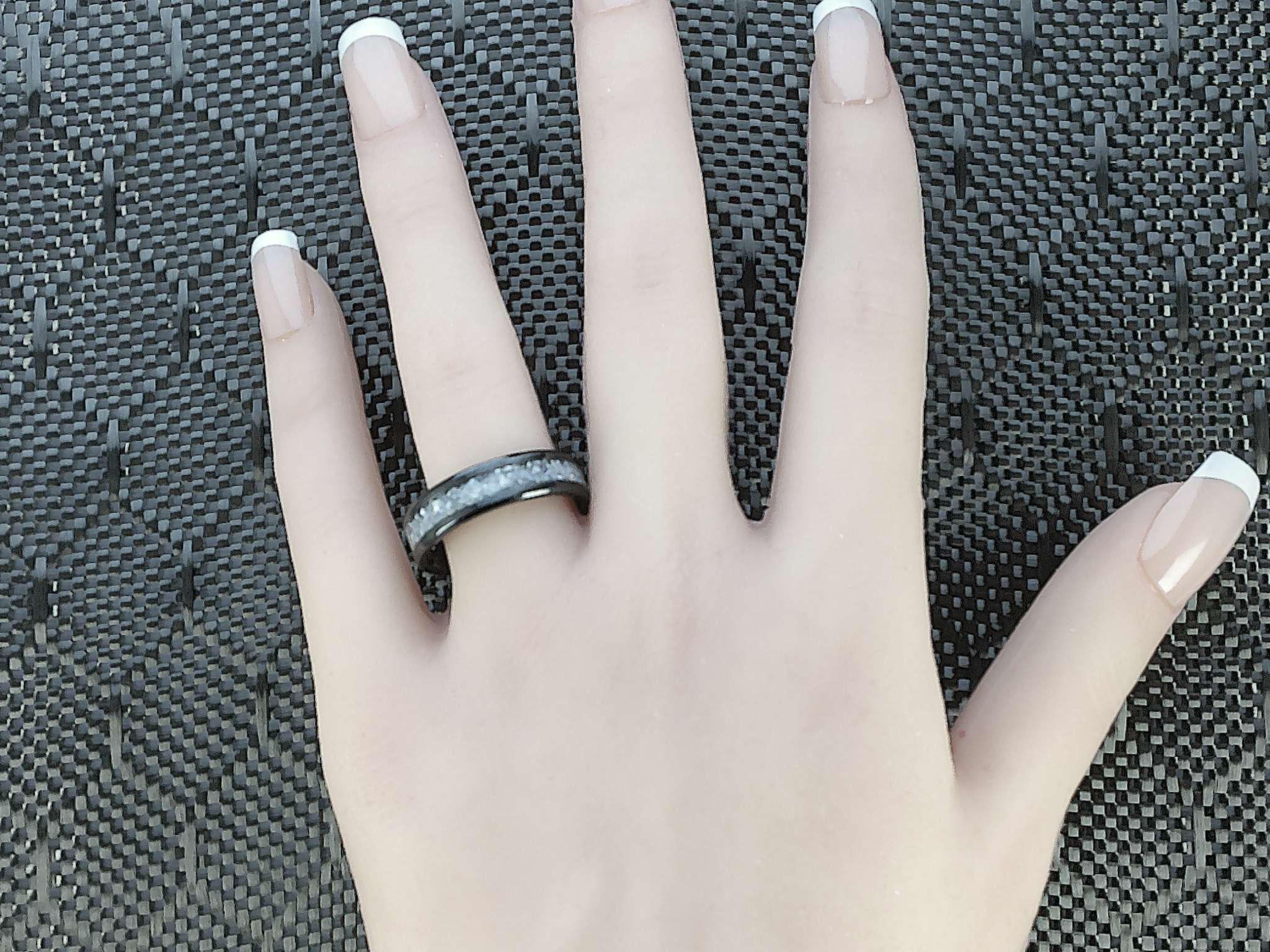 Pearl Ring - 100% Real Natural Freshwater Cultured White Pearls Inlaid Black Ceramic Band 4 mm, 6 mm or 8 mm wide ring.