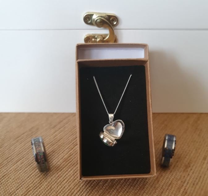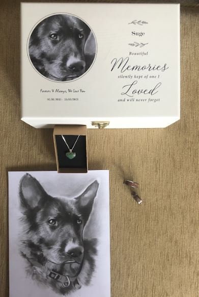 Pet Memorial Bundle - 2 x Rings + 1 x Sterling Silver Heart locket & Chain + 1 Custom Trinket Box + 1 x Pencil Drawing Portrait