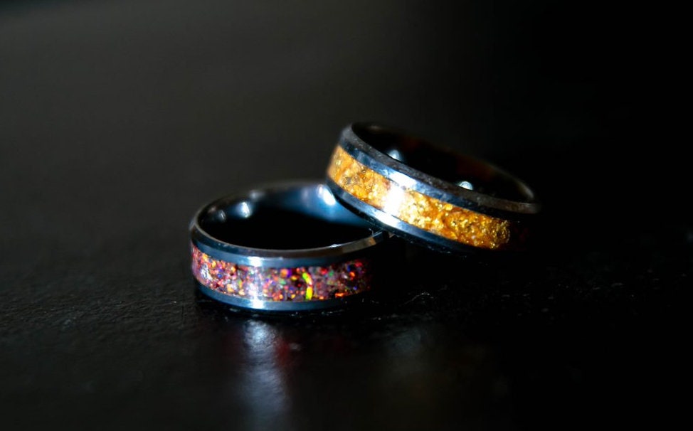 * 2 x Tungsten rings with pet ashes and or pet fur, choice of gemstone background colours, see link for ideas.
