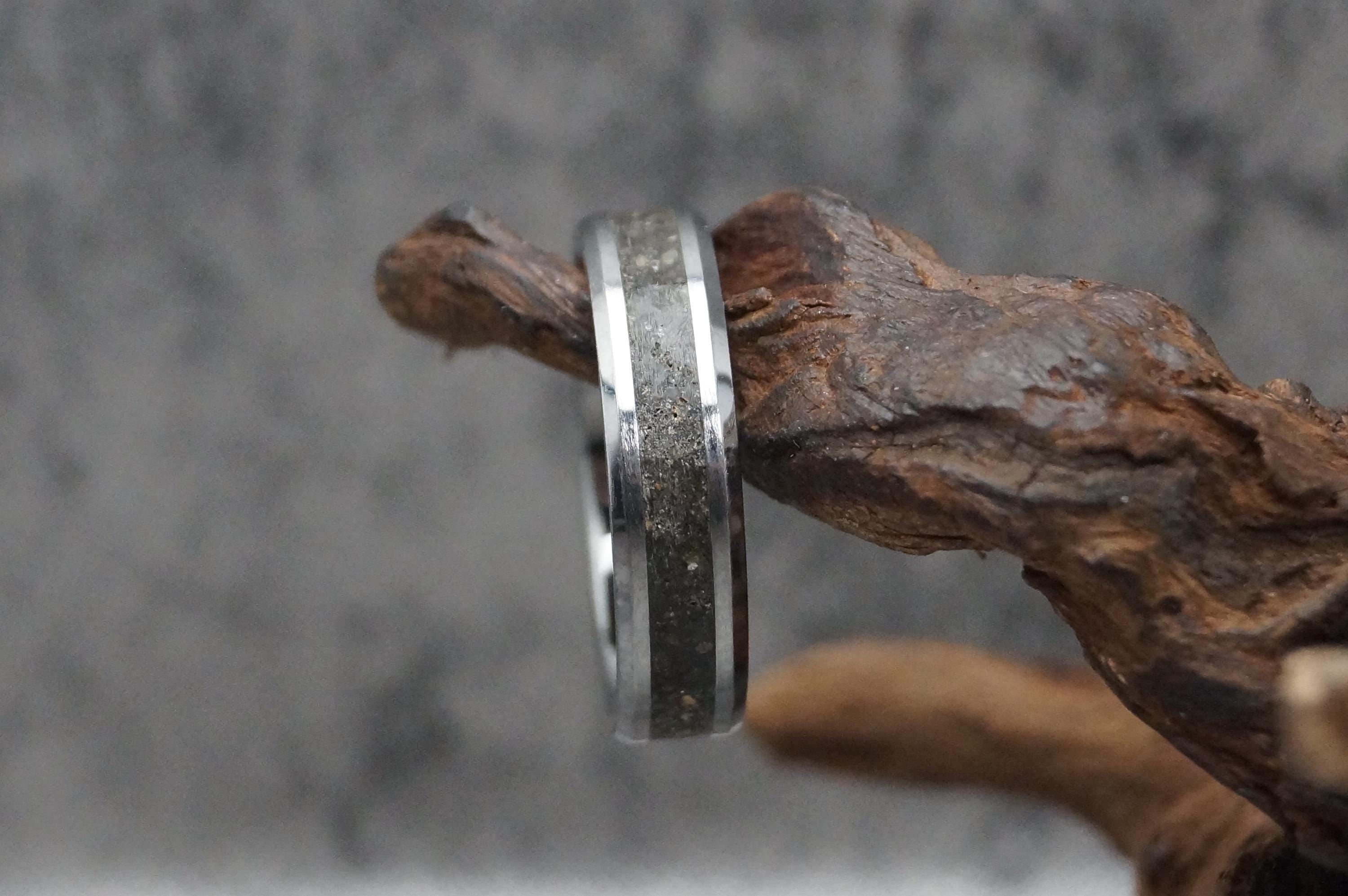 This genuine Tungsten Carbide ring inlaid with 100% Natural Earth Soil or send your own Soil for me to make your custom Earth ring.