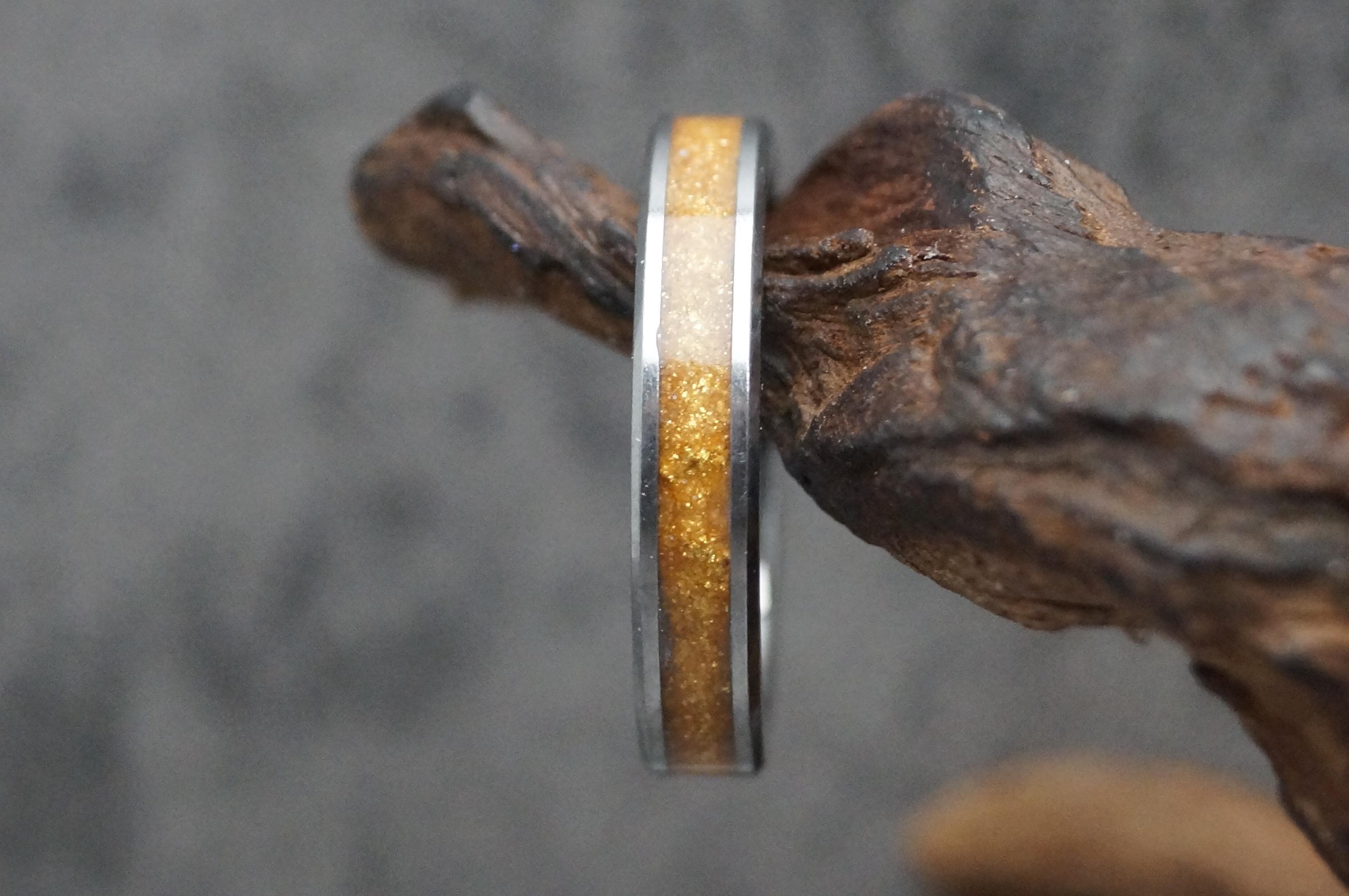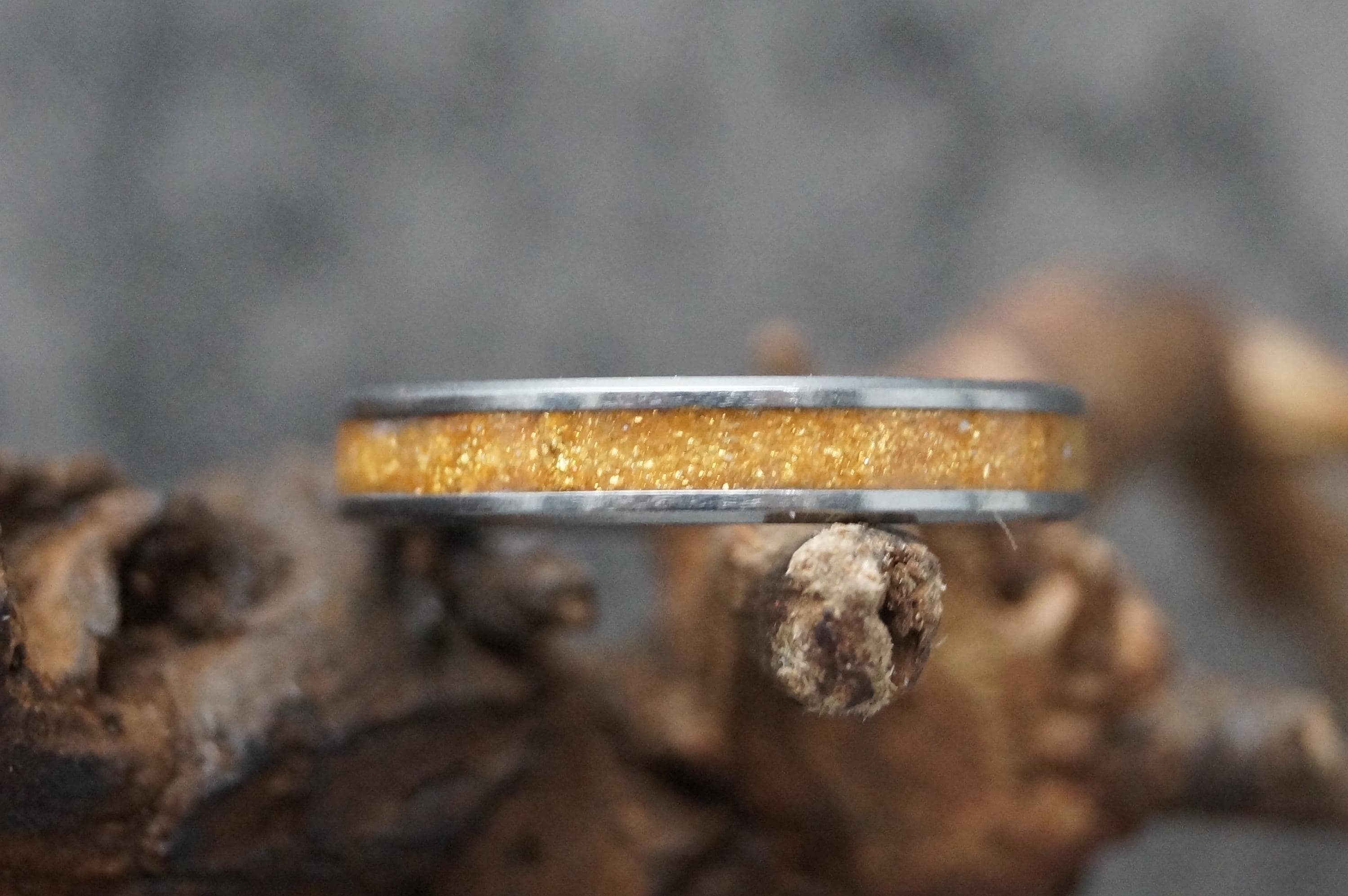 Genuine Tungsten Carbide ring inlaid with Gold Eco-Glitter with your pet hair / fur or pet ashes from your Dog, Cat (fur and or whiskers), Pony hair or Horse hair etc.