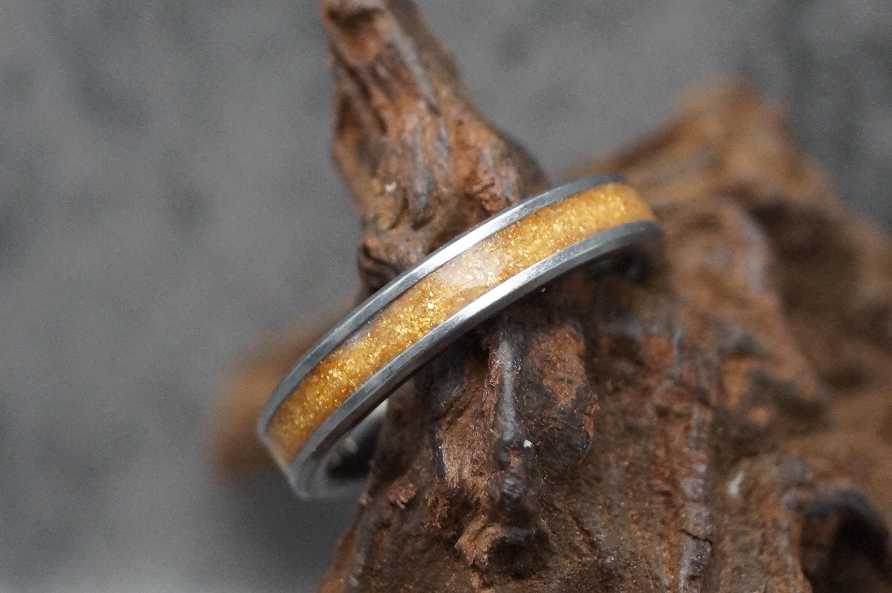Pet Memorial Ring with Gold Eco-Glitter Inlaid With Pet ashes, Pet hair / fur in a Tungsten Band - 4 mm, 6 mm or 8 mm wide ring - Pet Memorial and Keepsake Jewellery