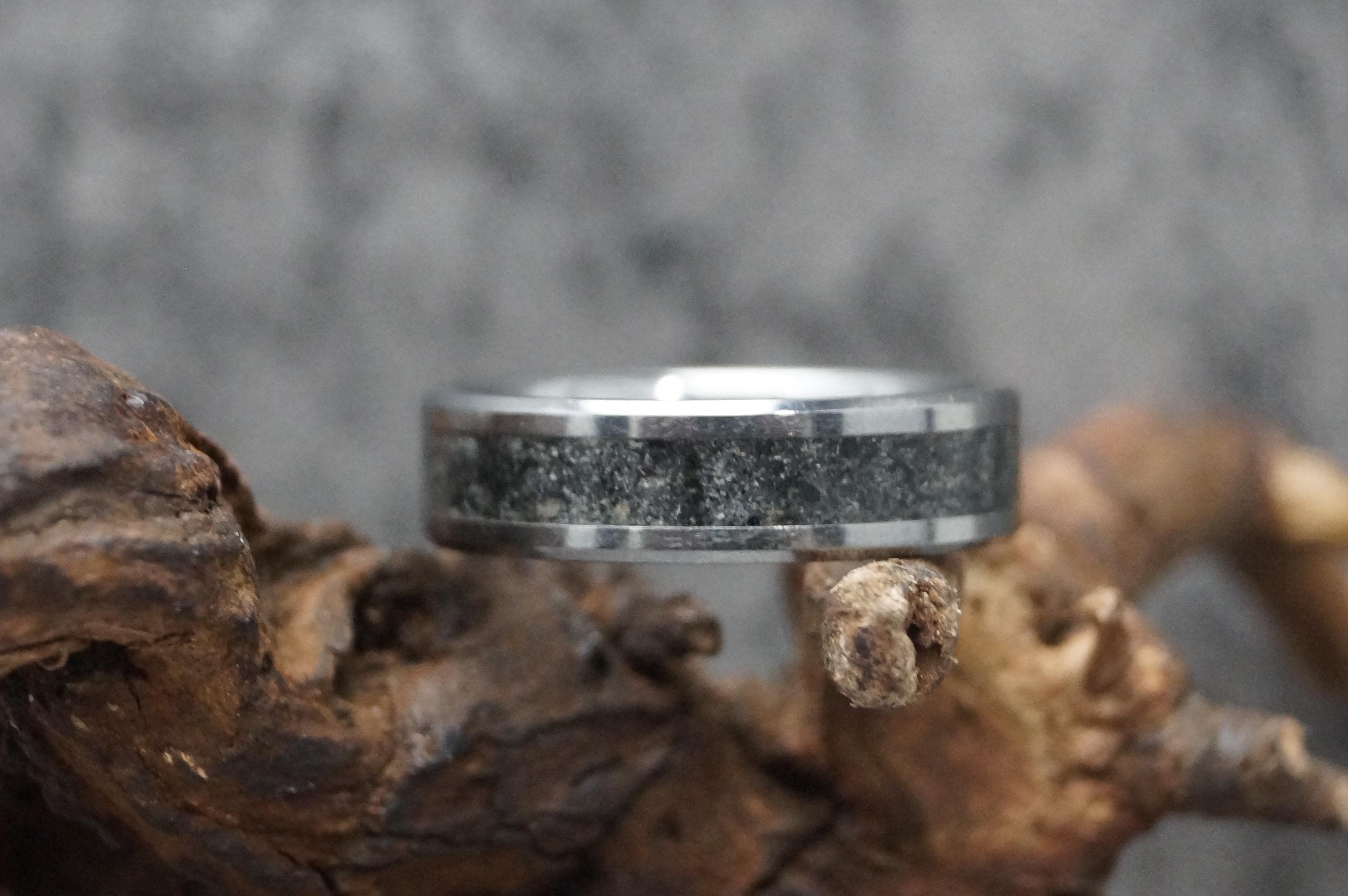 This genuine Tungsten Carbide ring inlaid with 100% genuine Black Tourmaline