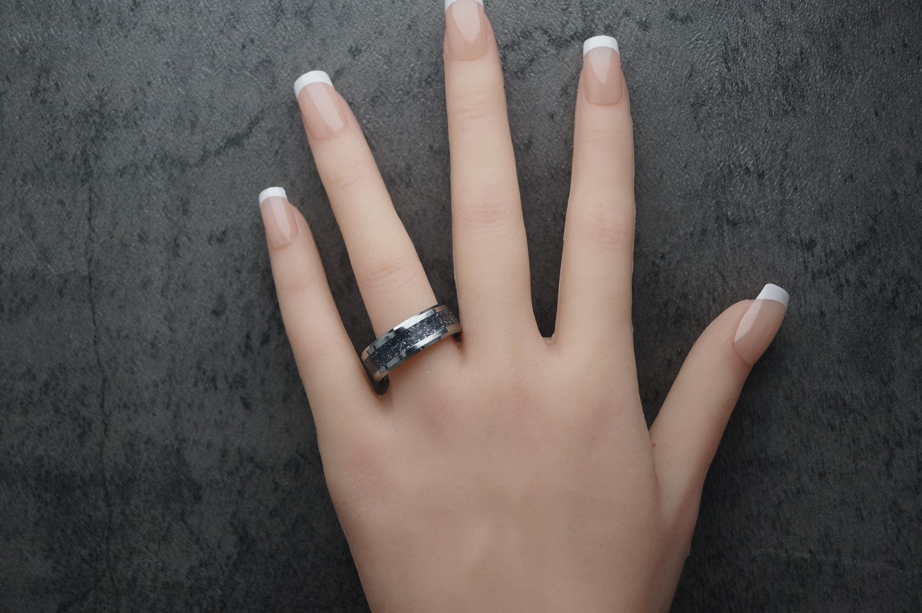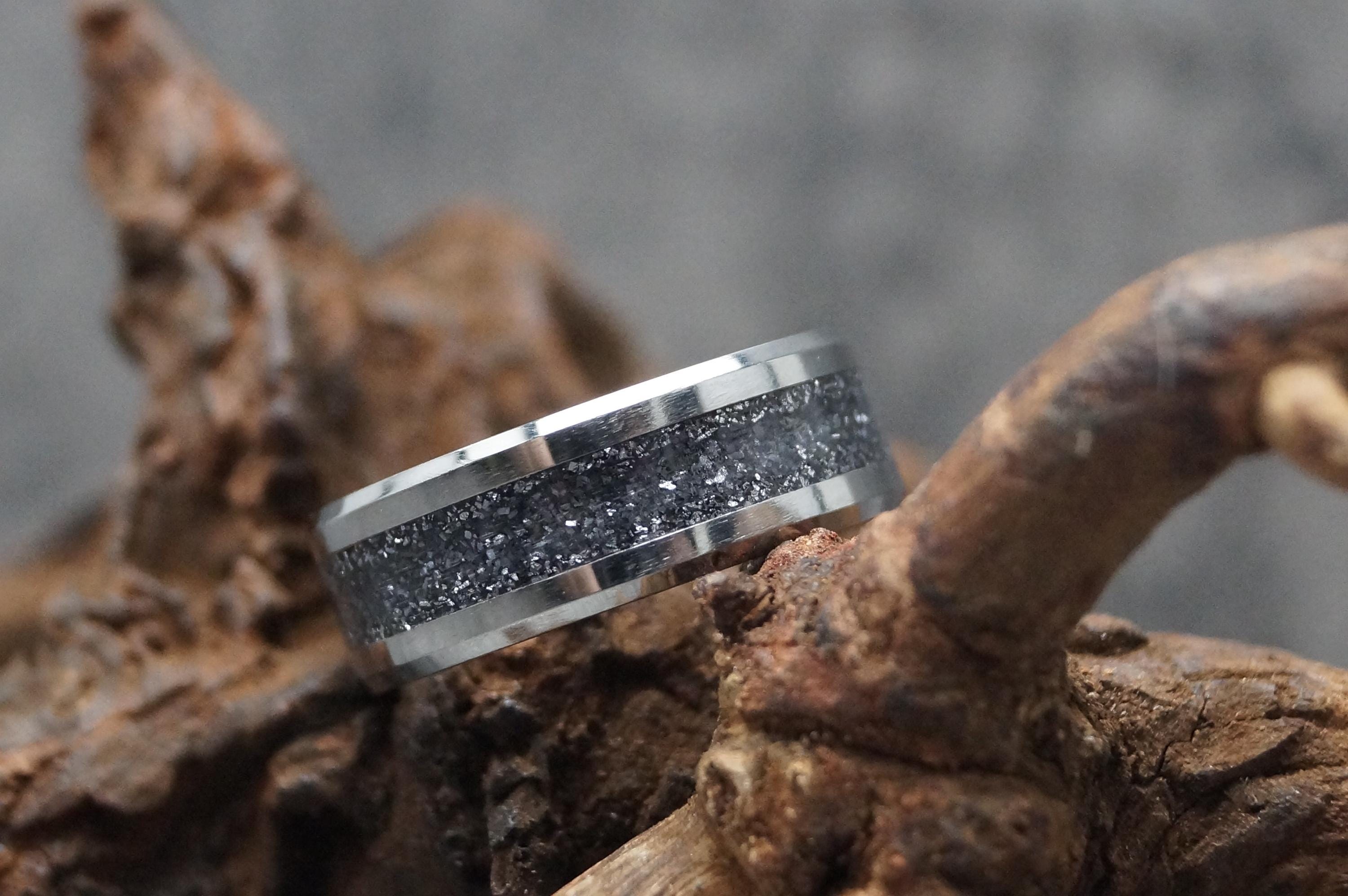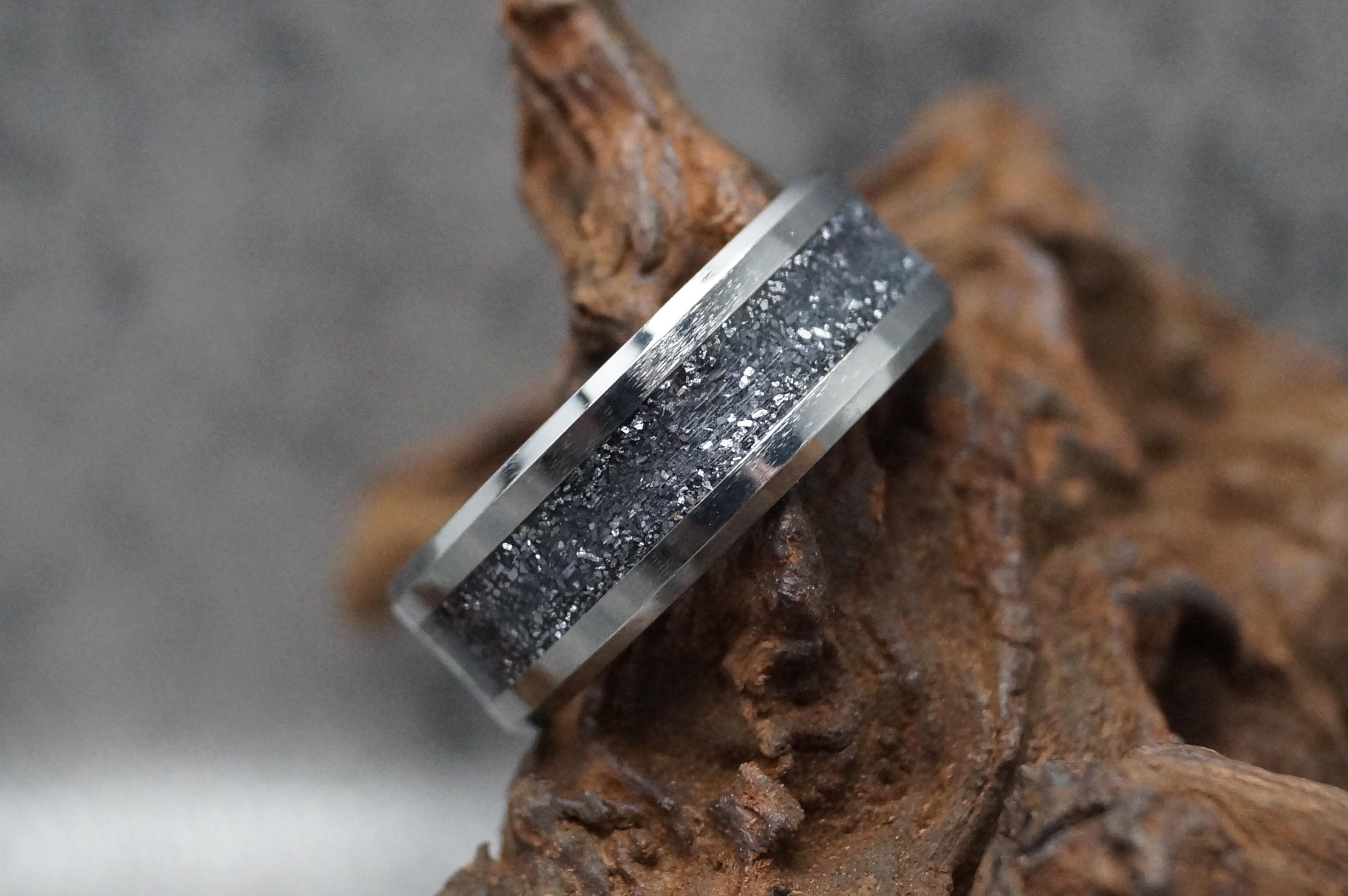 This genuine Tungsten Carbide ring inlaid with 100% genuine Galena