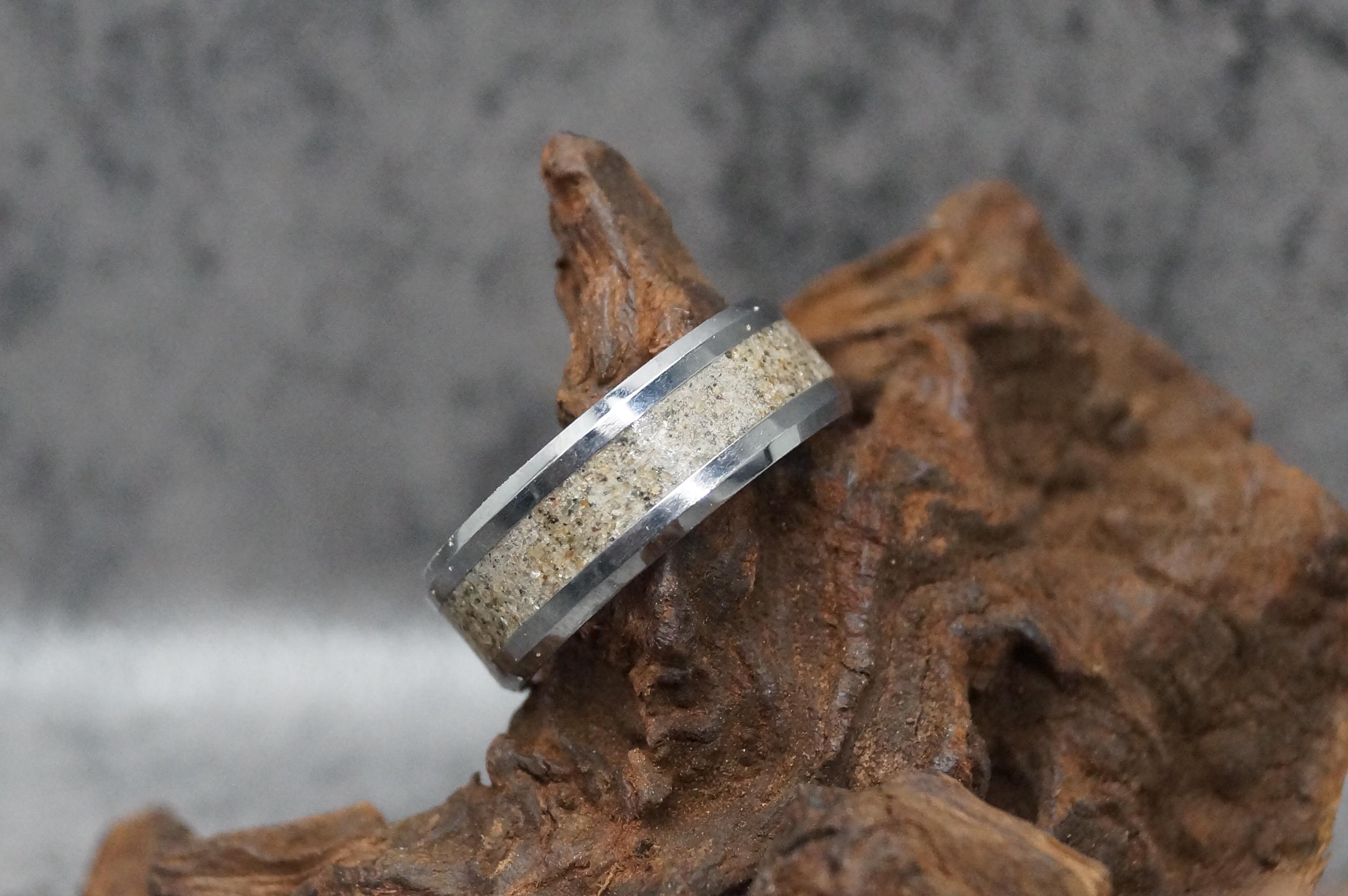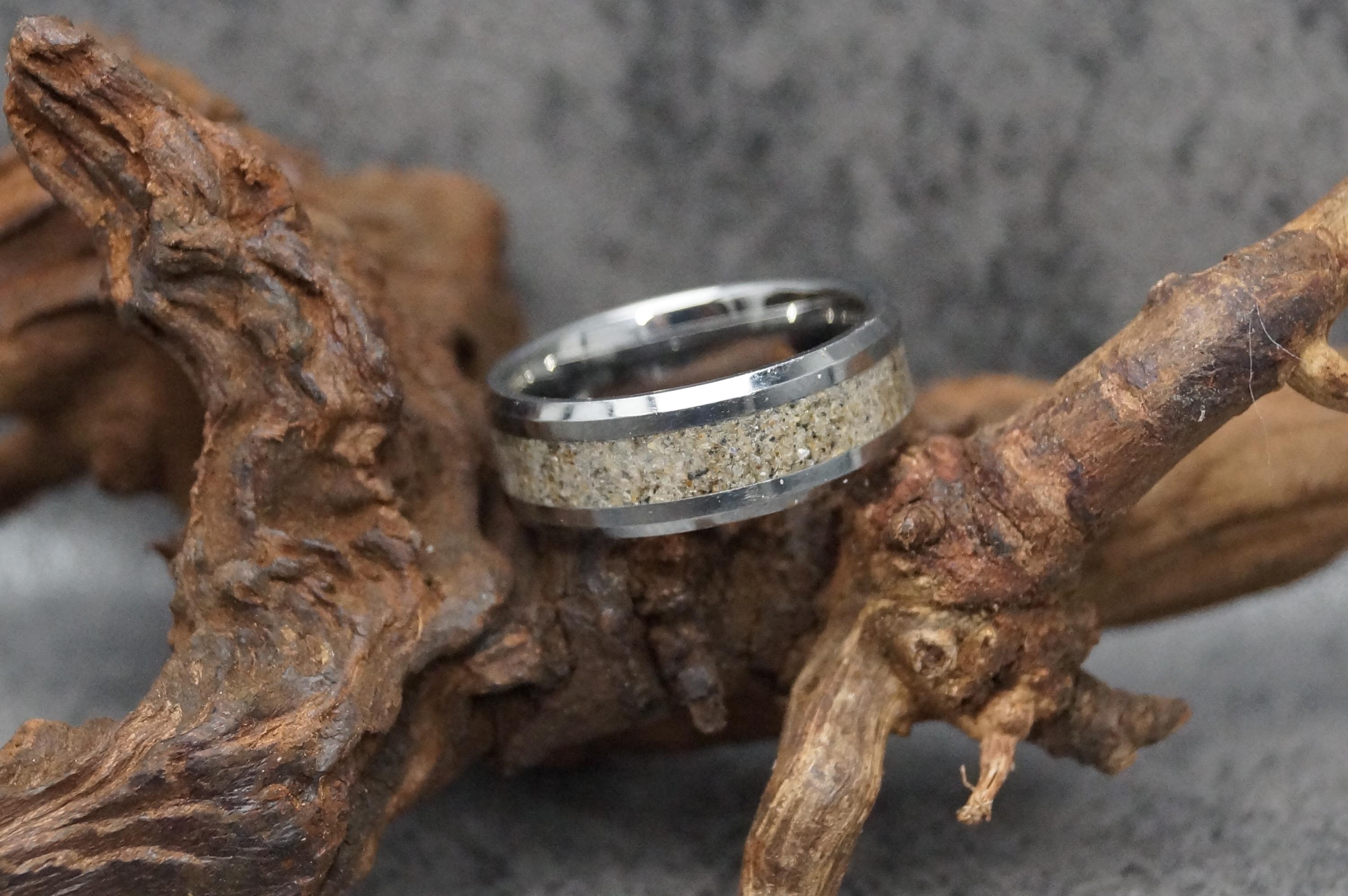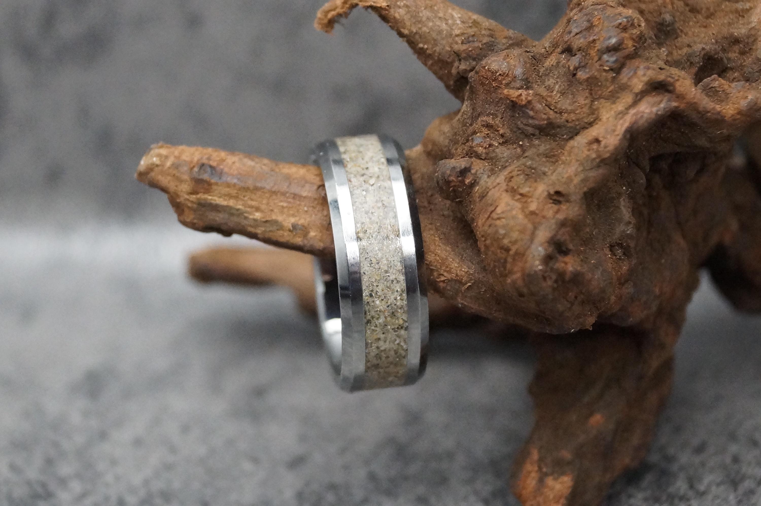 Natural Fine beach Sand with a hint of Mica sparkle Inlaid Tungsten Carbide Wedding Band available 4 mm, 6 mm or 8 mm Wide Rings - Unique Ring - Tungsten Inlaid Ring - Natural beach sand with a hint of Mica sparkle Inlay 4 mm, 6 mm or 8 mm wide