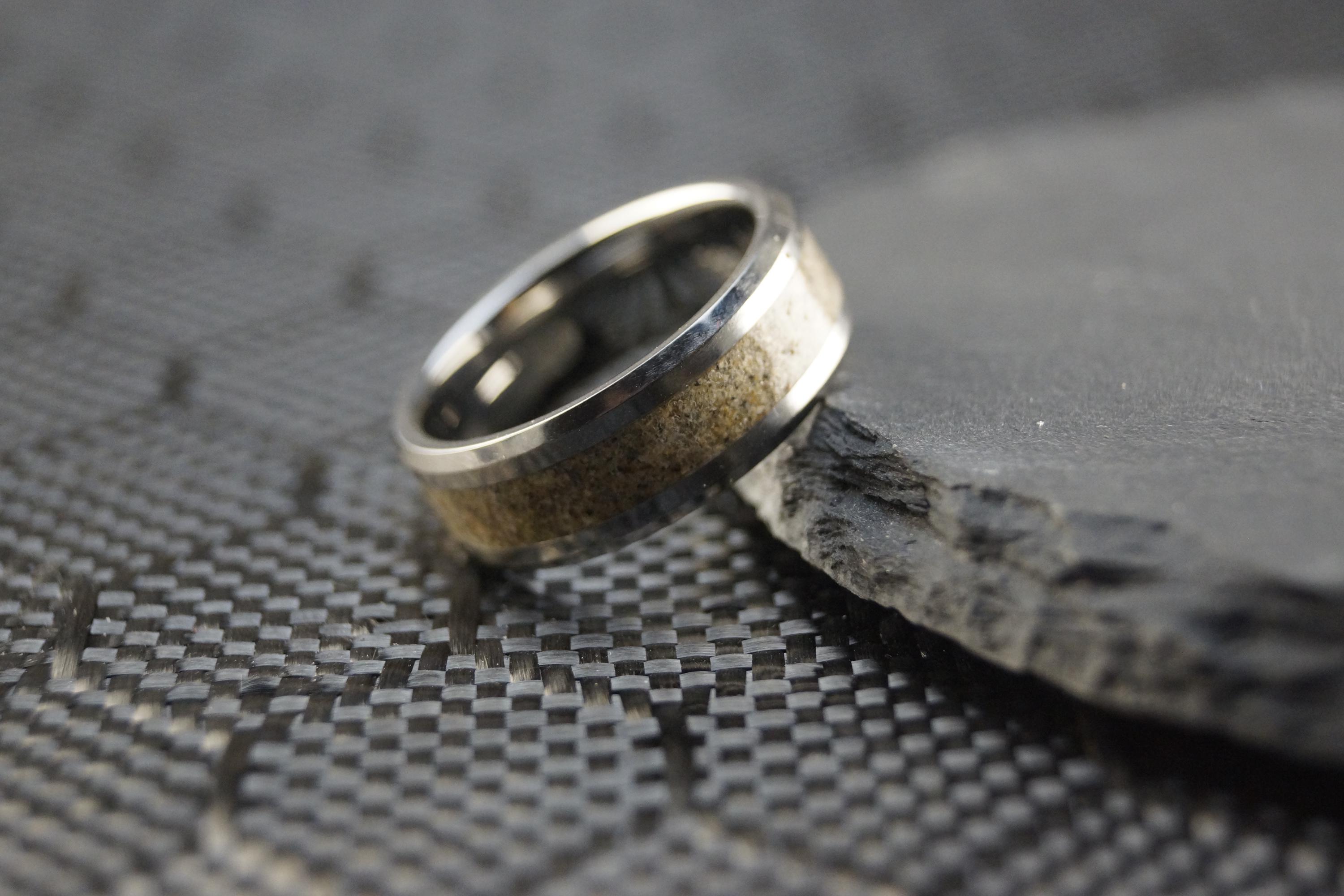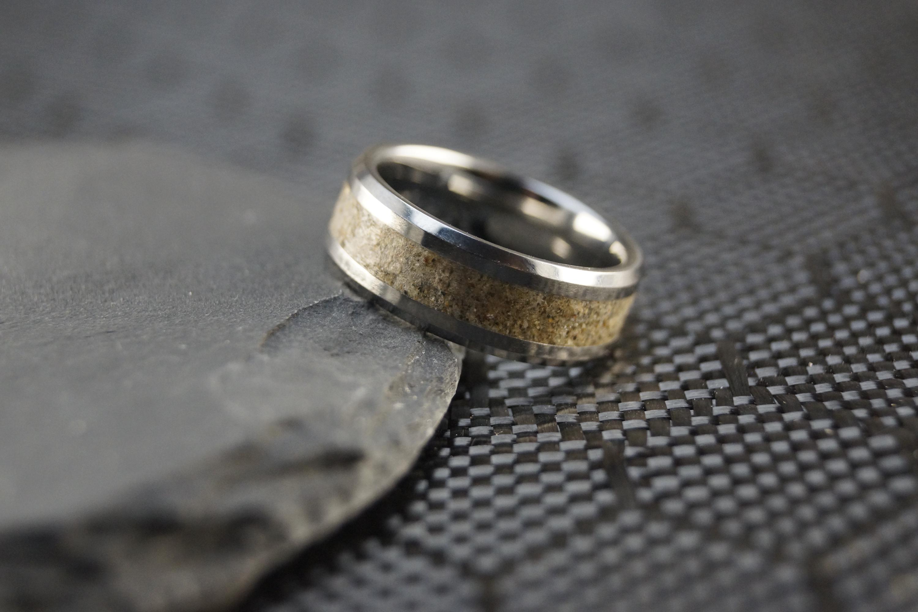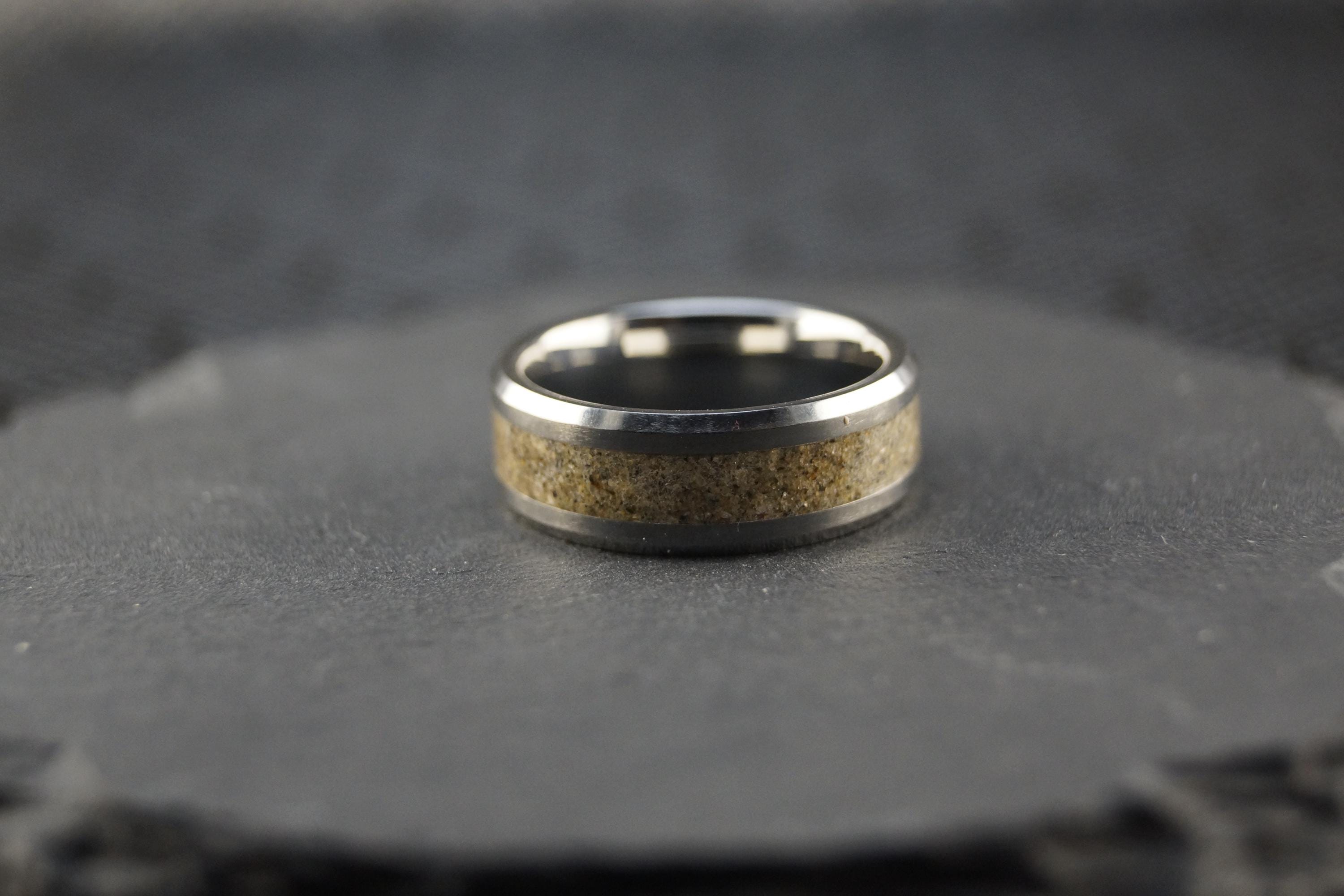 This genuine Tungsten Carbide ring inlaid with 100% Natural Fine beach Sand From Swanage, Dorset with a hint of Mica sparkle - Unique Ring