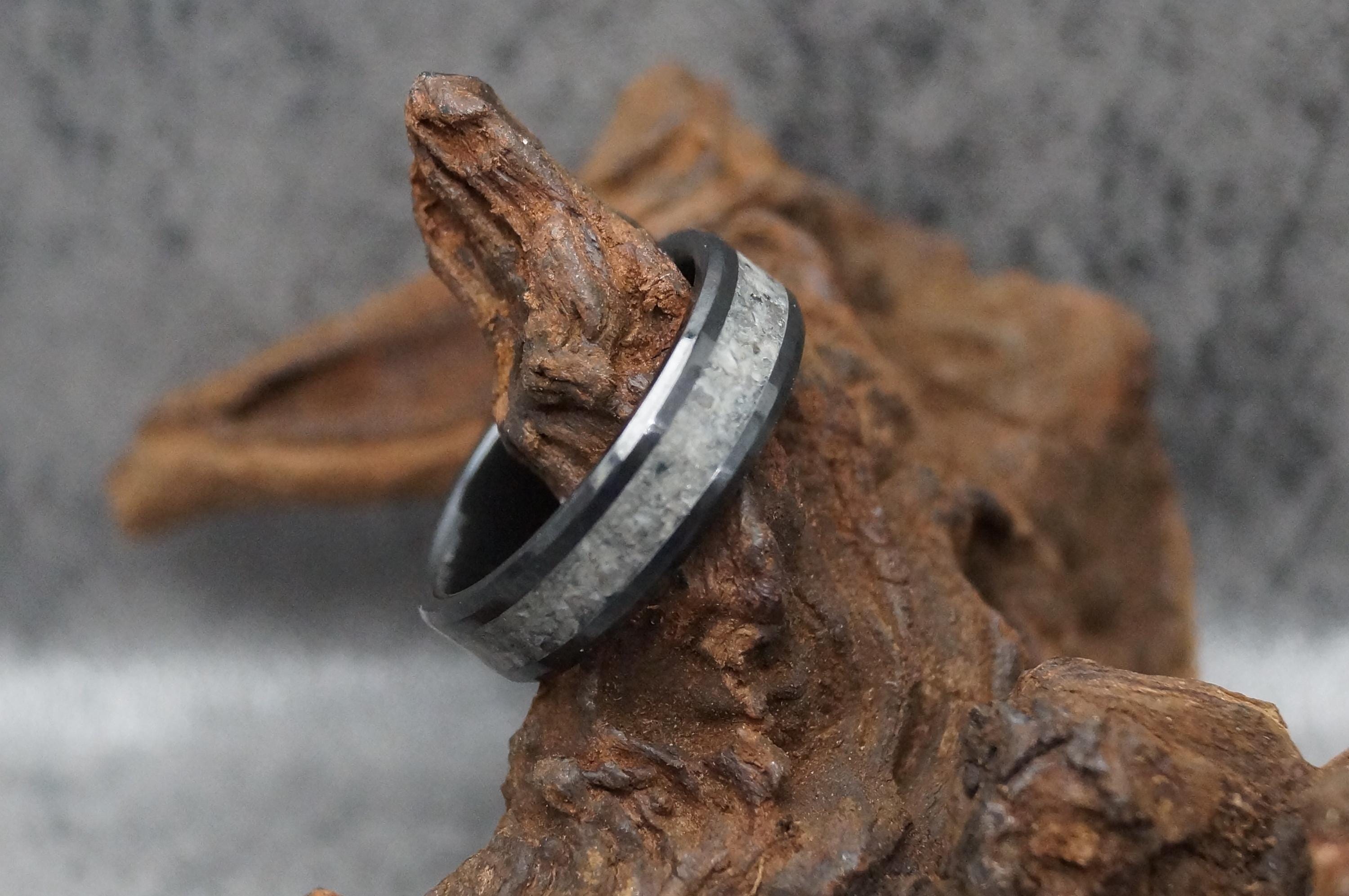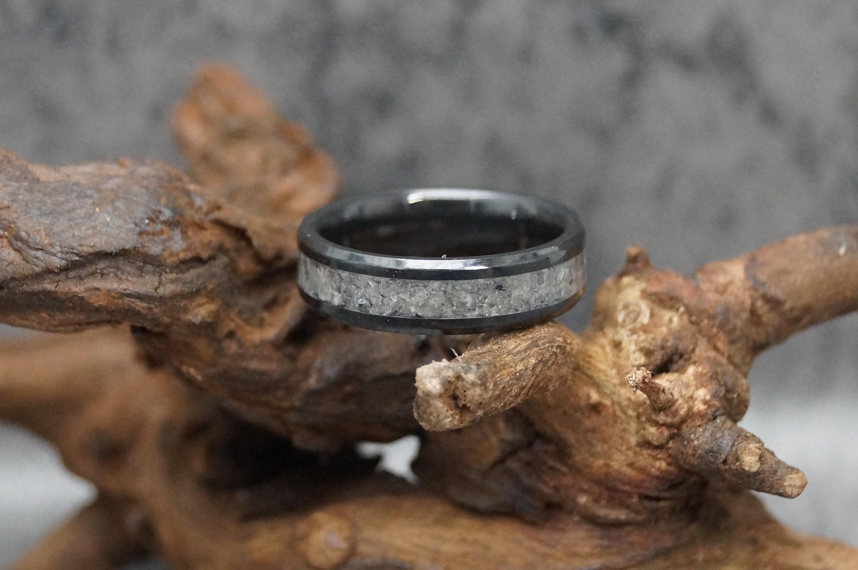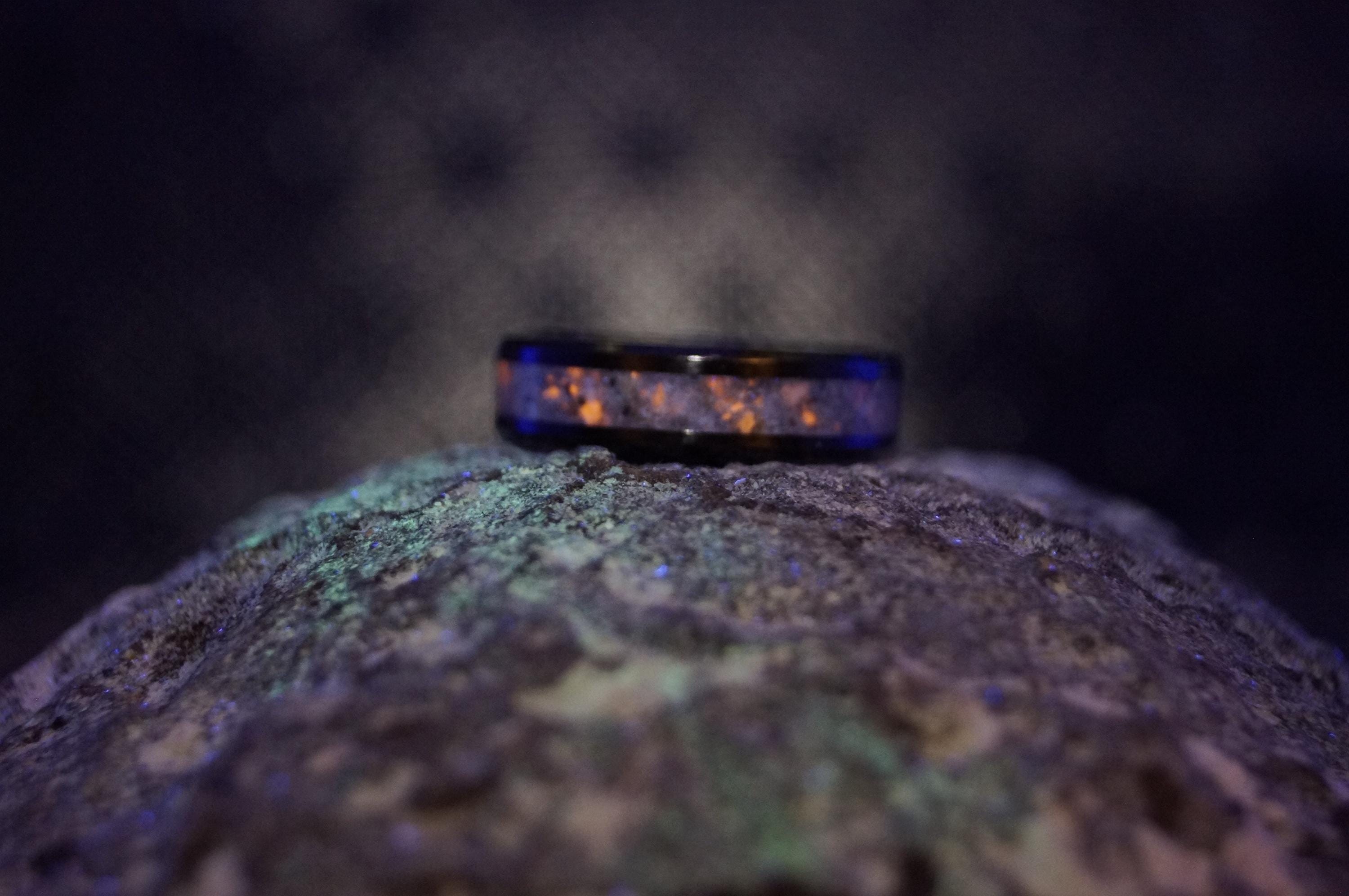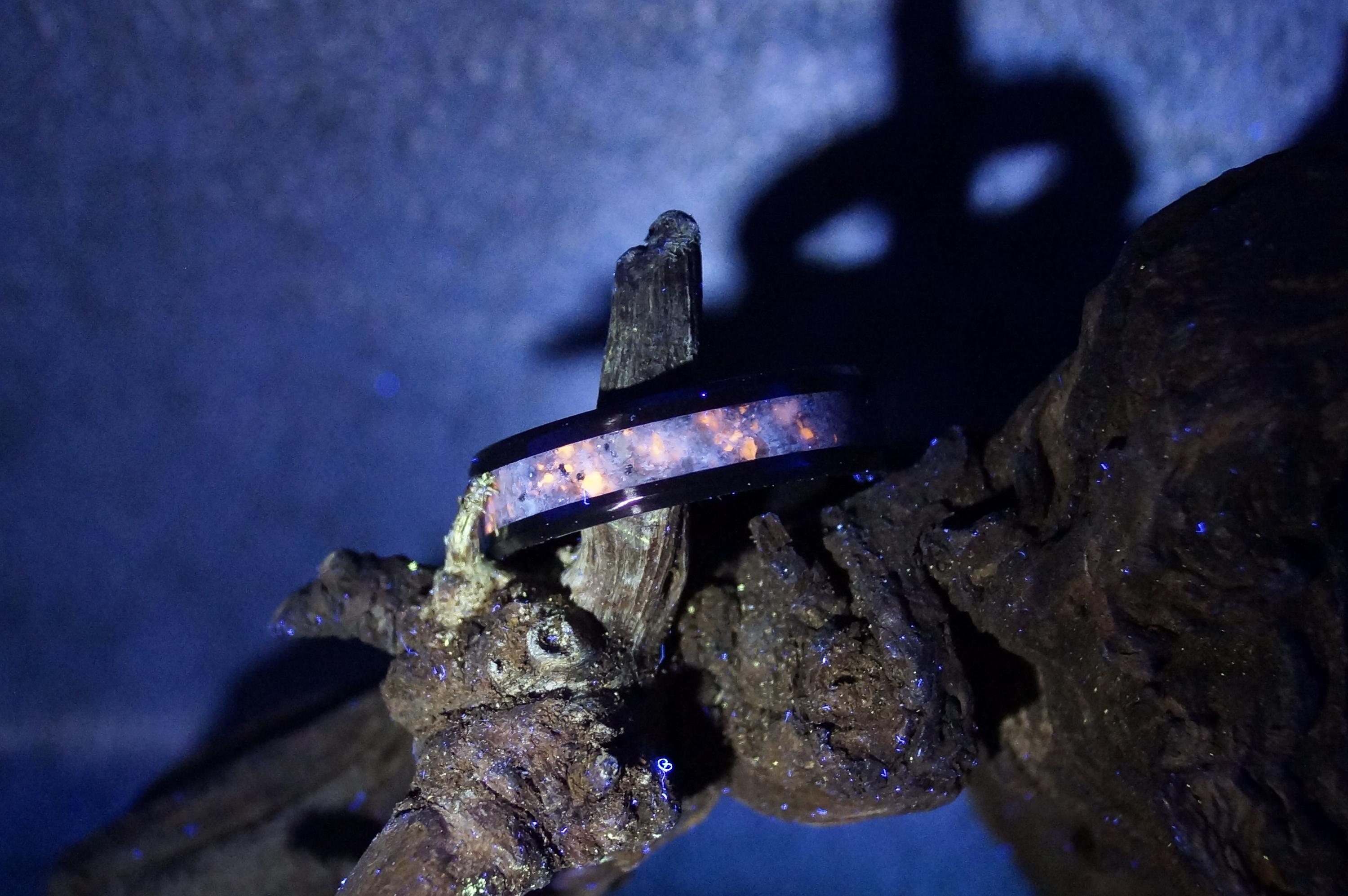 Black Ceramic inlaid with Natural American Yooperlite Wedding Band available 4 mm, 6 mm or 8 mm wide - Unique ring, UV glow ring.