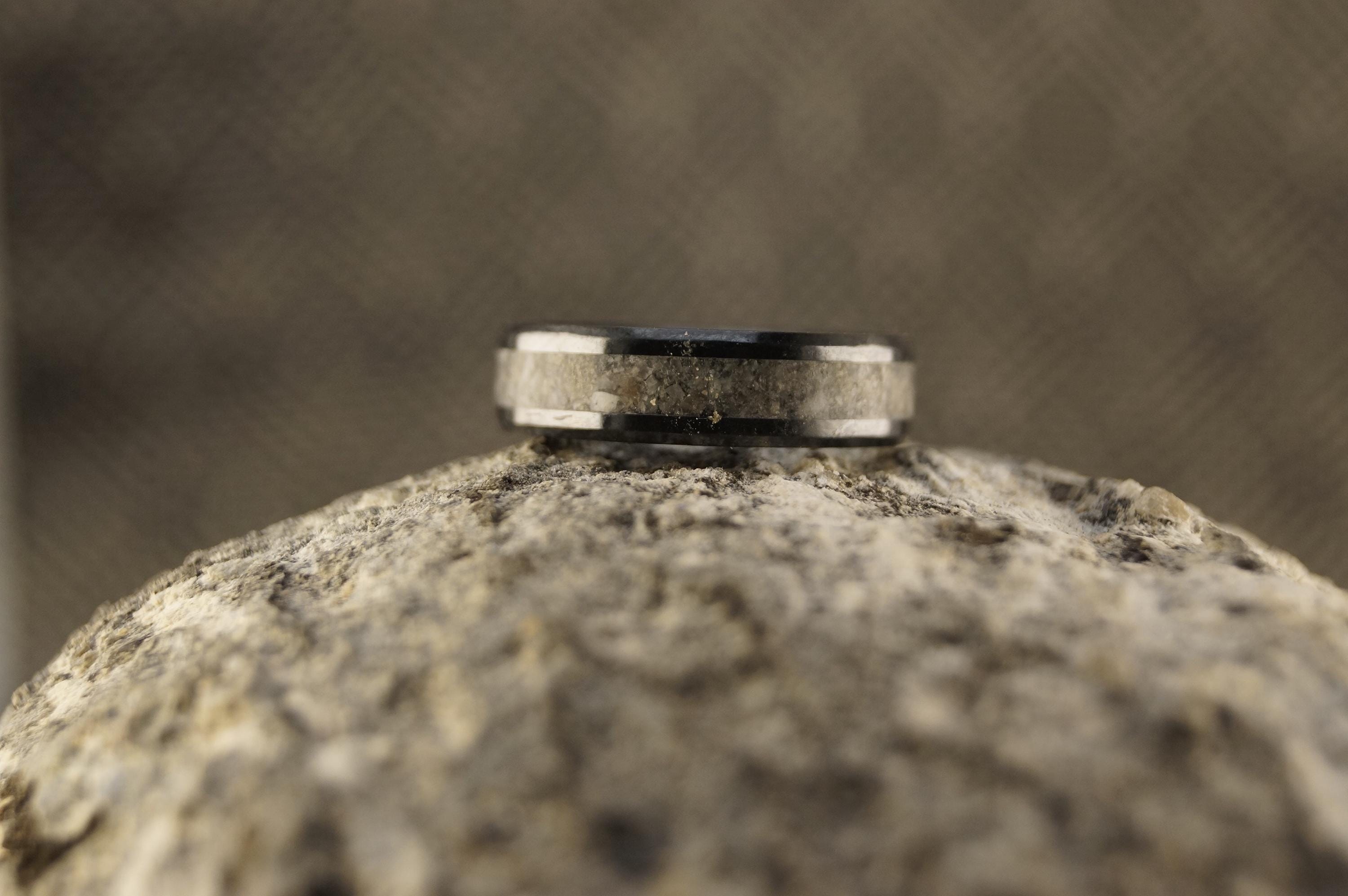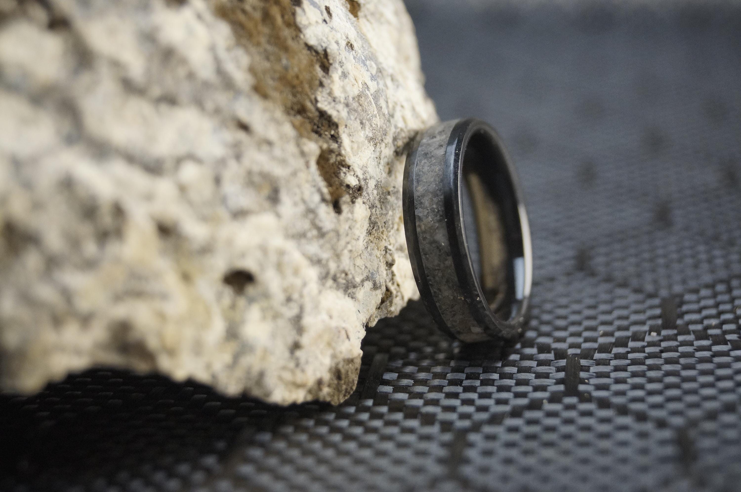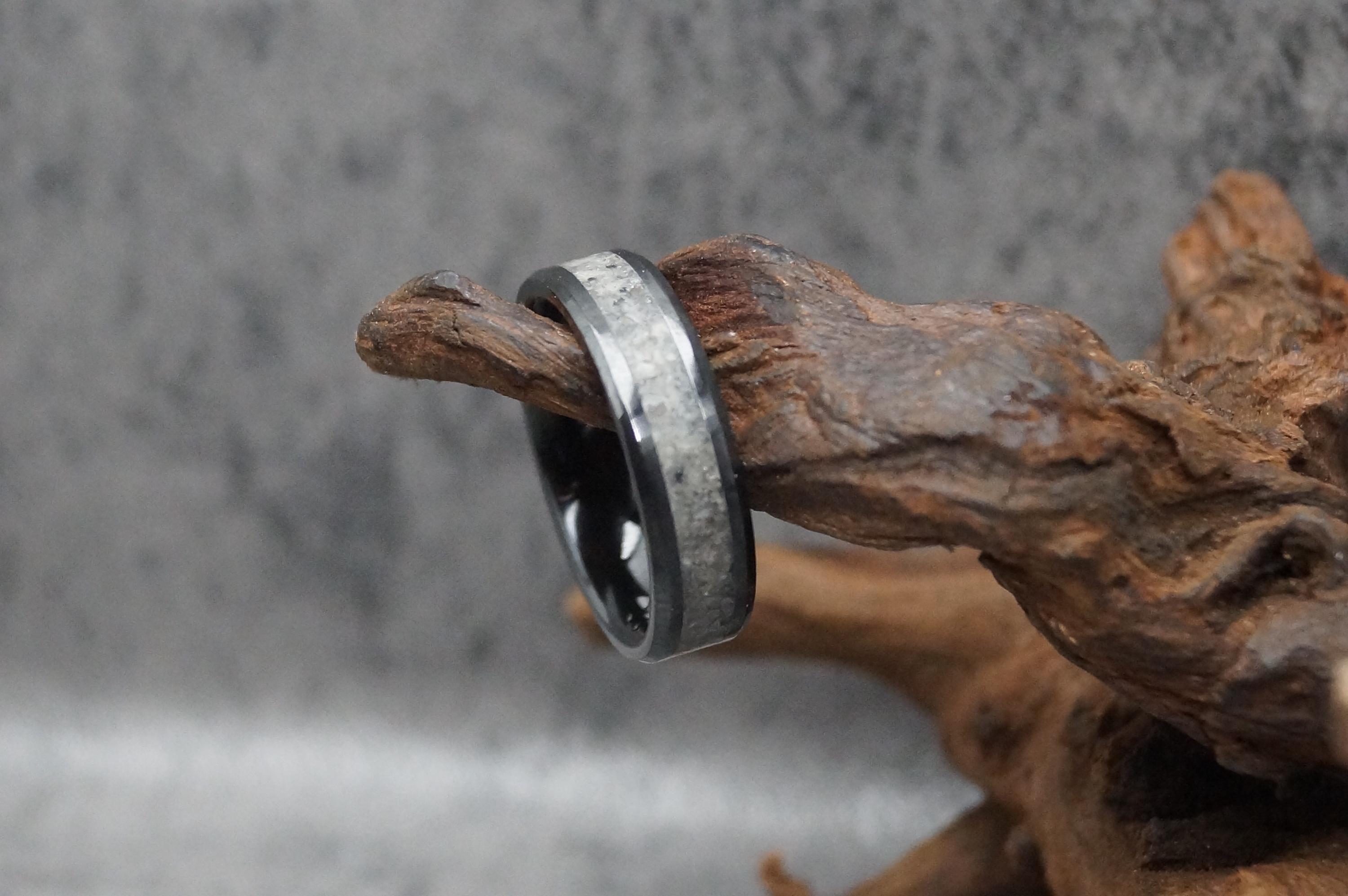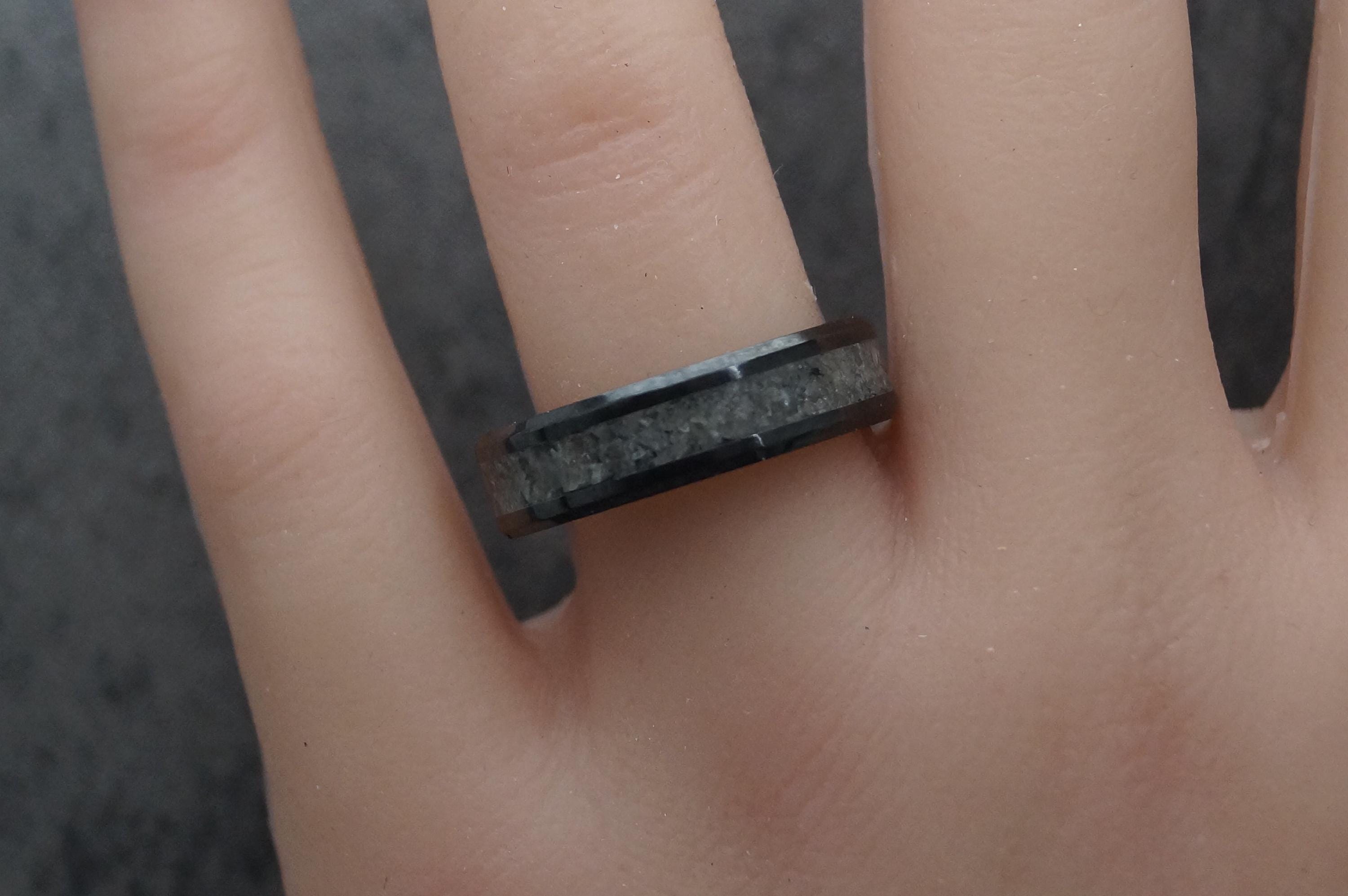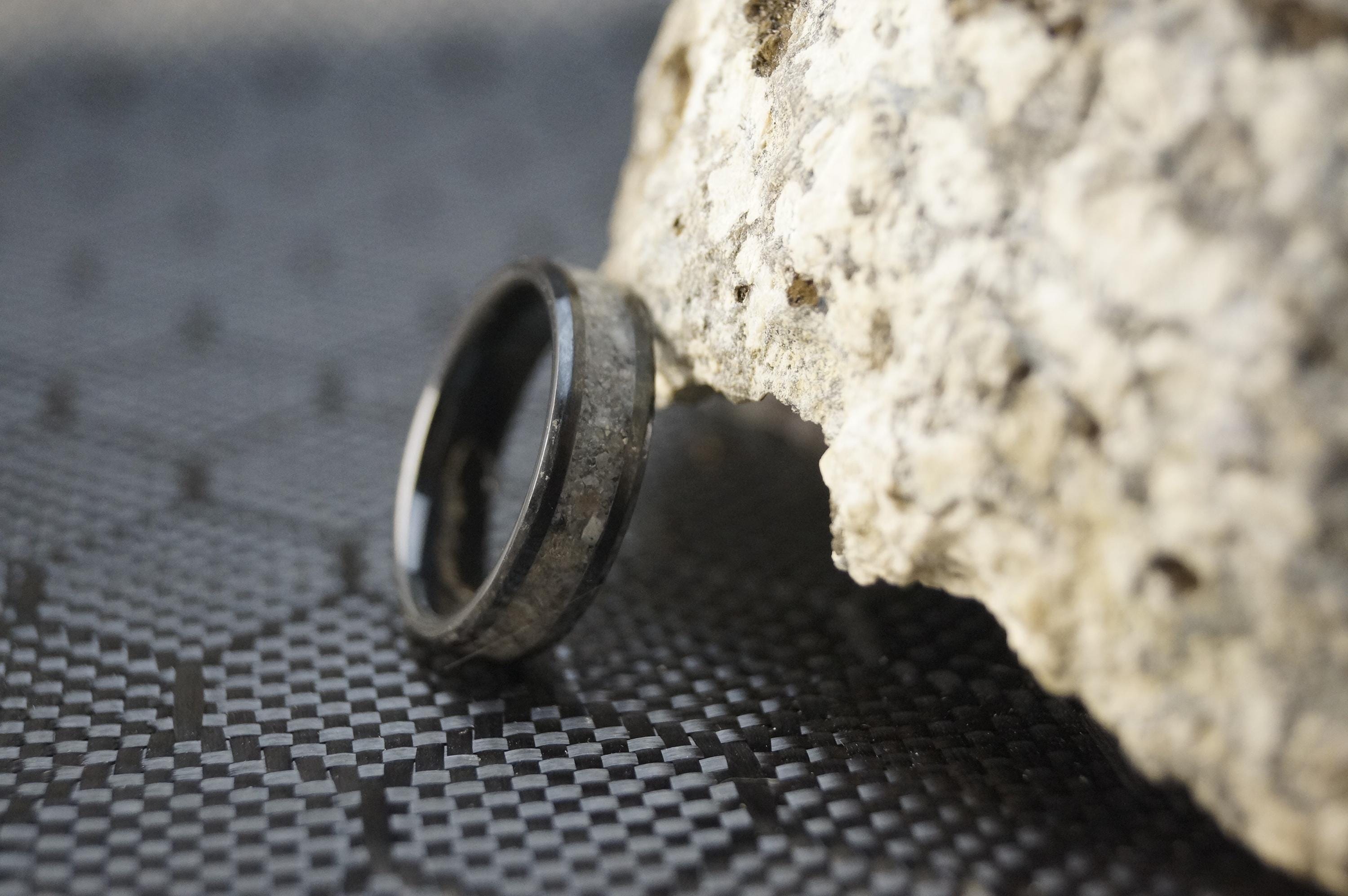 Black Ceramic inlaid with Natural American Yooperlite Wedding Band available 4 mm, 6 mm or 8 mm wide - Unique ring, UV glow ring.