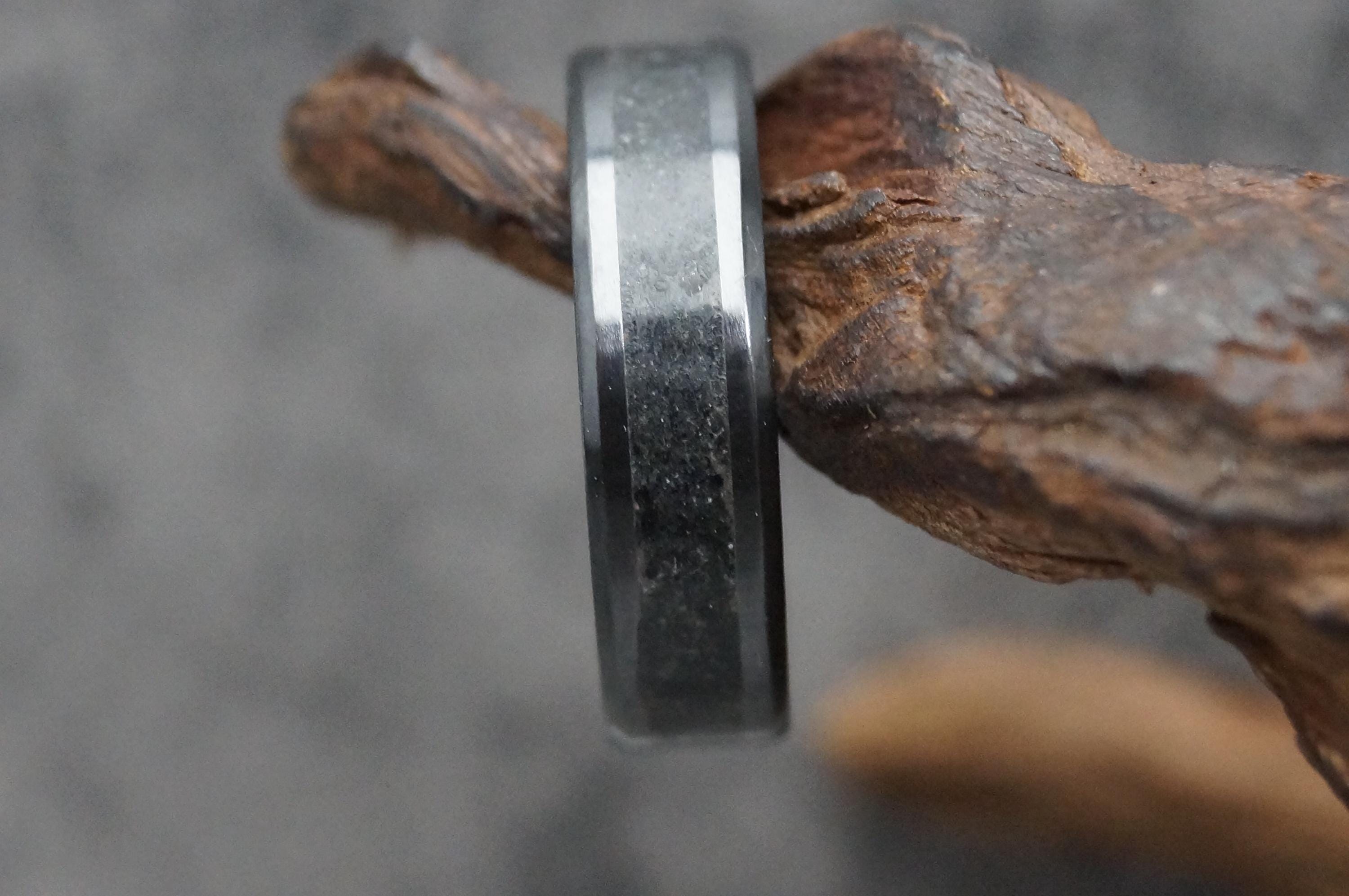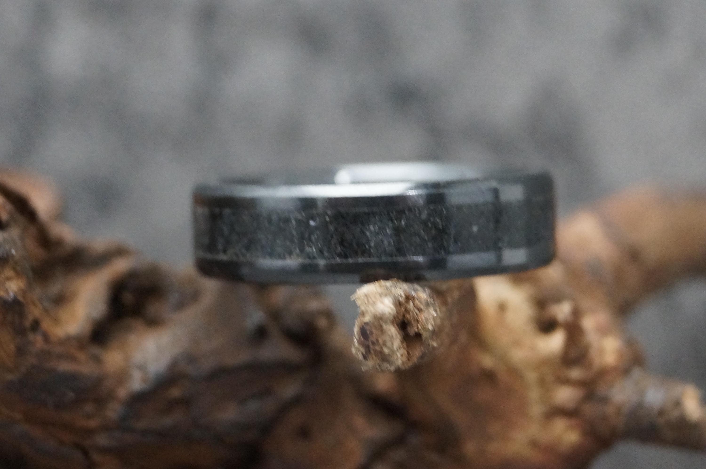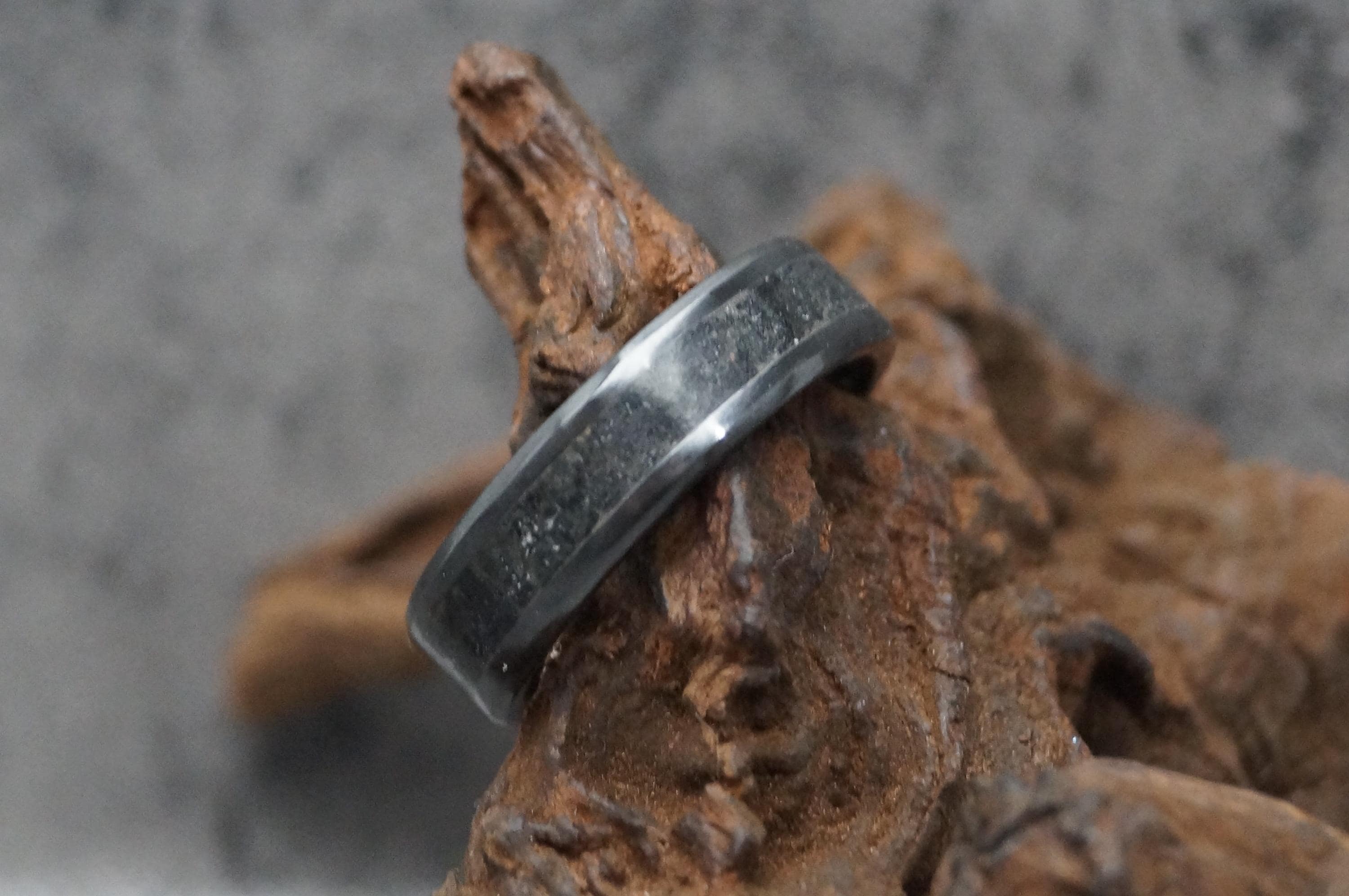 Black Ceramic inlaid with Black Tourmaline Wedding Band available 4 mm, 6 mm or 8 mm wide - Unique ring