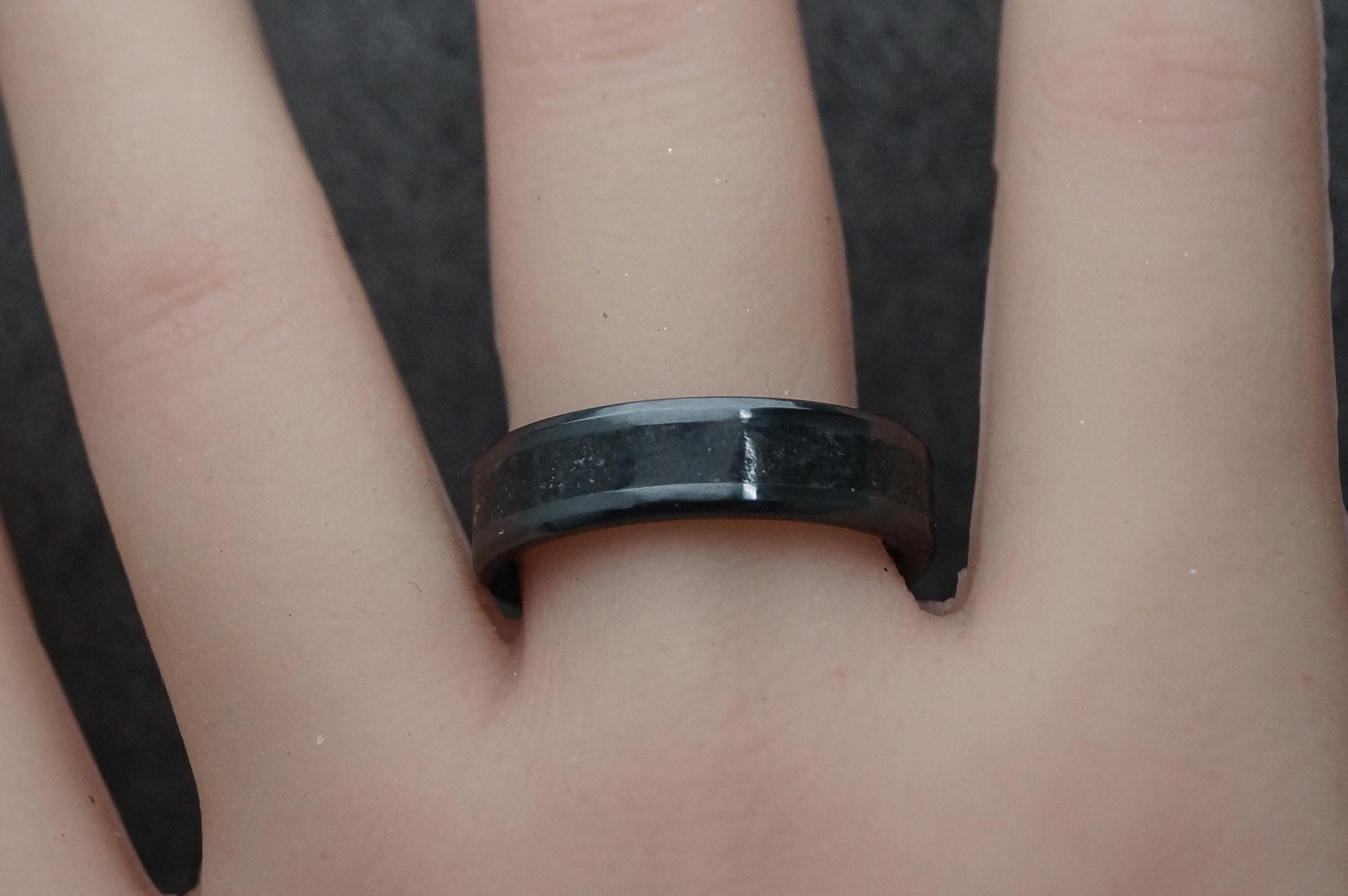 This genuine Black Ceramic ring inlaid with with 100% genuine Black Tourmaline