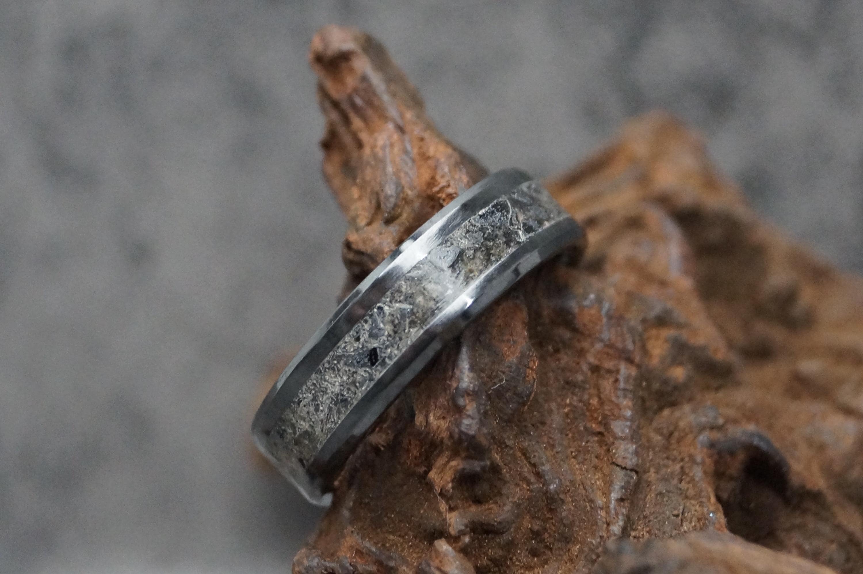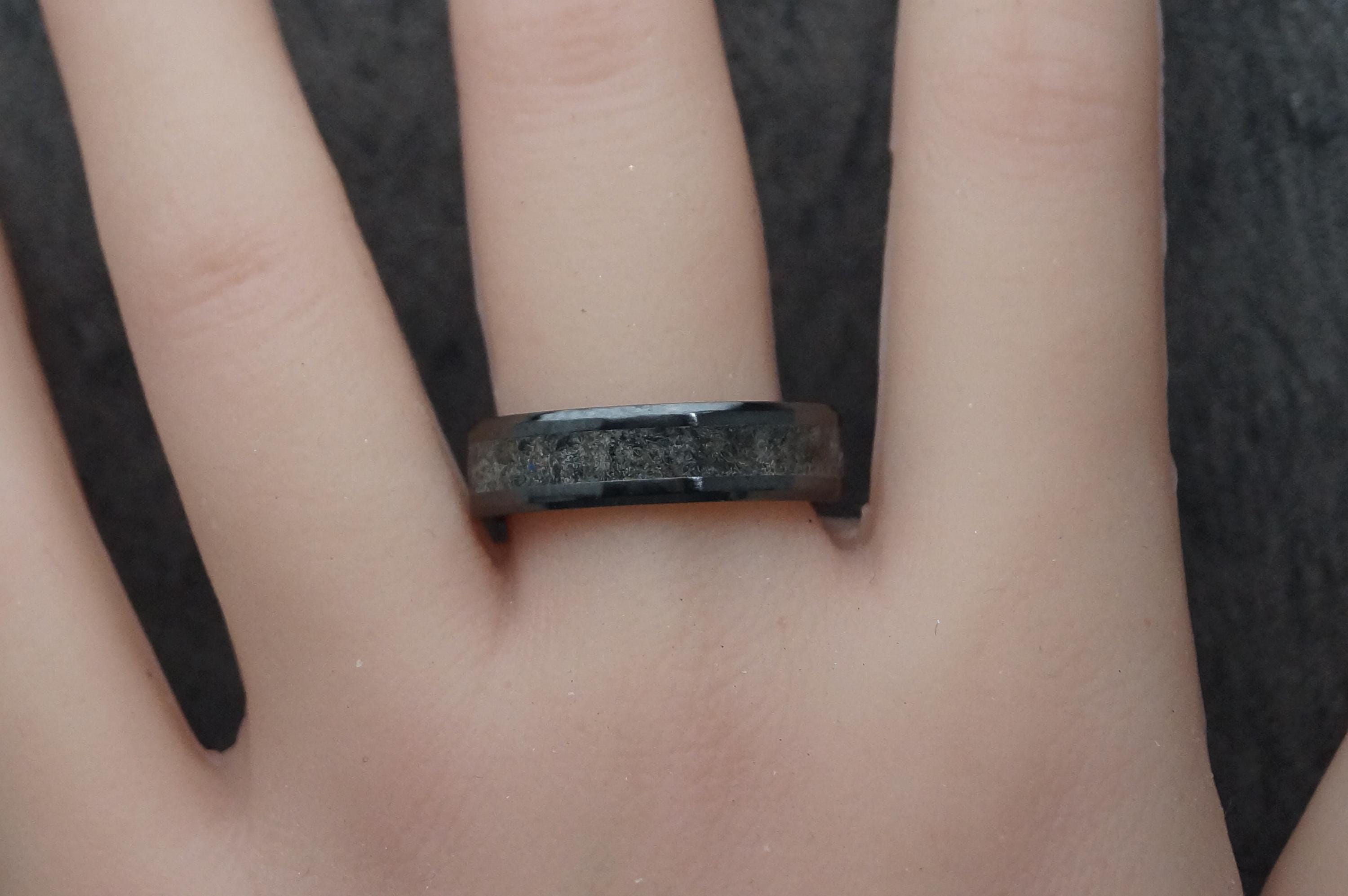 Thai Meteorite 'Space Rock' Black Ceramic Wedding Band - Ring for men and women - Unique Ring