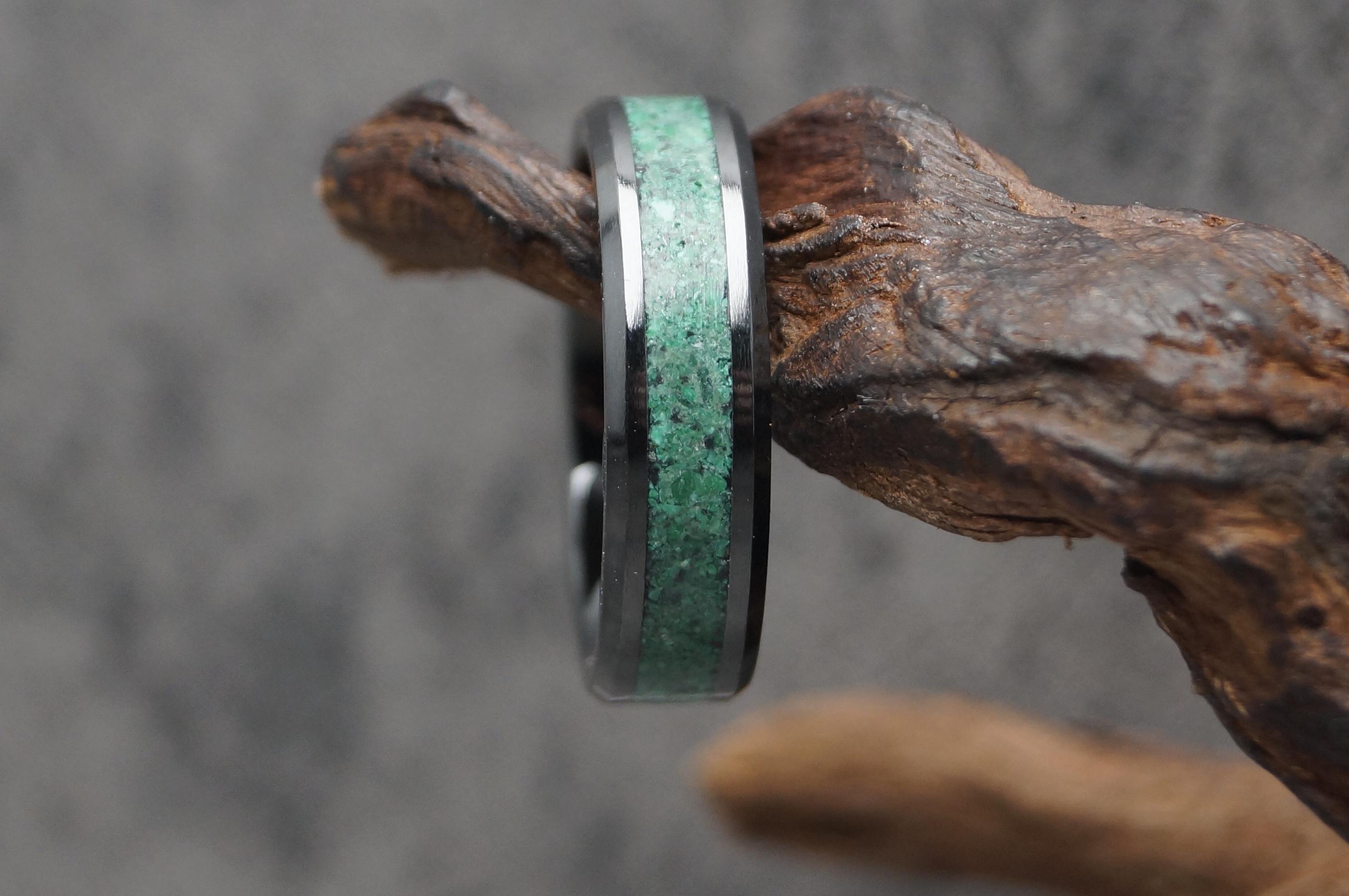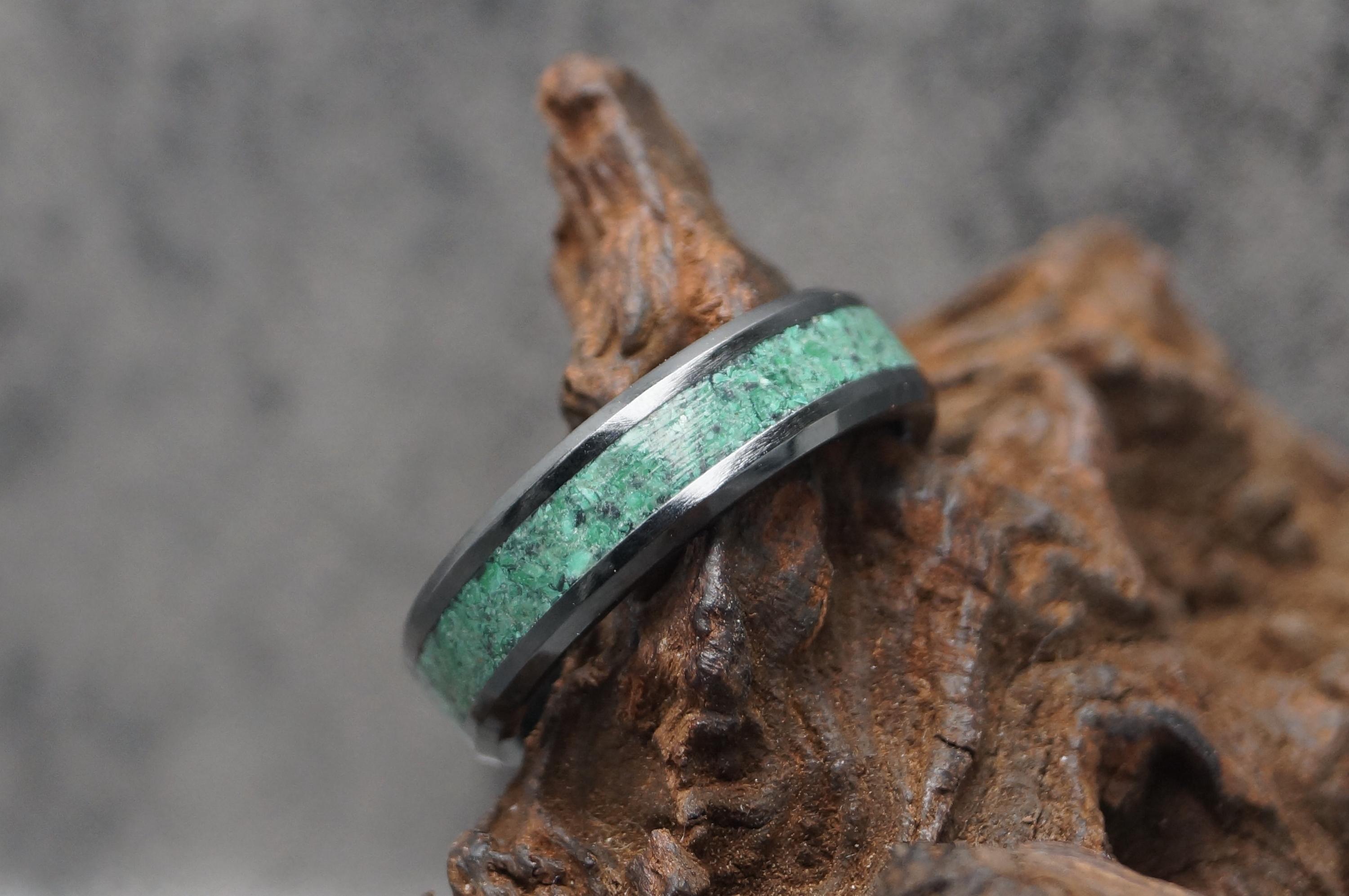 This genuine Black Ceramic ring inlaid with 100% Natural Malachite.