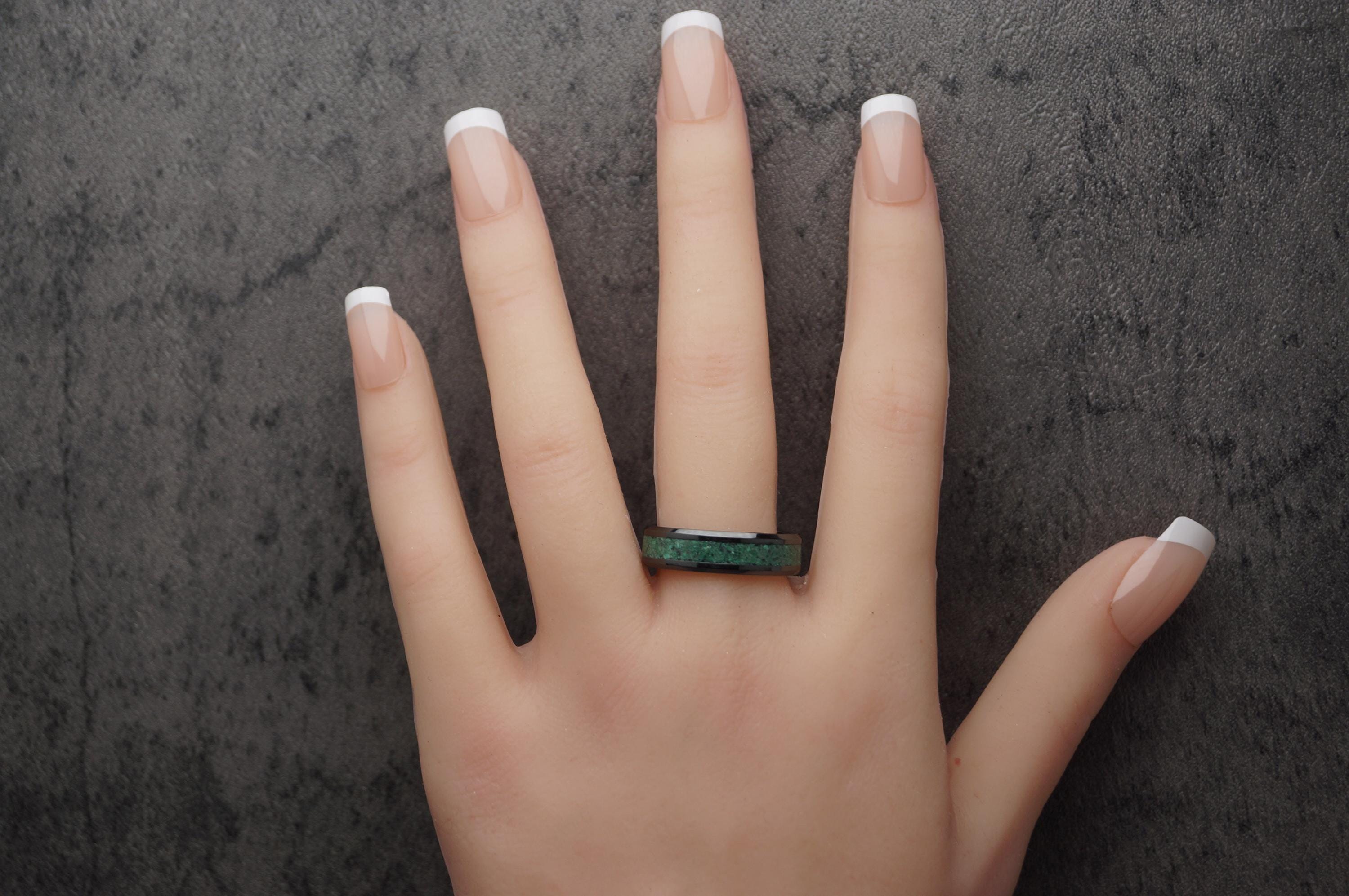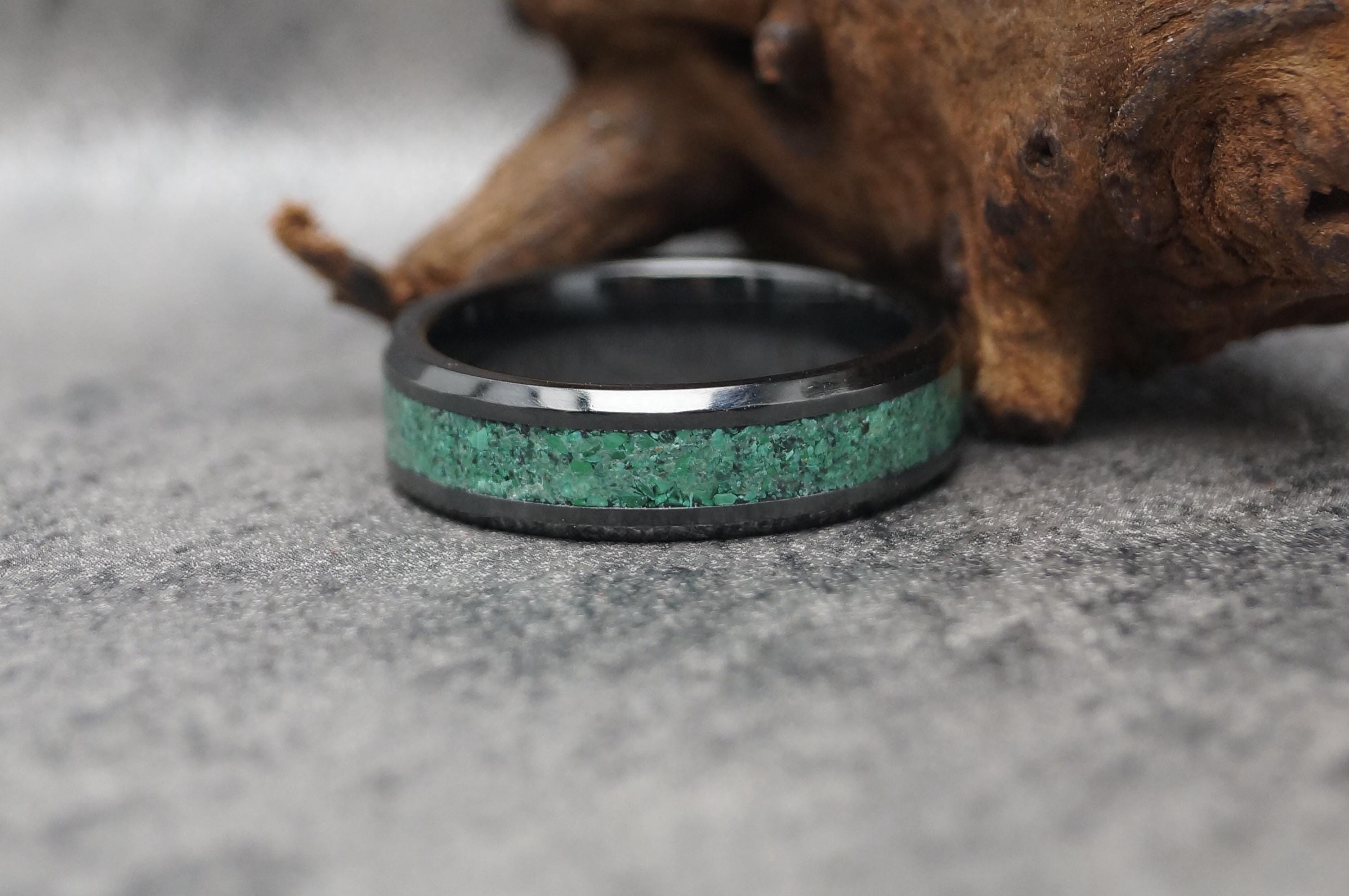 Malachite Black Ceramic Wedding Band - Ring for men and women - Unique Ring