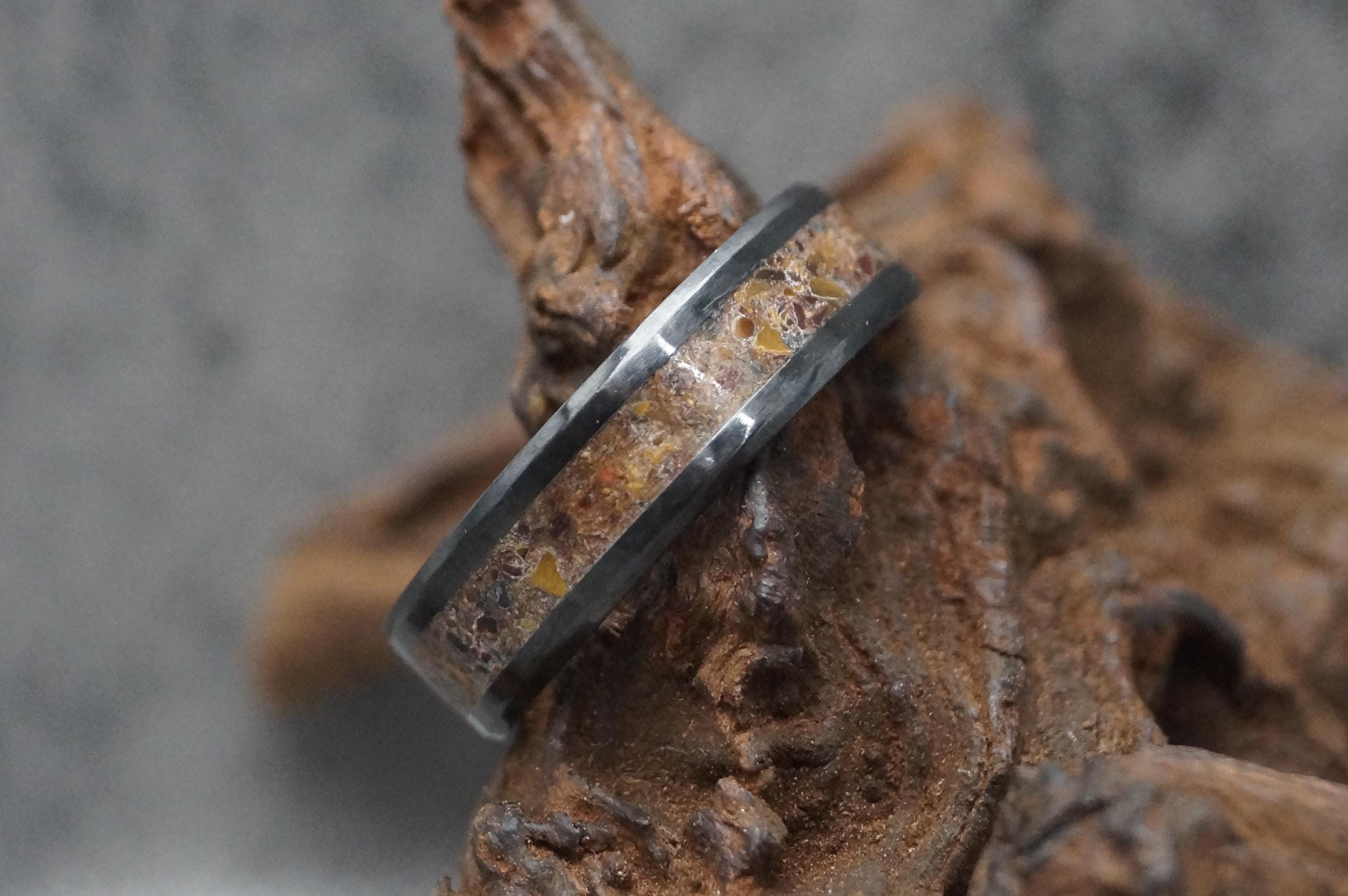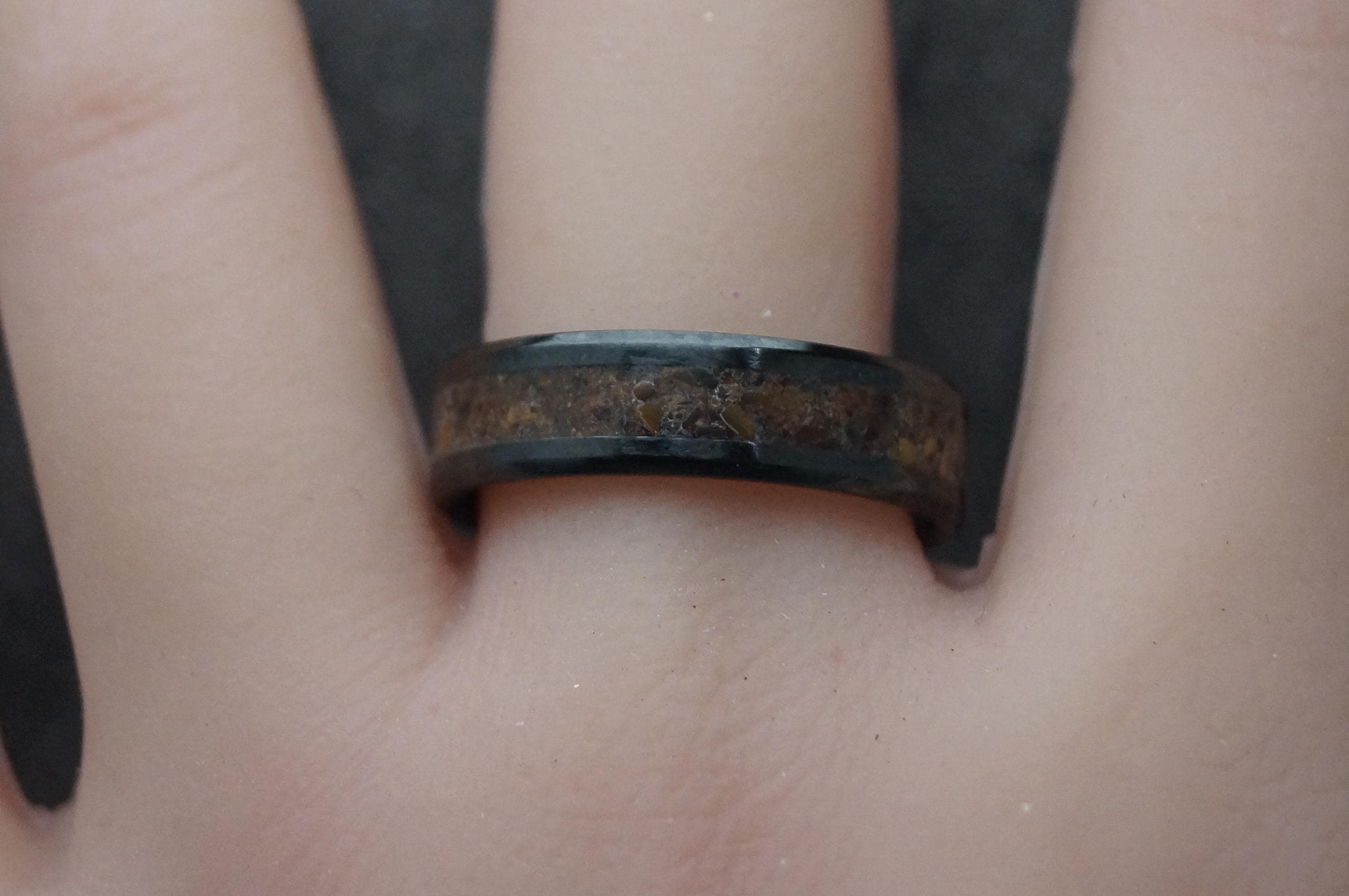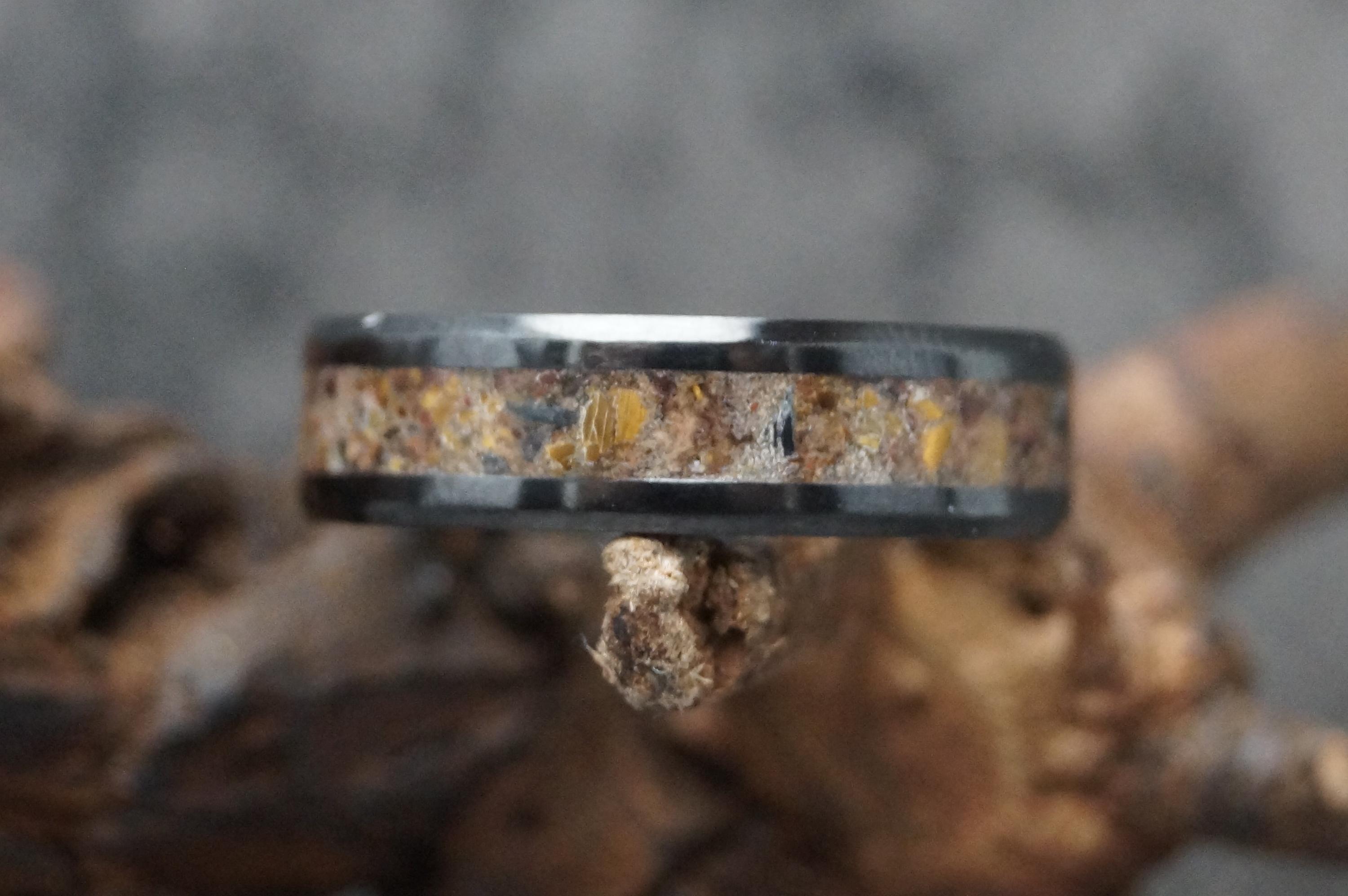 Three colour Tiger Eye Black Ceramic Wedding Band - Ring for men and women - Unique Ring