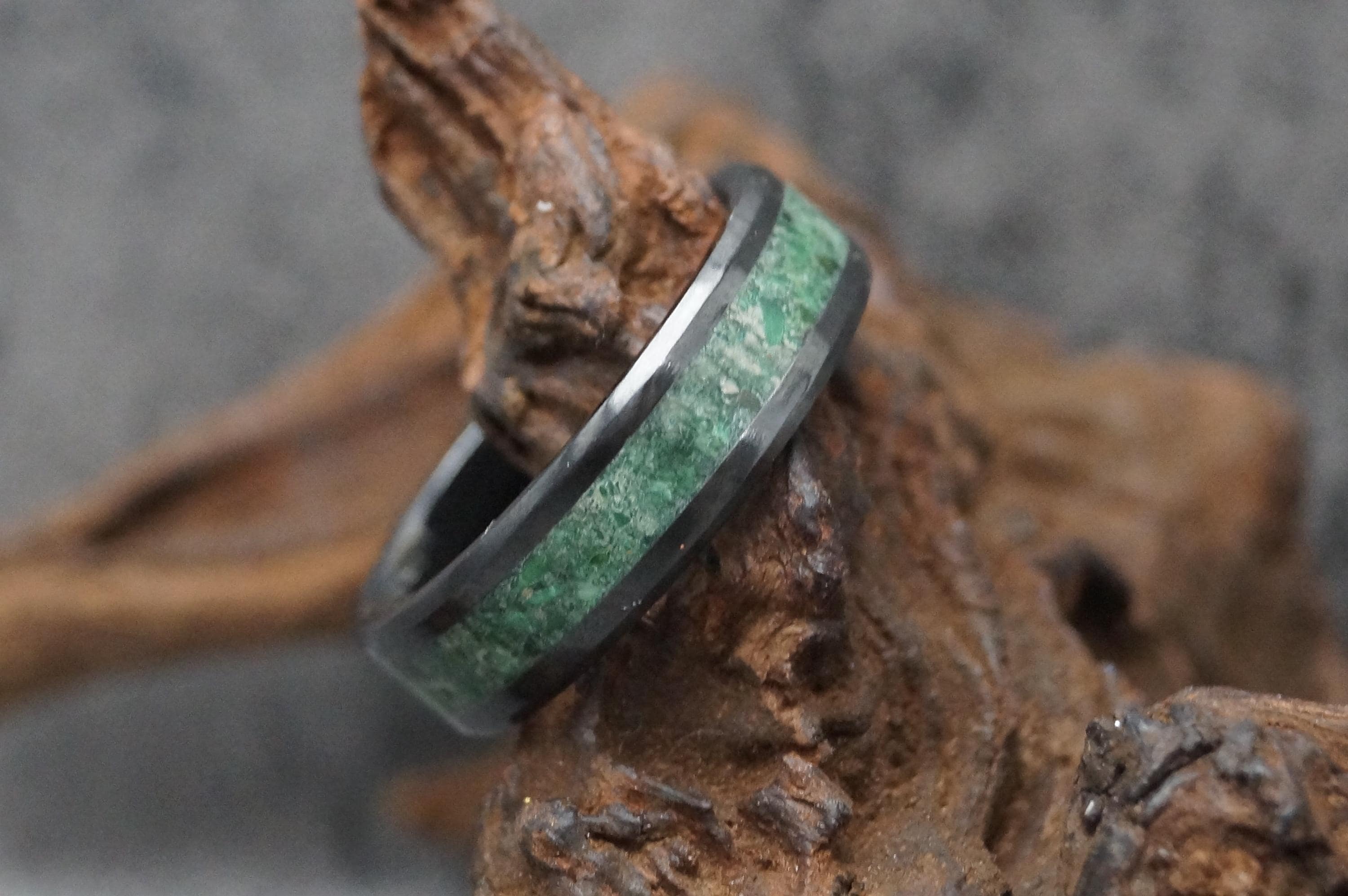 Green Tiger Eye Black Ceramic Ring for men and women - Unique Ring