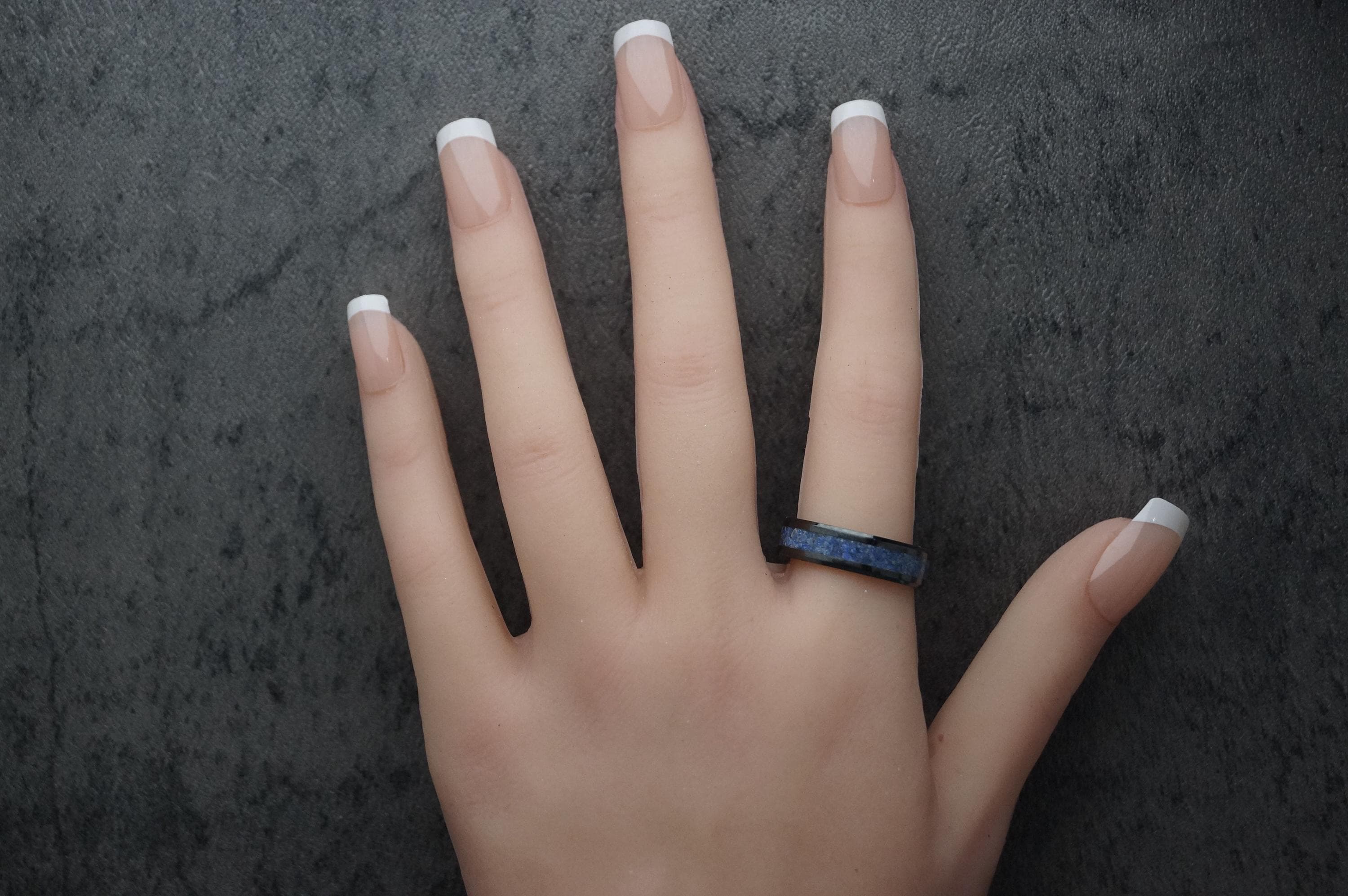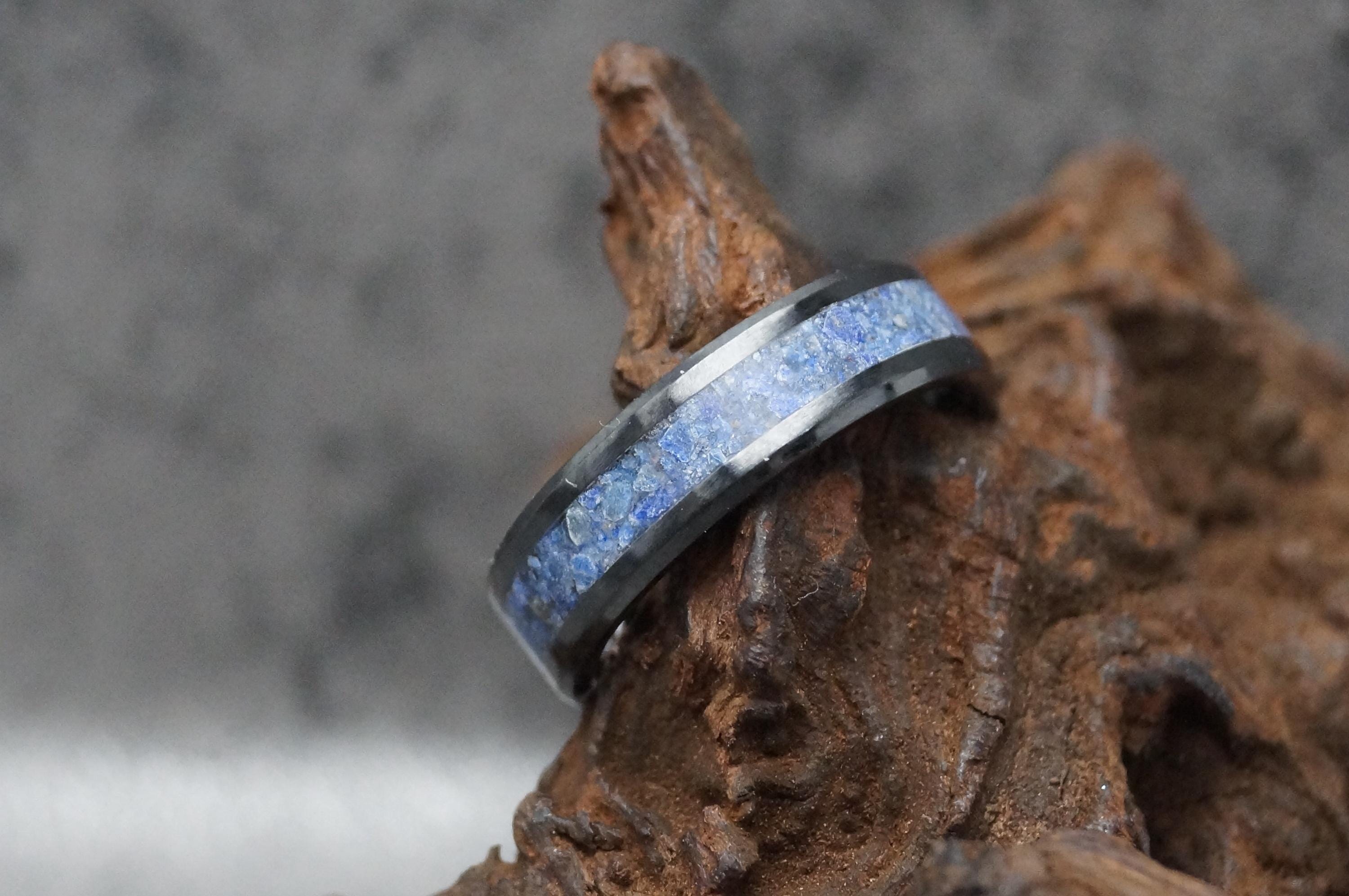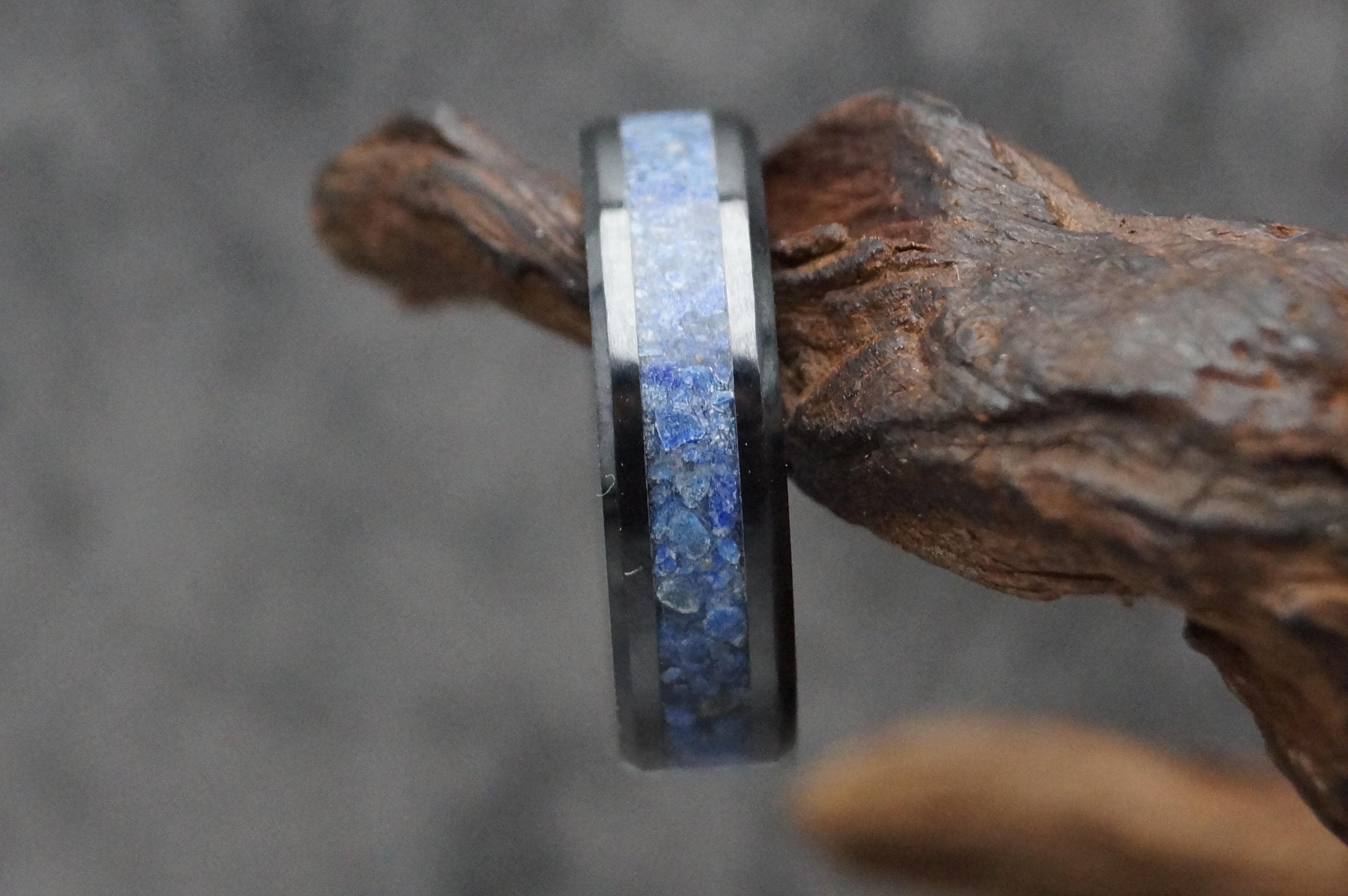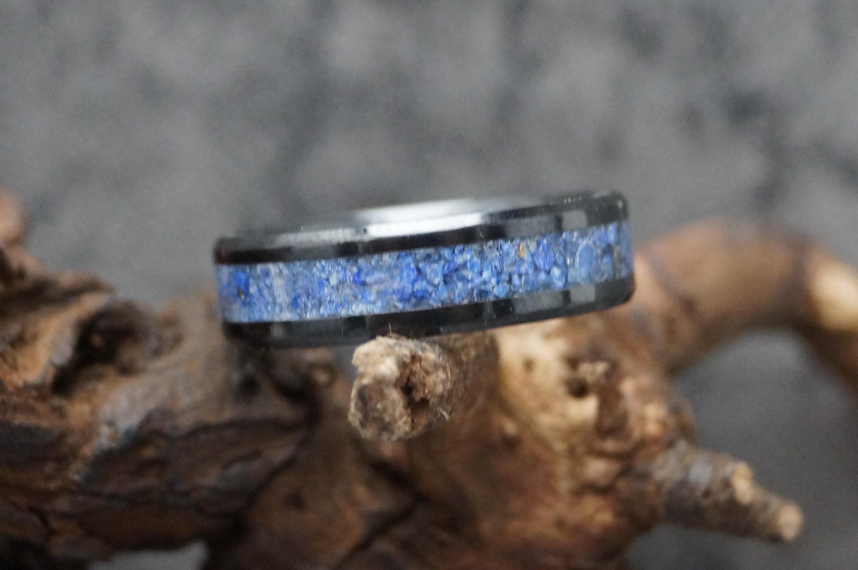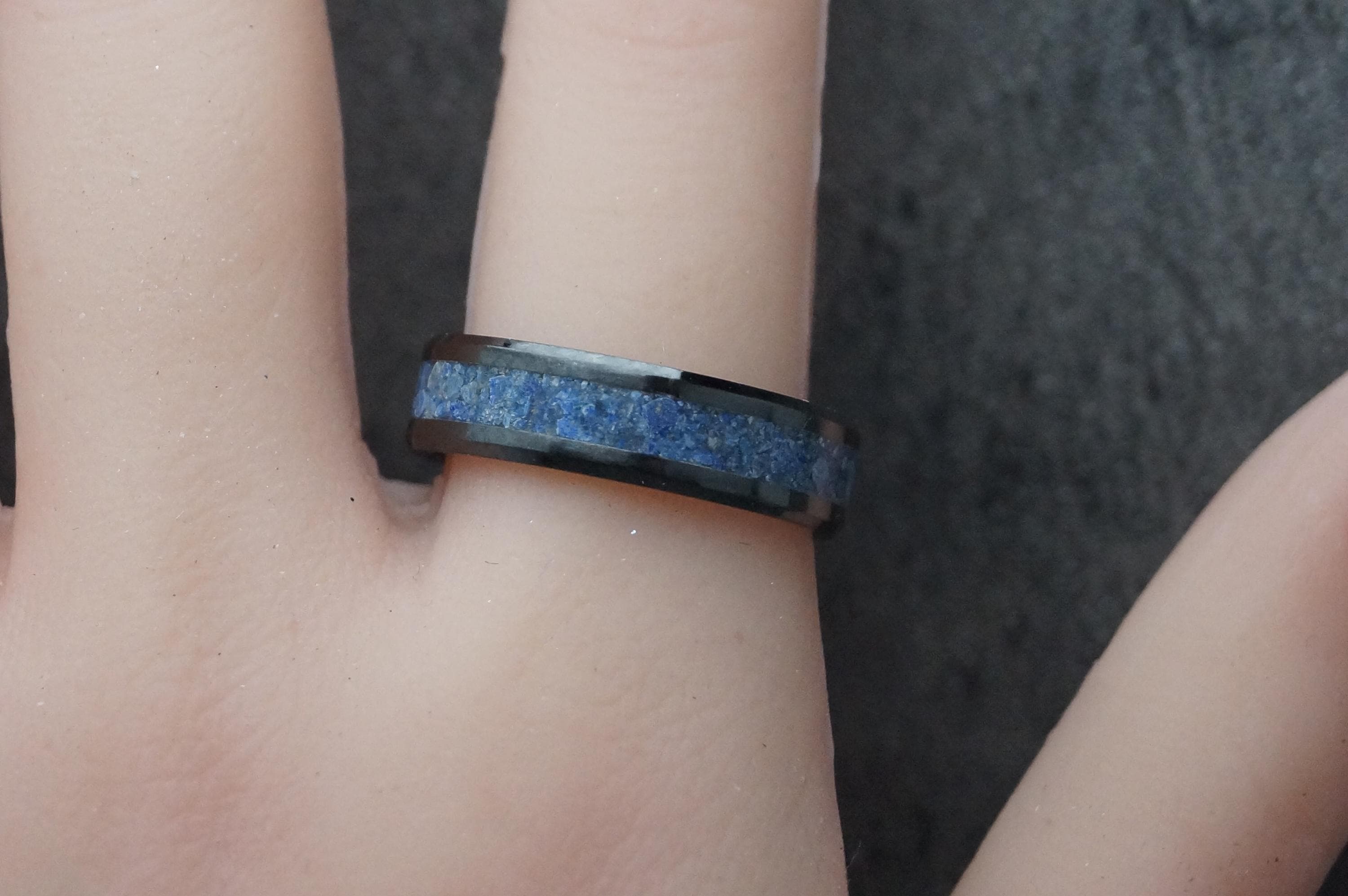 Black Ceramic ring inlaid with Natural Blue Lapis Lazuli Wedding Band available 4 mm, 6 mm or 8 mm wide - Unique ring