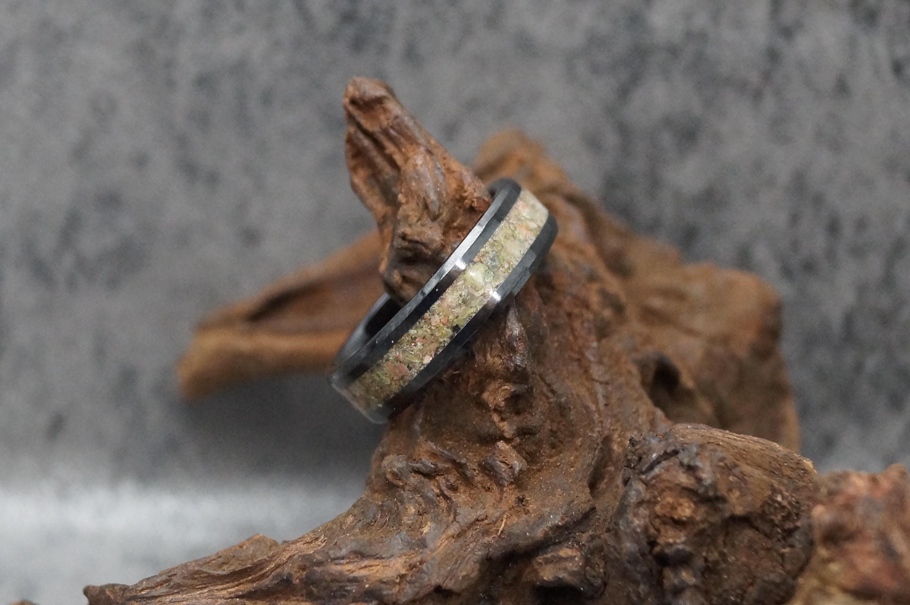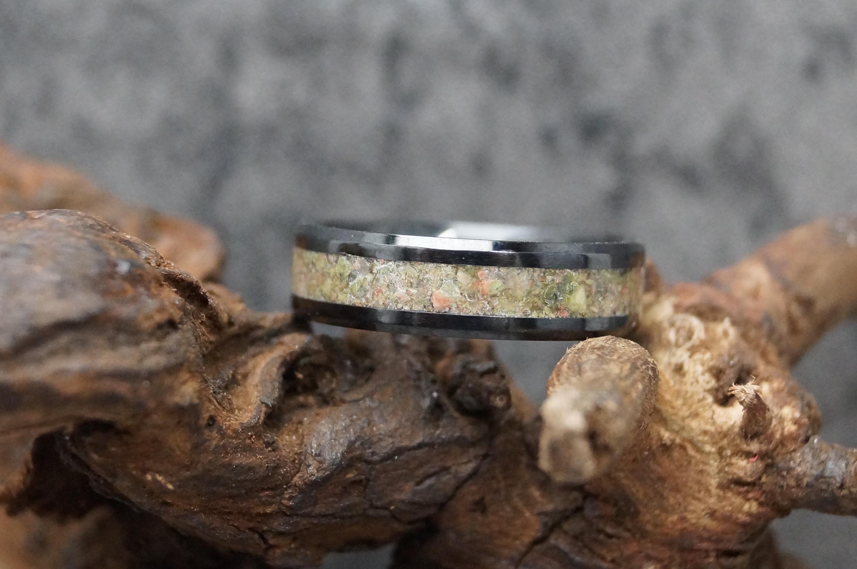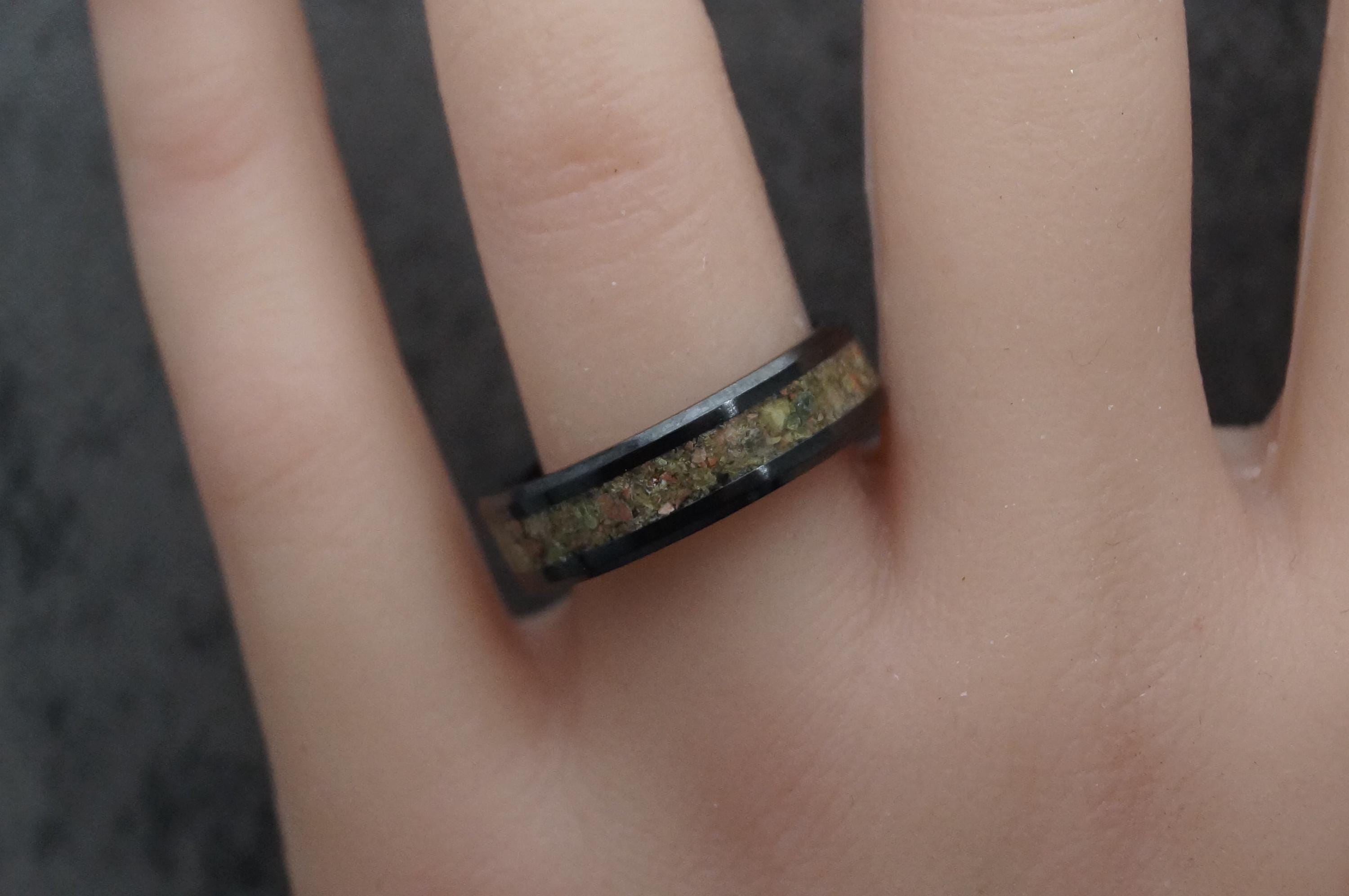 Unakite Black Ceramic Wedding Band - Ring for men and women - Unique Ring