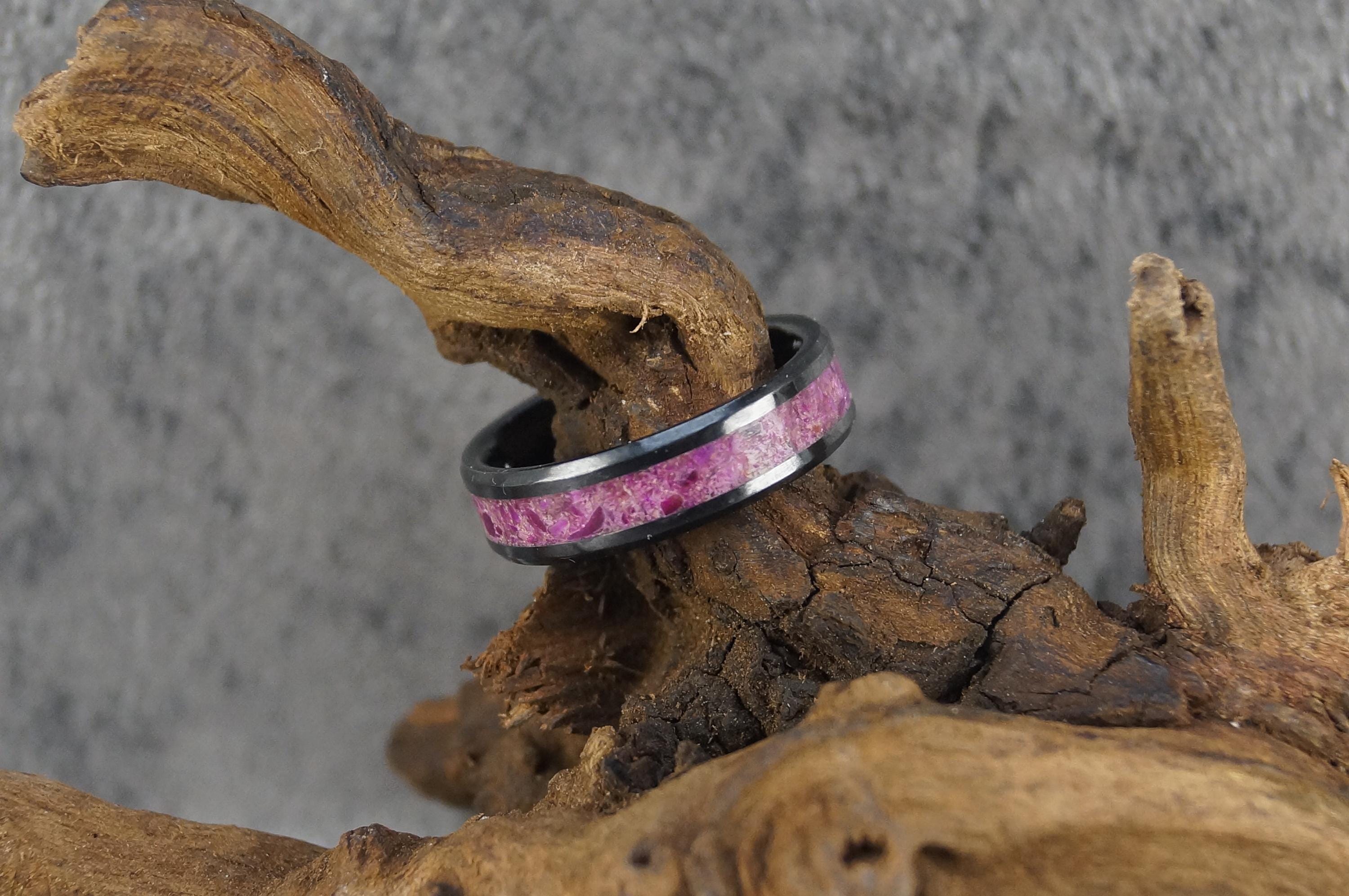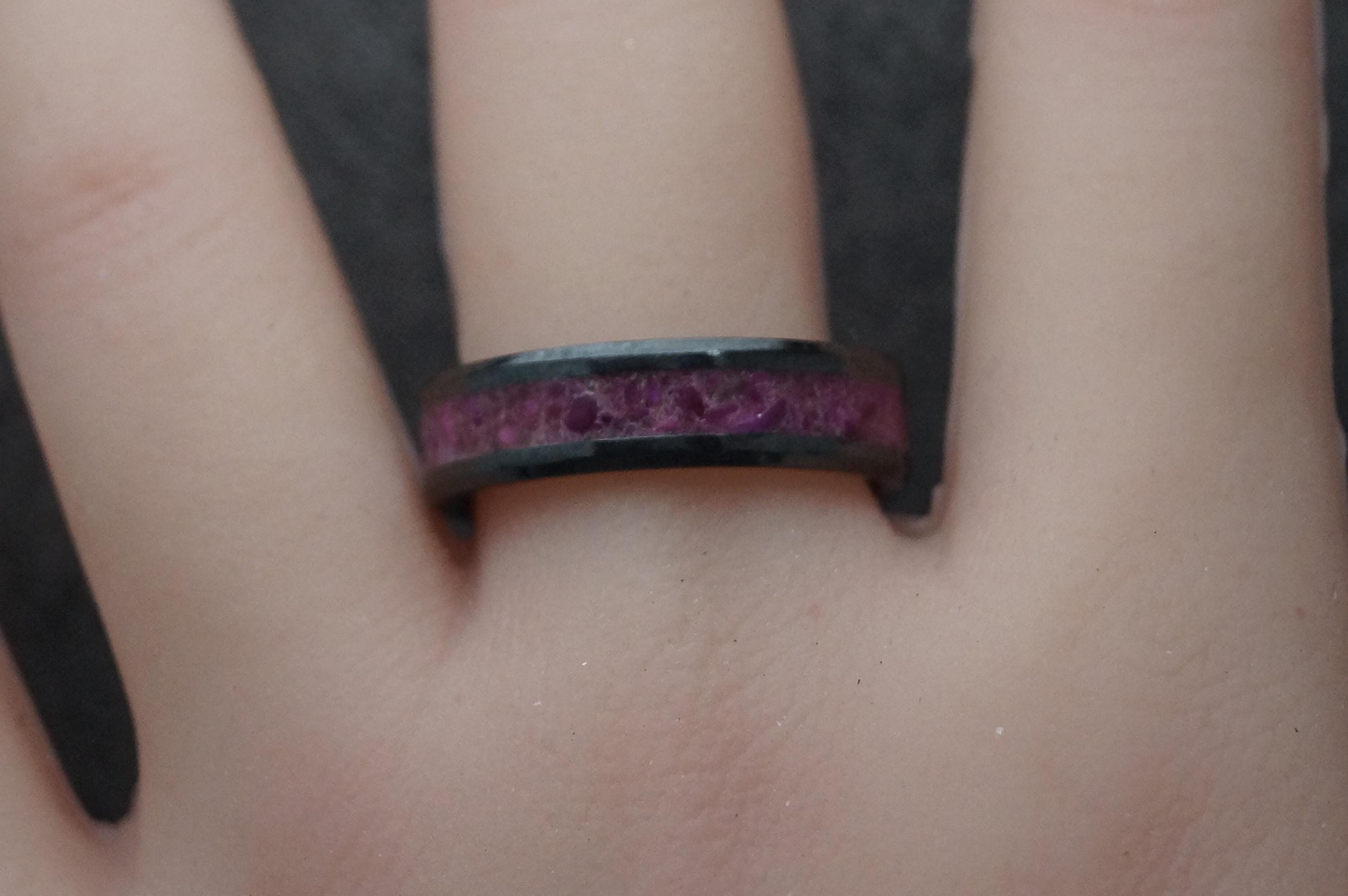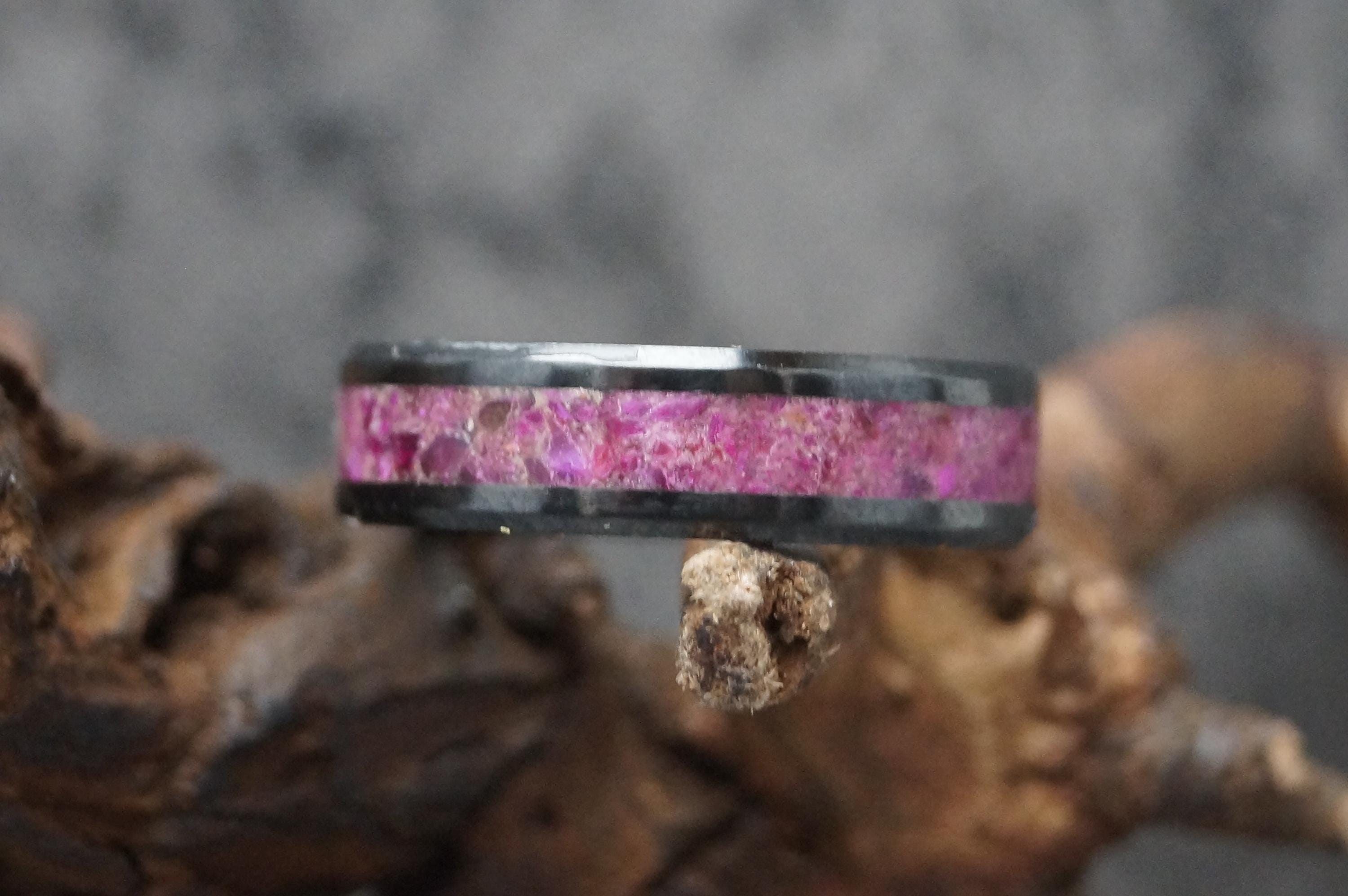 Rose Red Tiger Eye Black Ceramic Wedding Band - Ring for men and women - Unique Ring