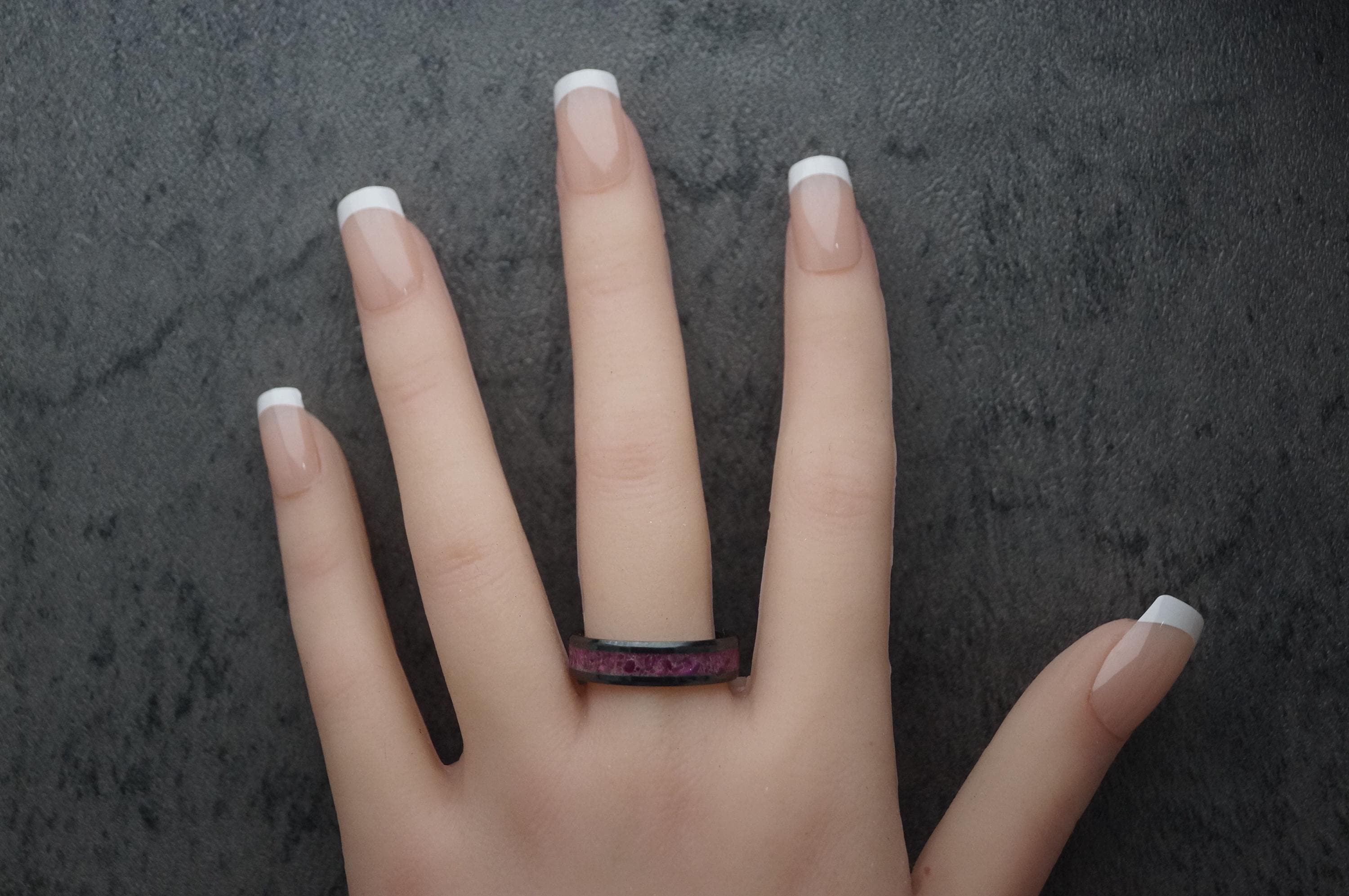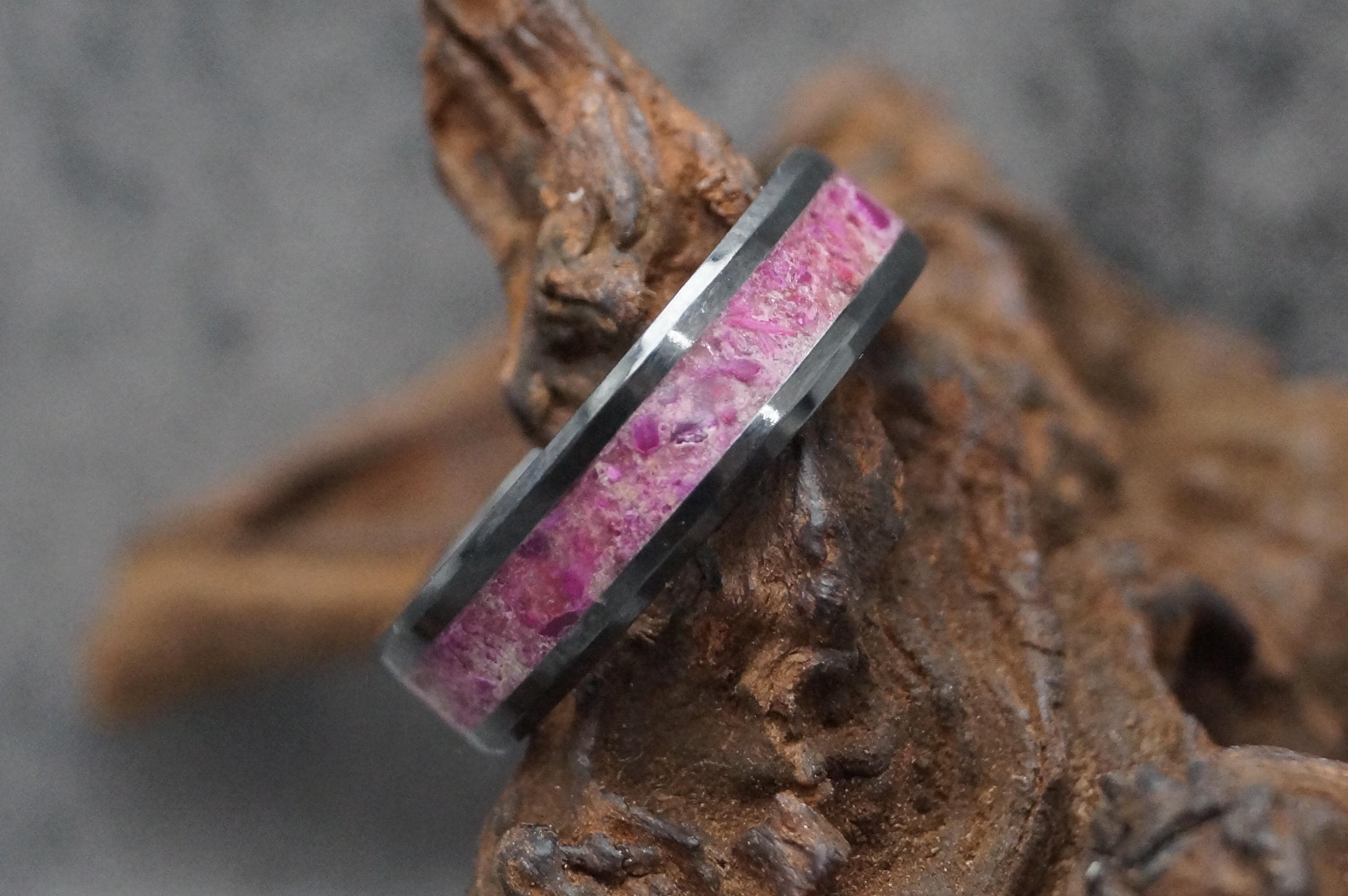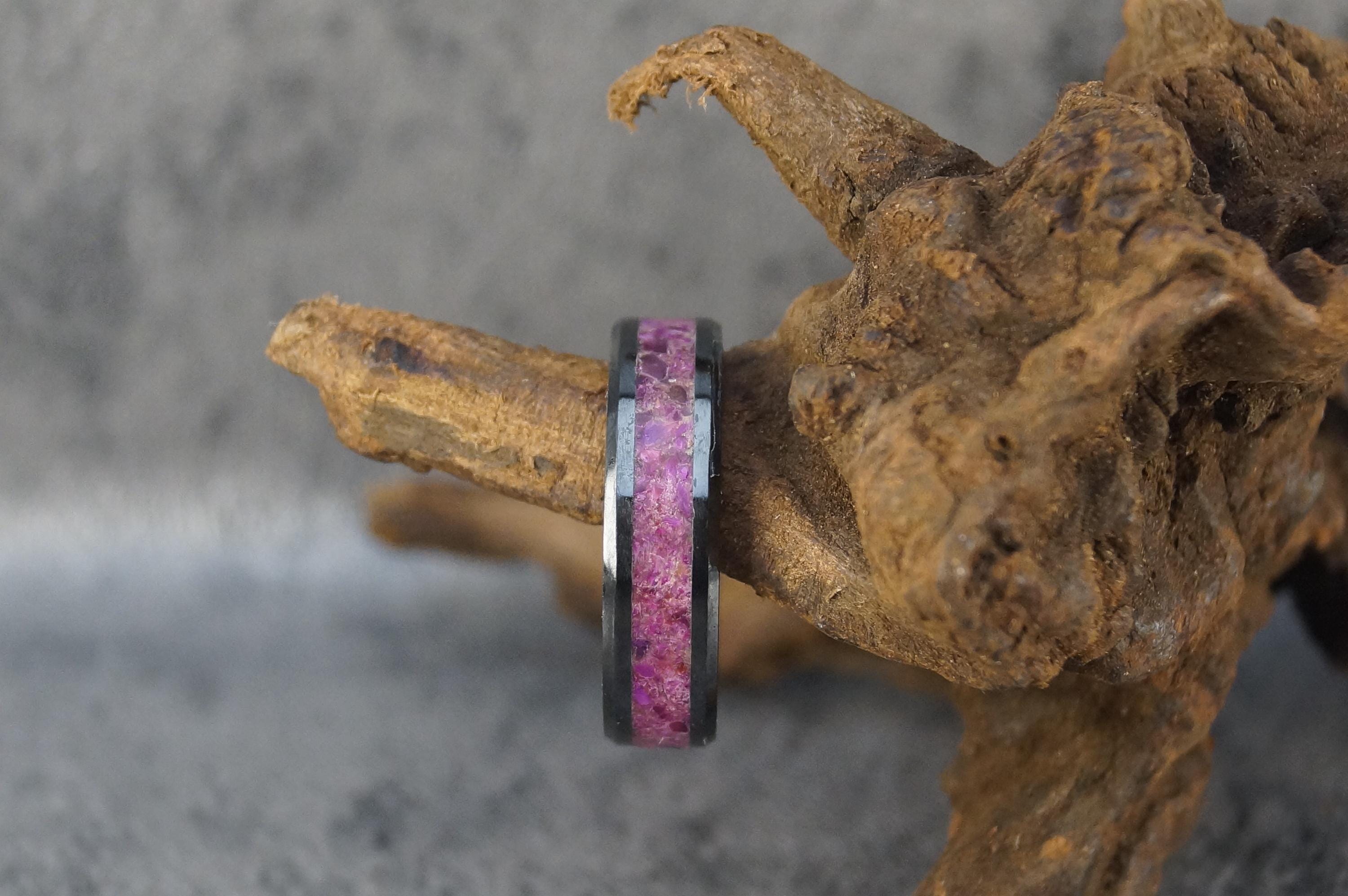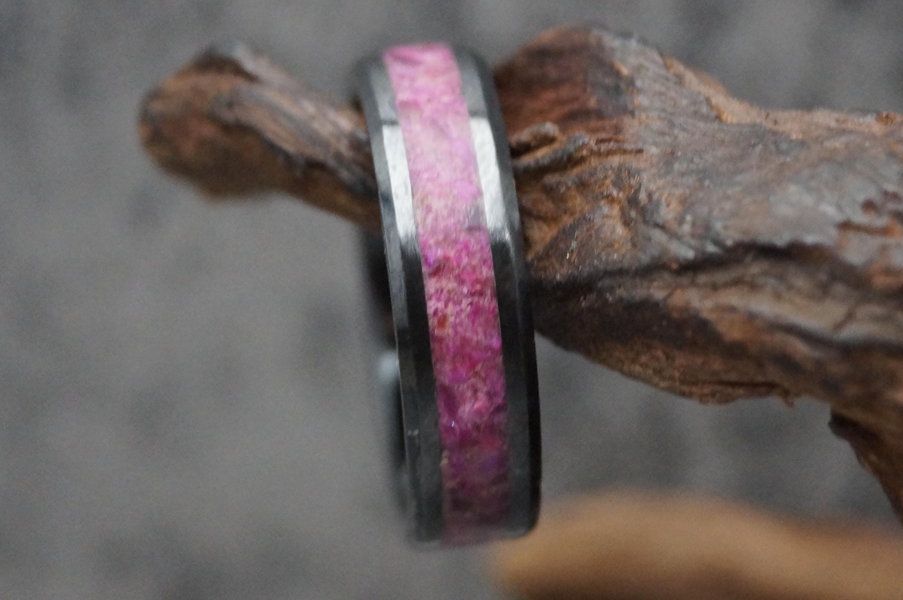 Rose Red Tiger Eye Black Ceramic Wedding Band - Ring for men and women - Unique Ring