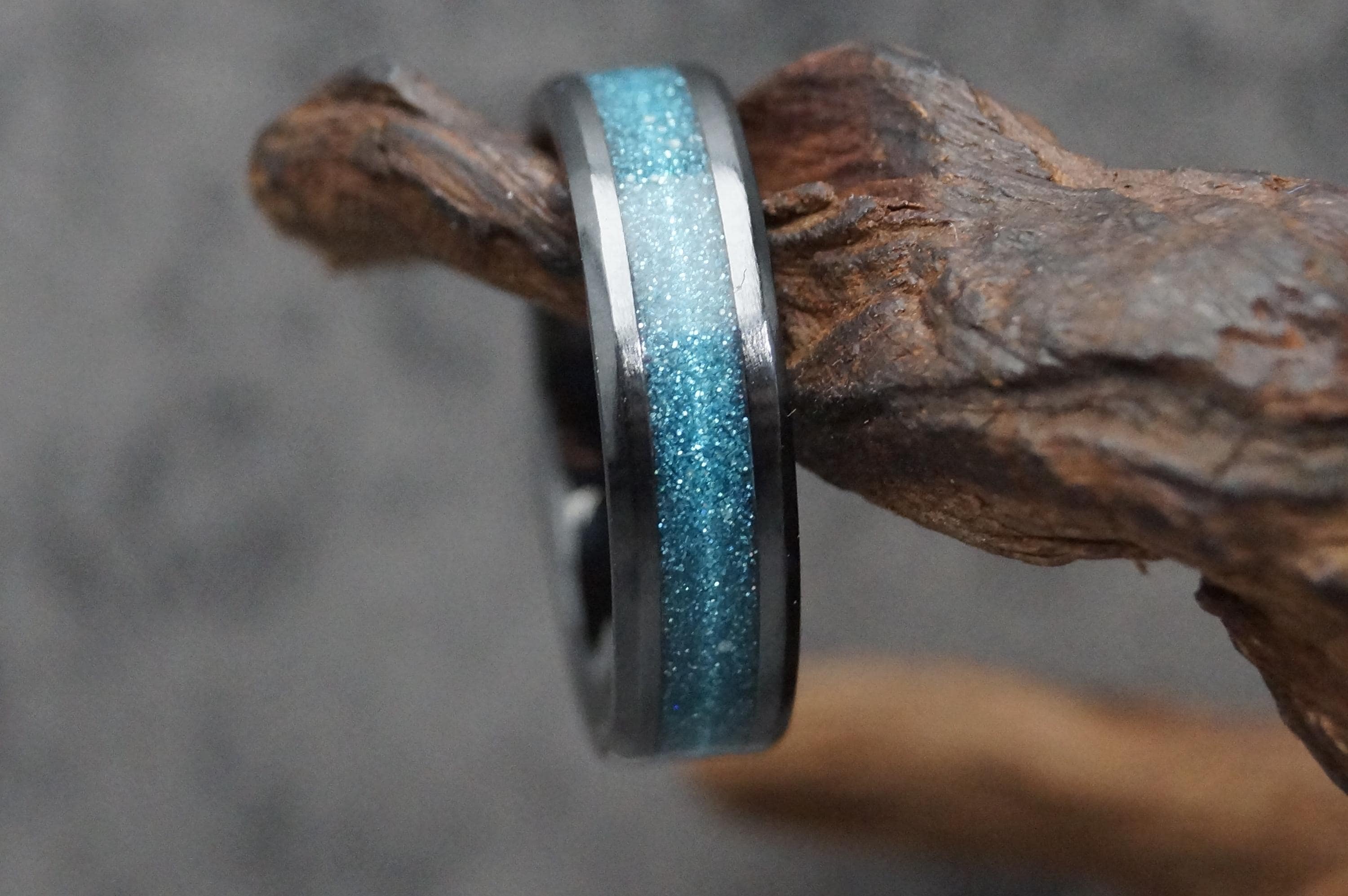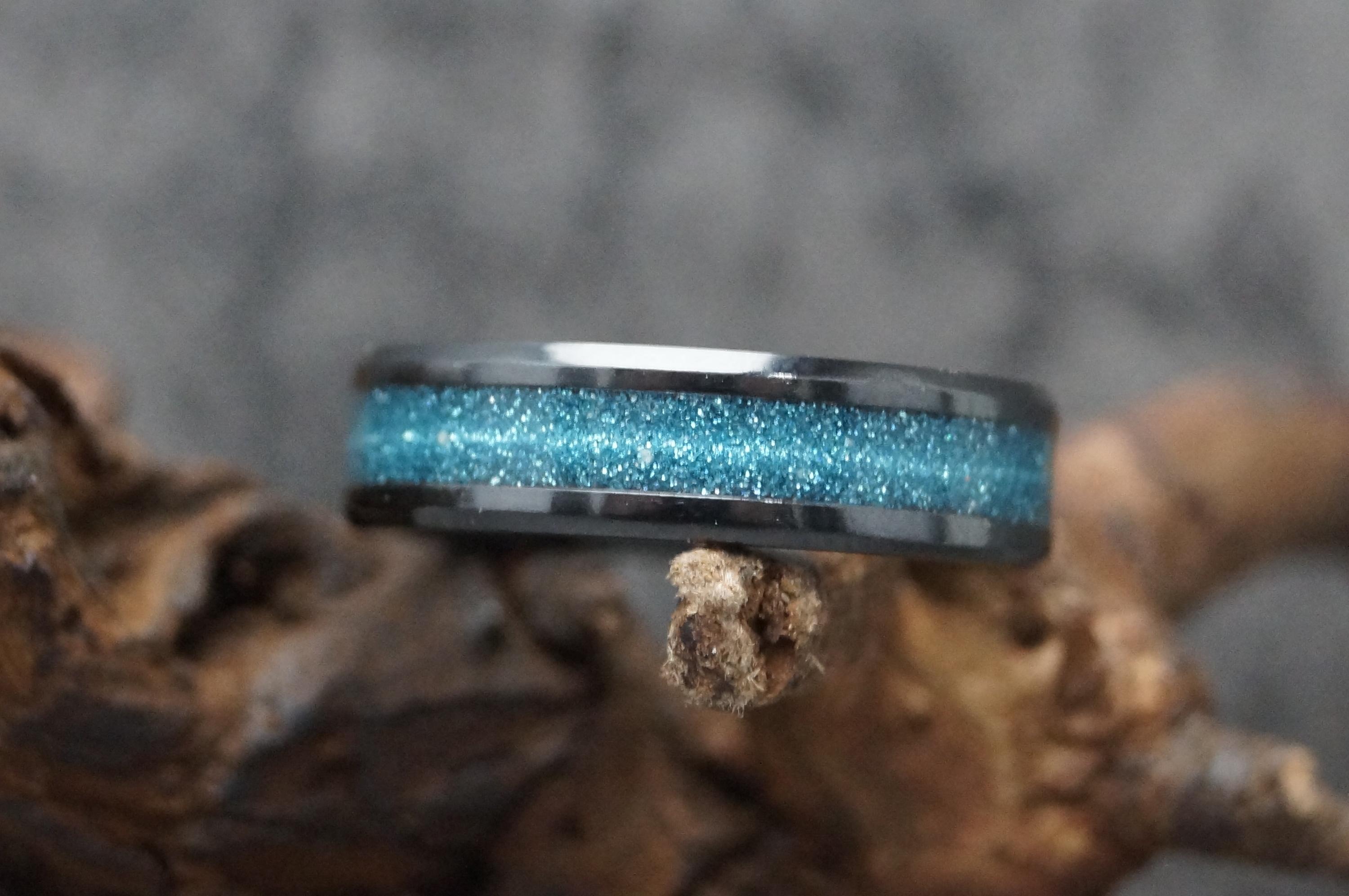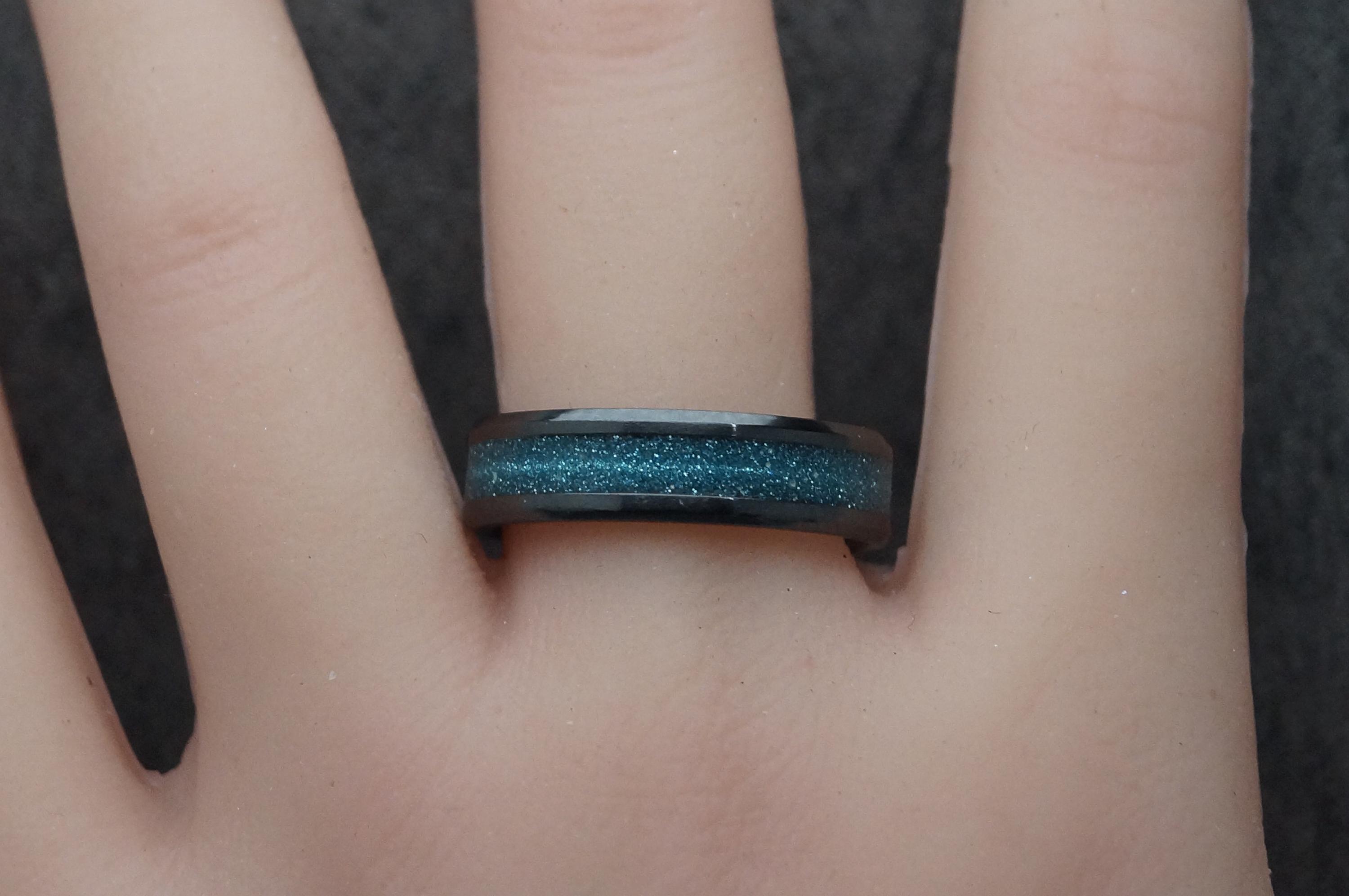 Black Ceramic ring inlaid with 'Black Space dust' eco-glitter and your pet ashes or pet hair.