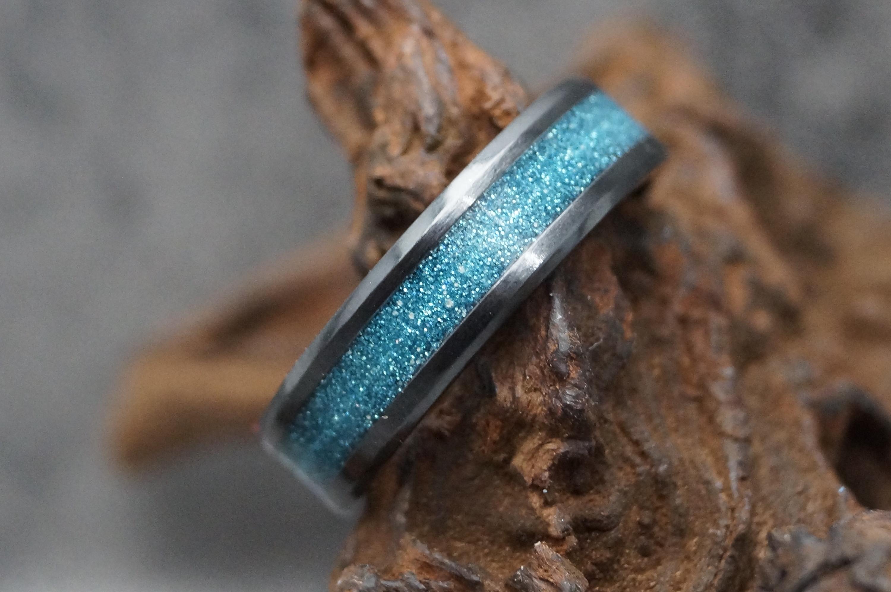 Pet Memorial Ring 'Black Space dust' with your pet ashes or pet hair Inlaid in a Black Ceramic Band 4 mm, 6 mm or 8 mm wide ring - Pet Memorial and Keepsake Jewellery