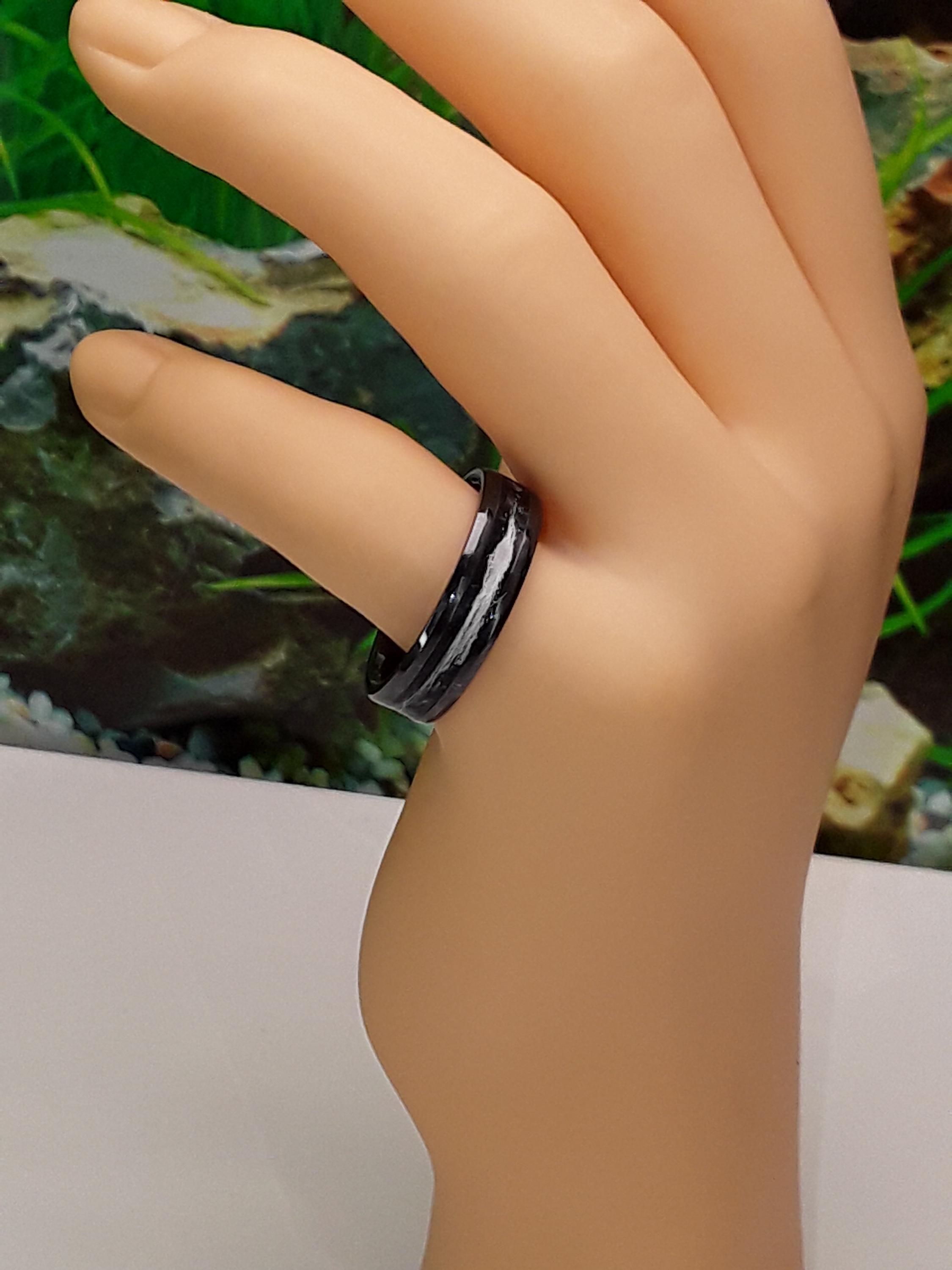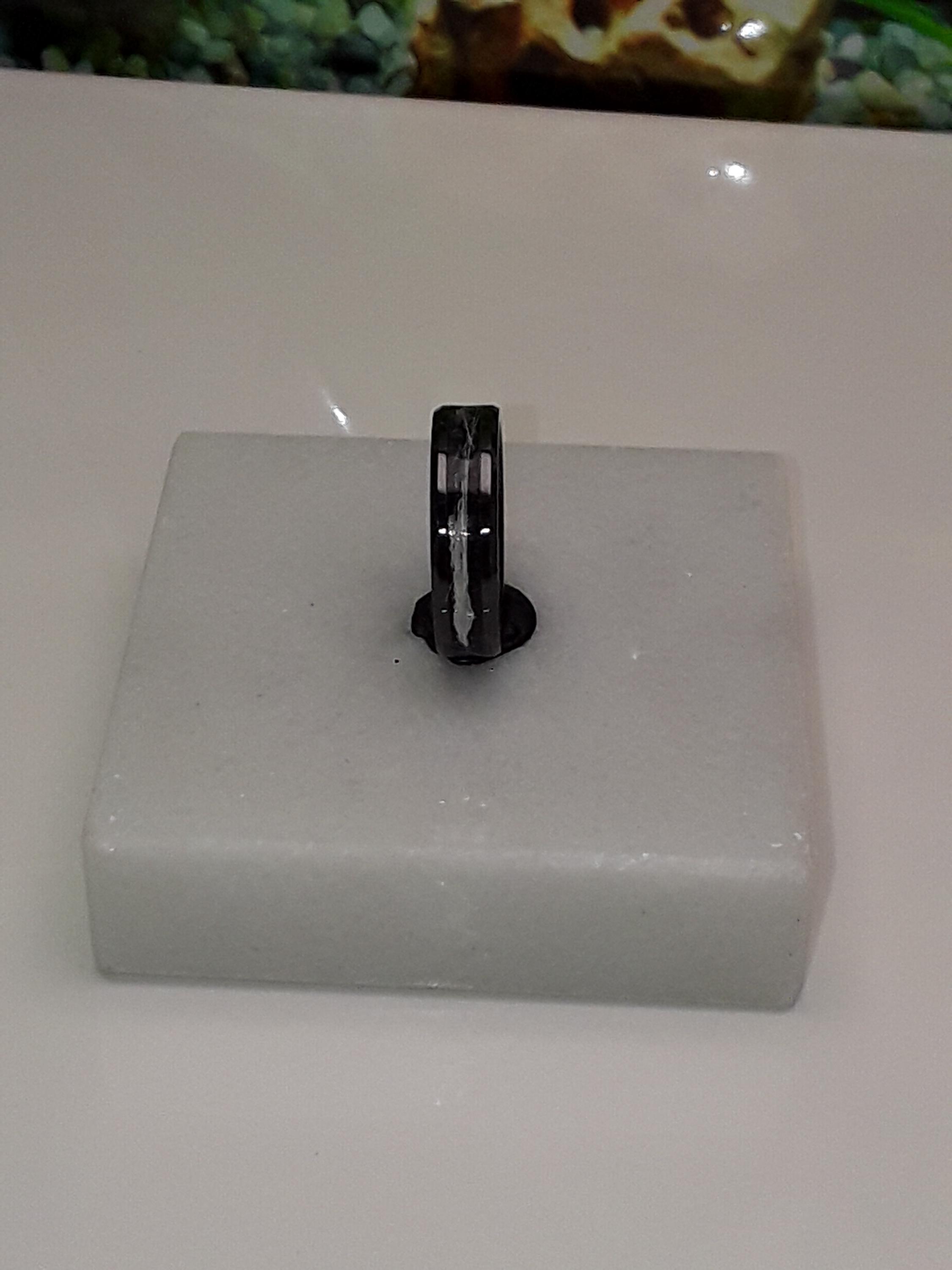 Black Ceramic ring inlaid with 'Black Space dust' eco-glitter and your pet hair.