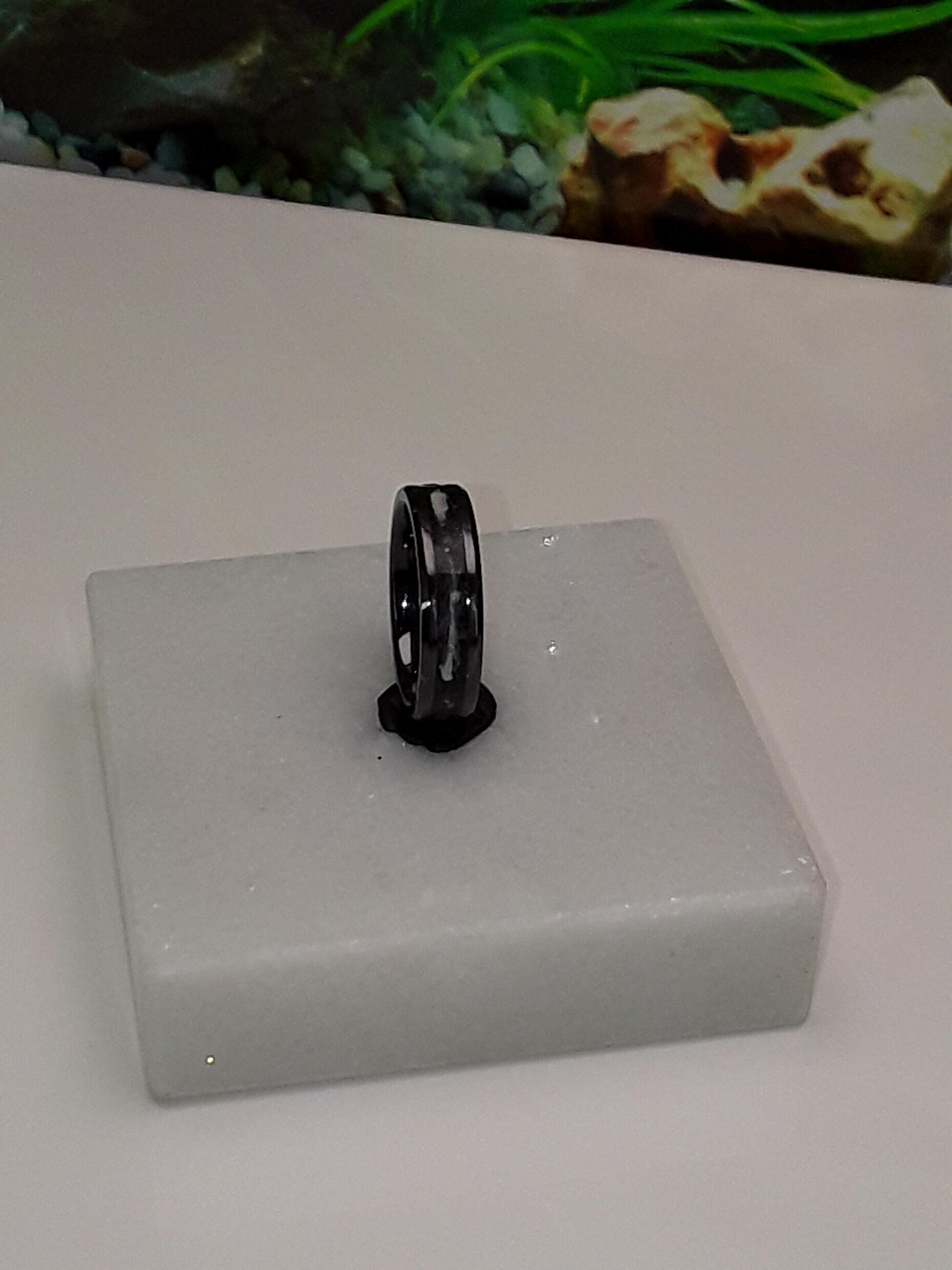 Pet Memorial Ring 'Black Space dust' with your pet hair Inlaid in a Black Ceramic Band 4 mm, 6 mm or 8 mm wide ring - Pet Memorial and Keepsake Jewellery