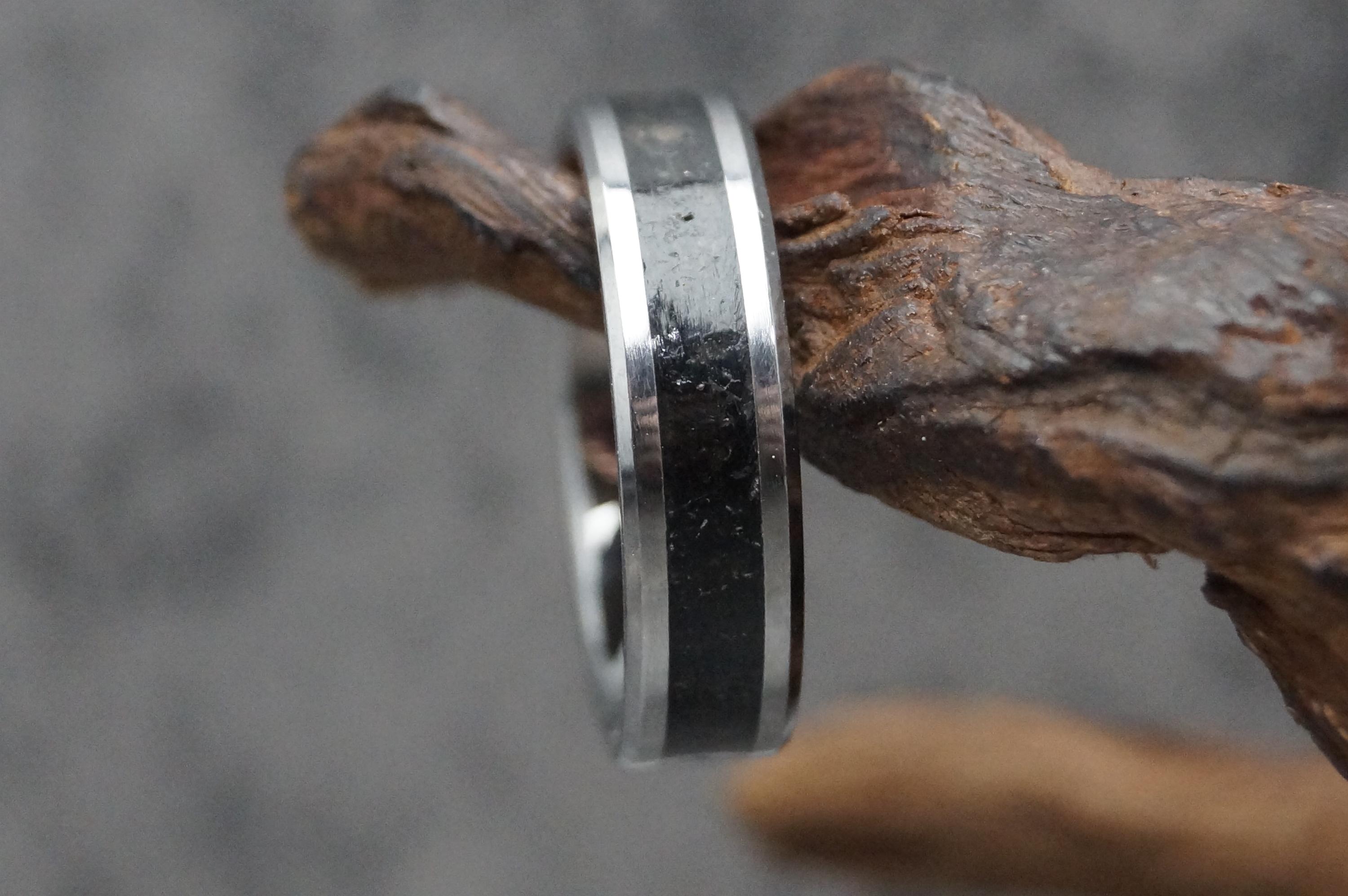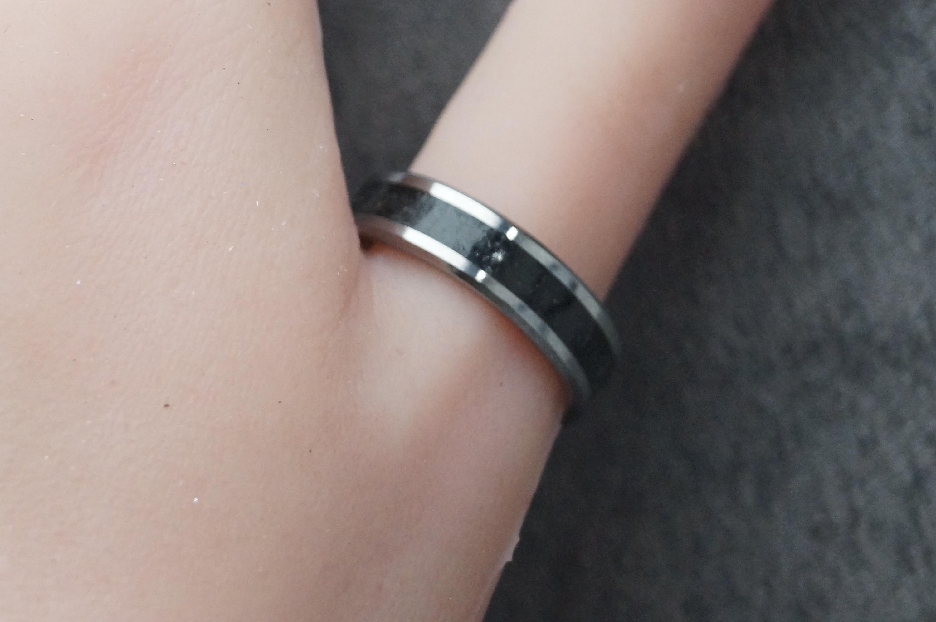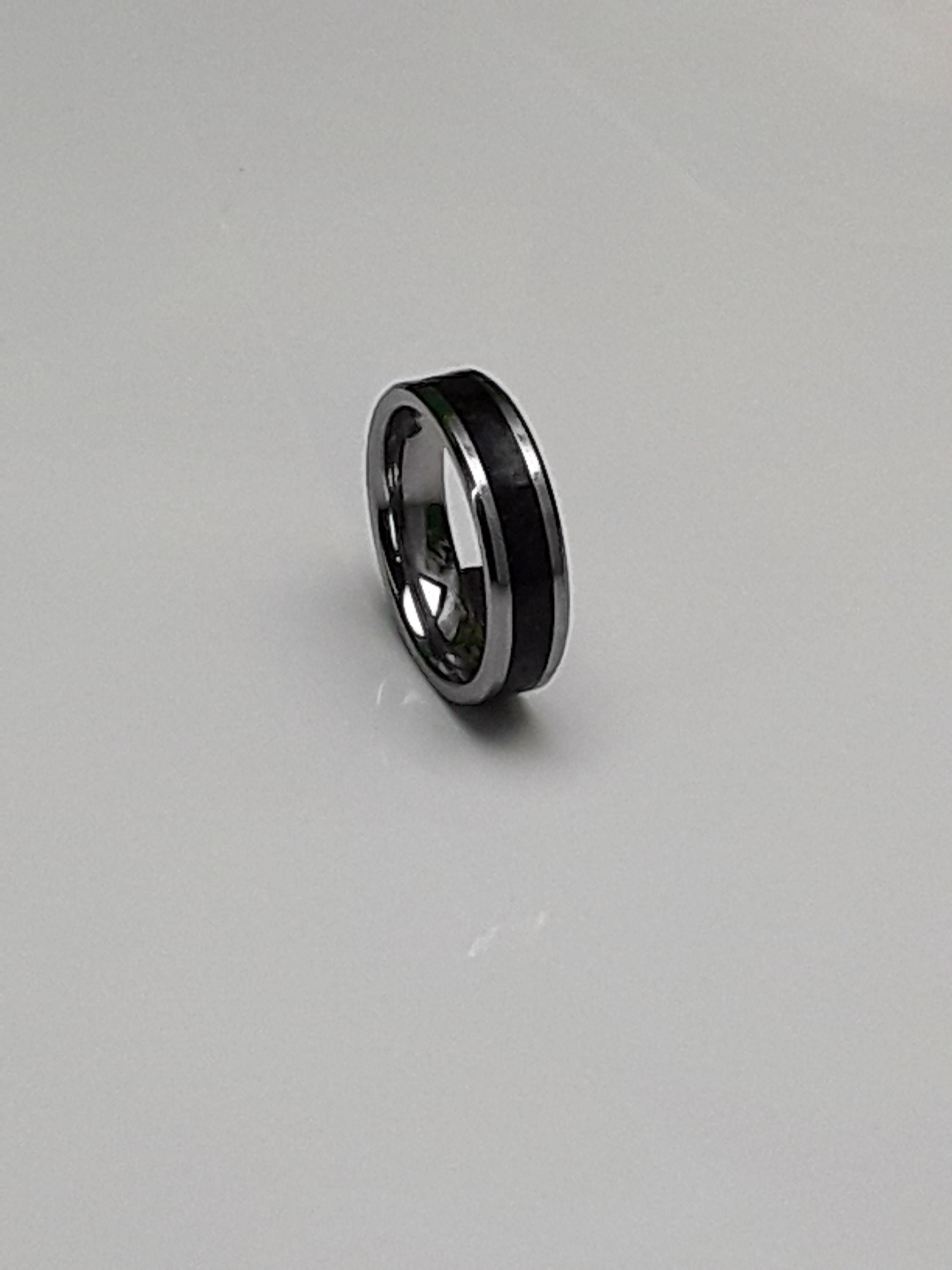 This genuine Tungsten Carbide ring is inlaid with genuine Fishing Line - Teal