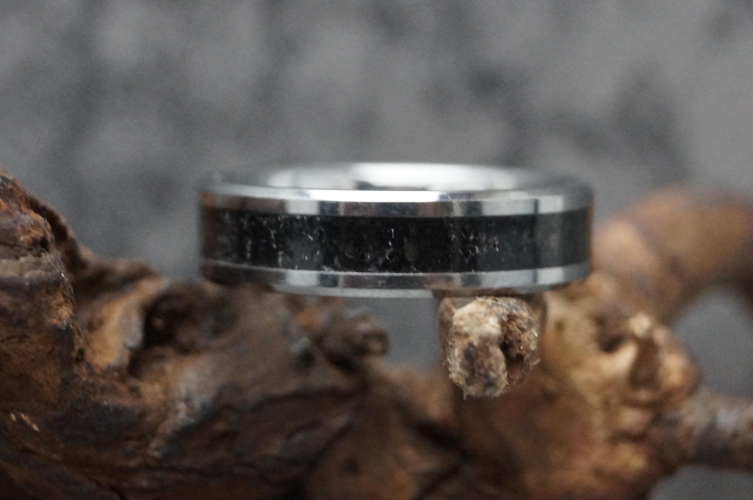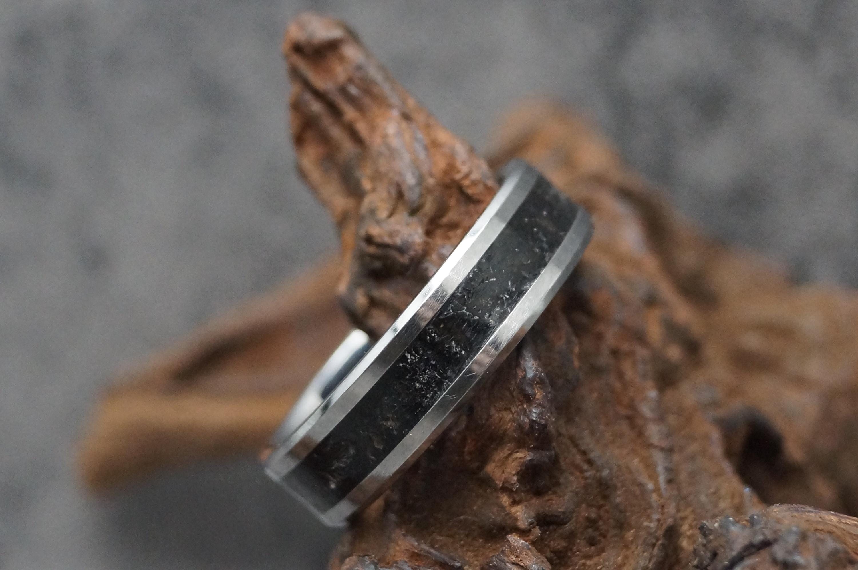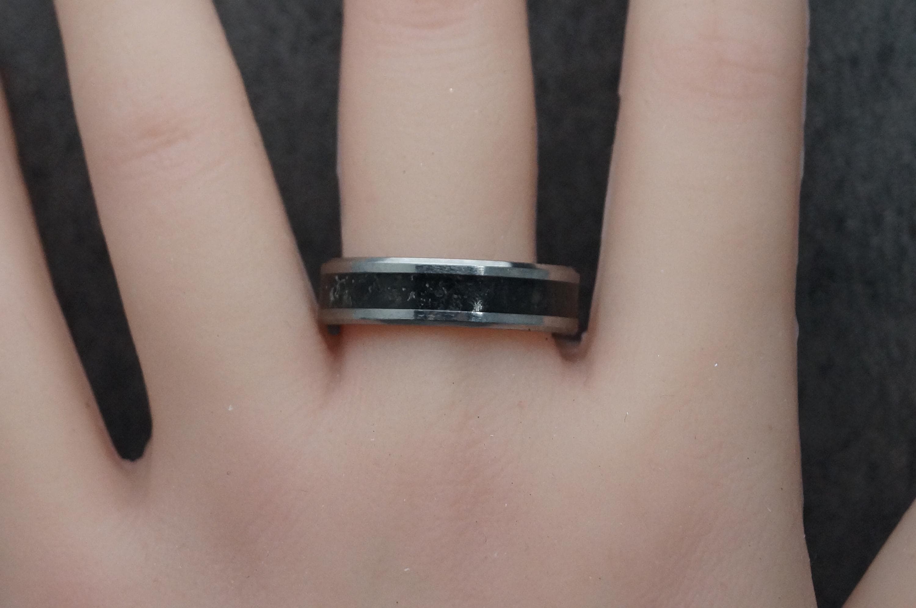 This genuine Tungsten Carbide ring is inlaid with genuine Fishing Line - Teal
