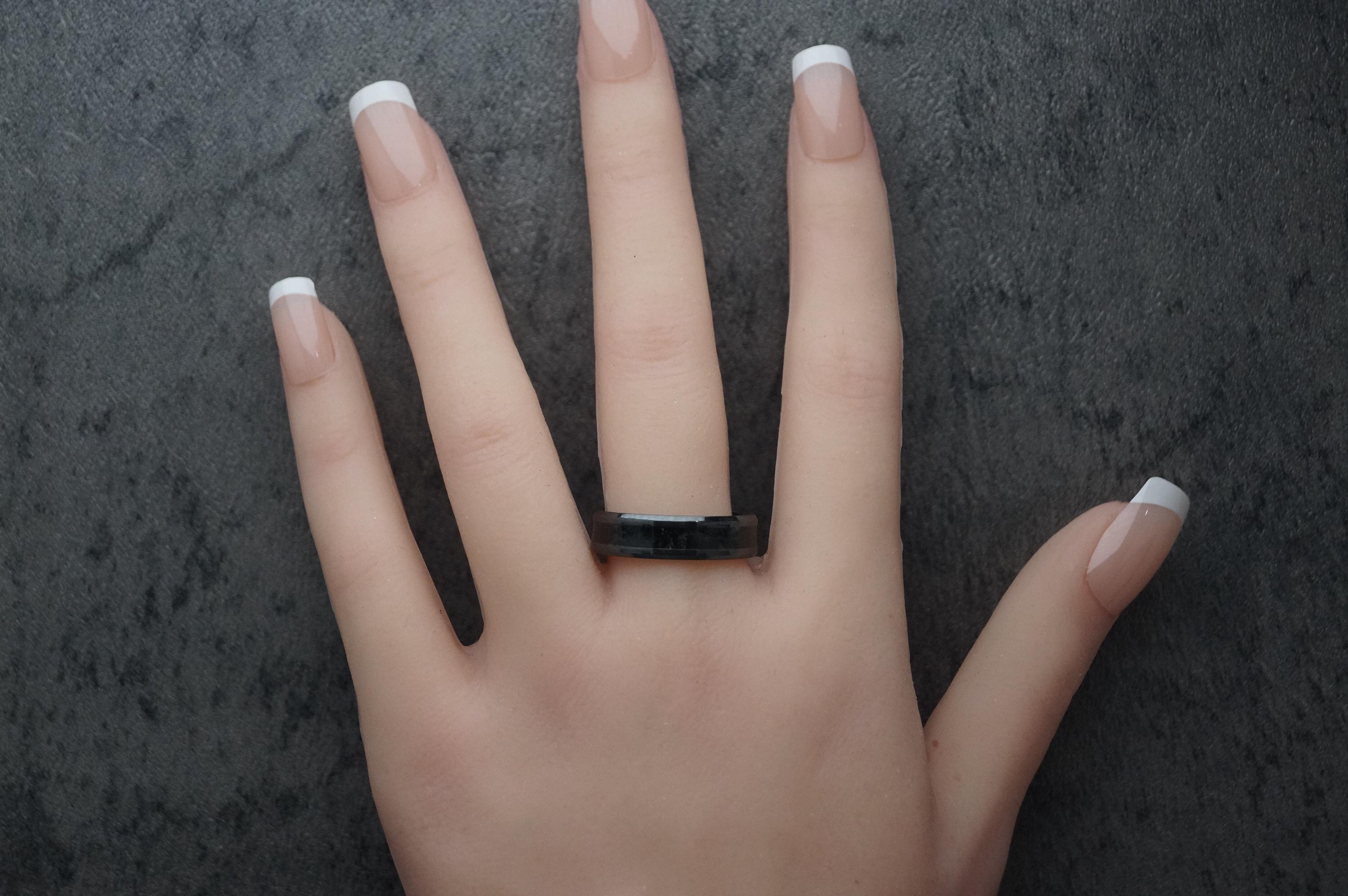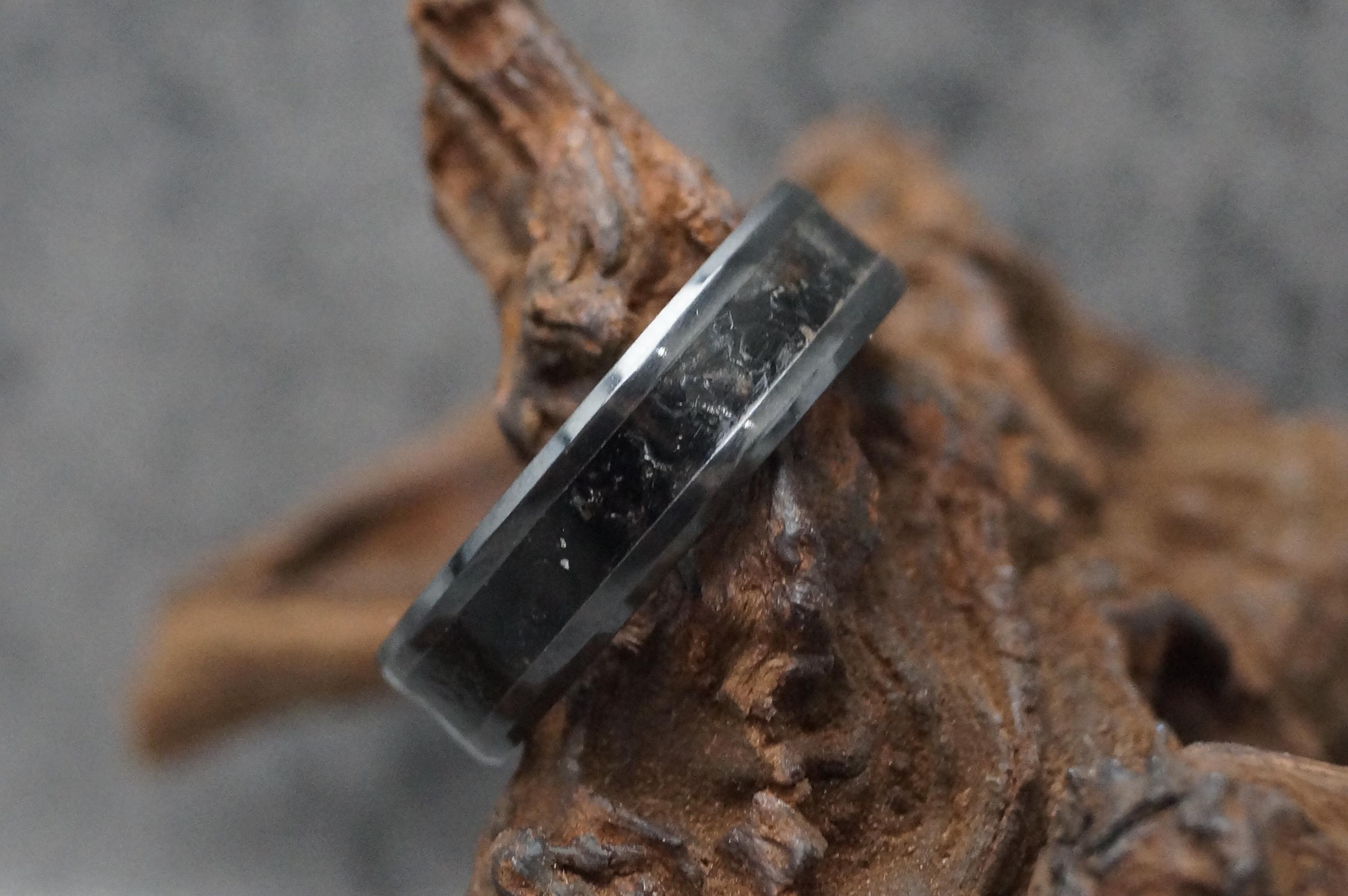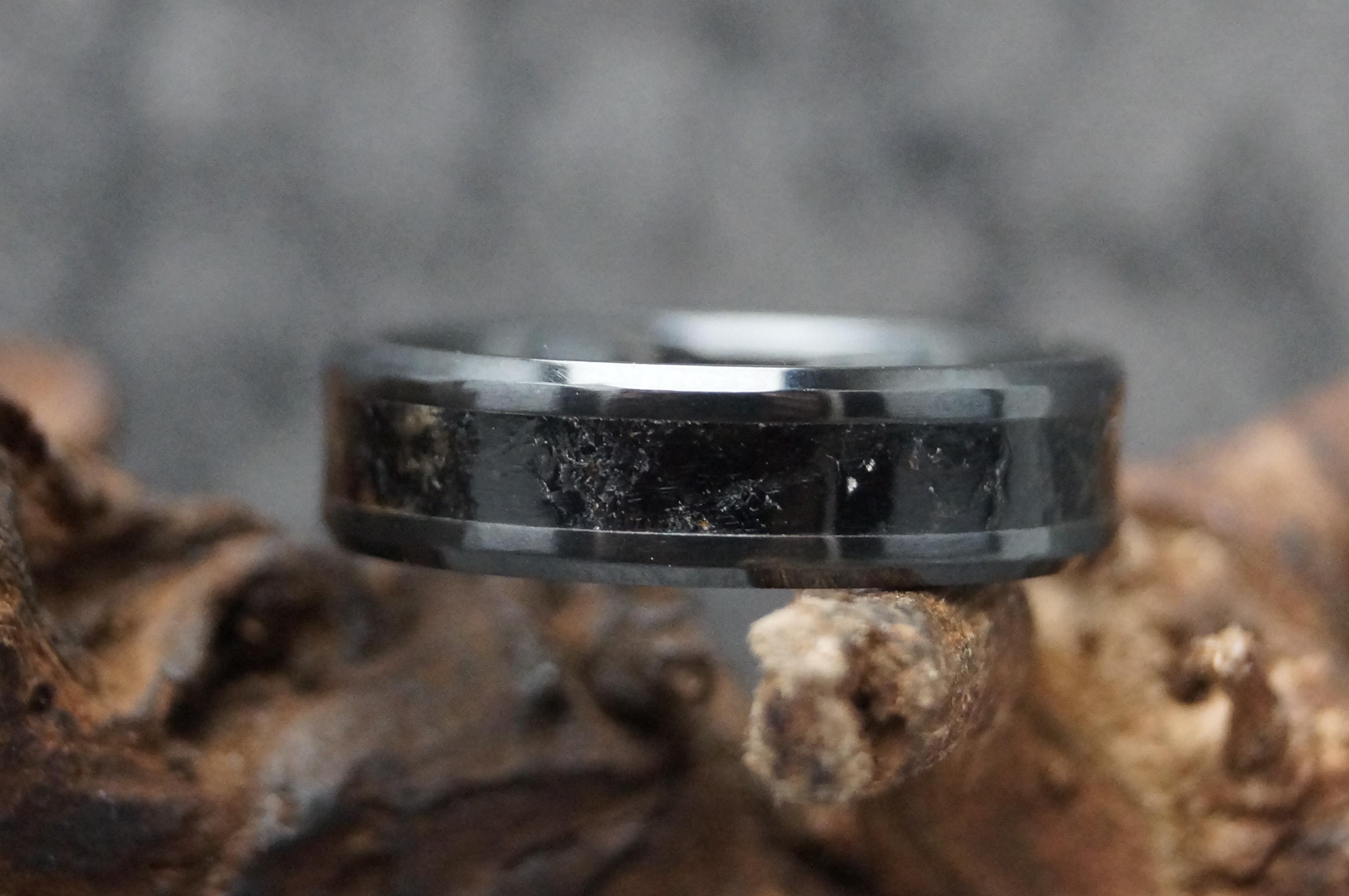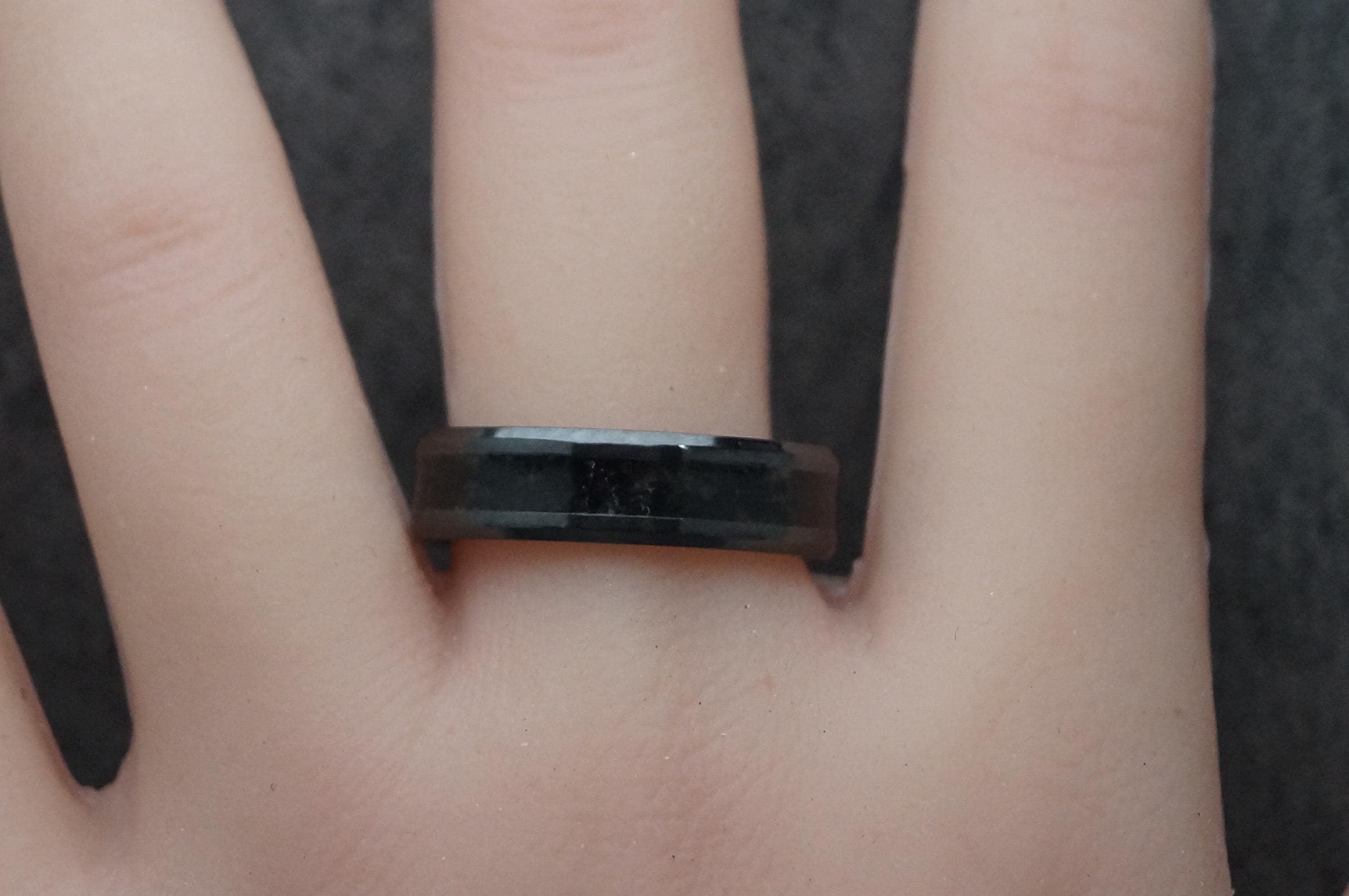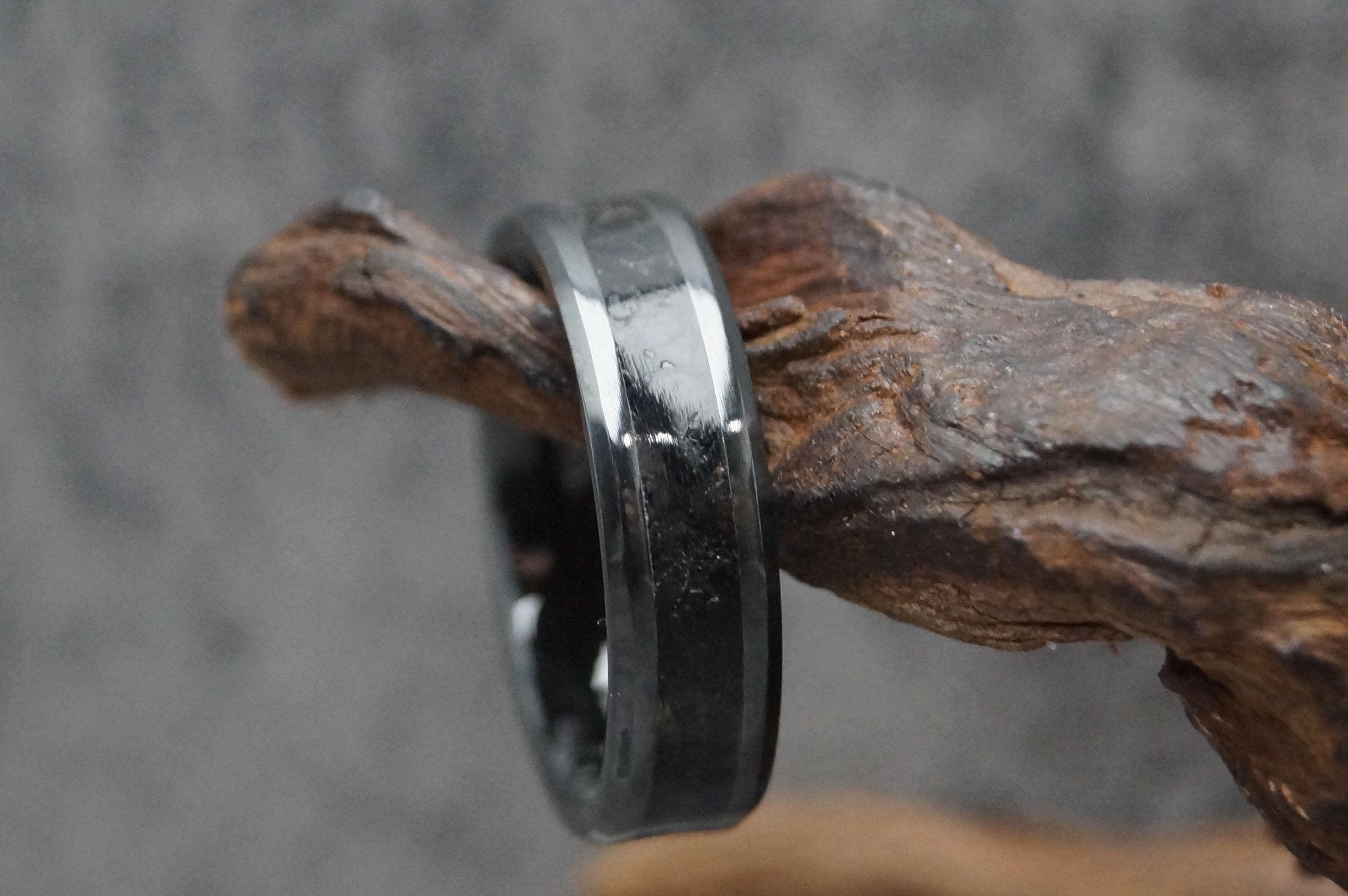 Black Ceramic ring inlaid with Natural Whitby Jet Stone, 4 mm, 6 mm or 8 mm Wide Rings